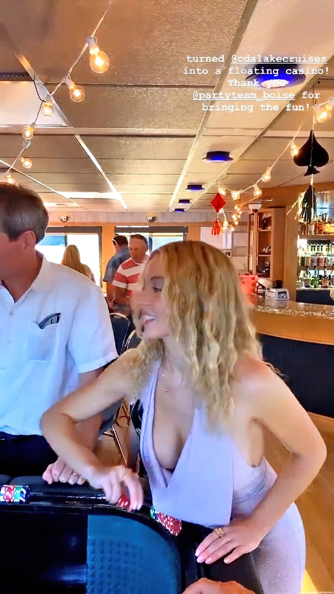 Attrice Sydney Sweeney mostra il suo bellissimo seno indossando una sexy tuta intera a un party di compleanno su una crociera – Instagram, 21/06/2021.