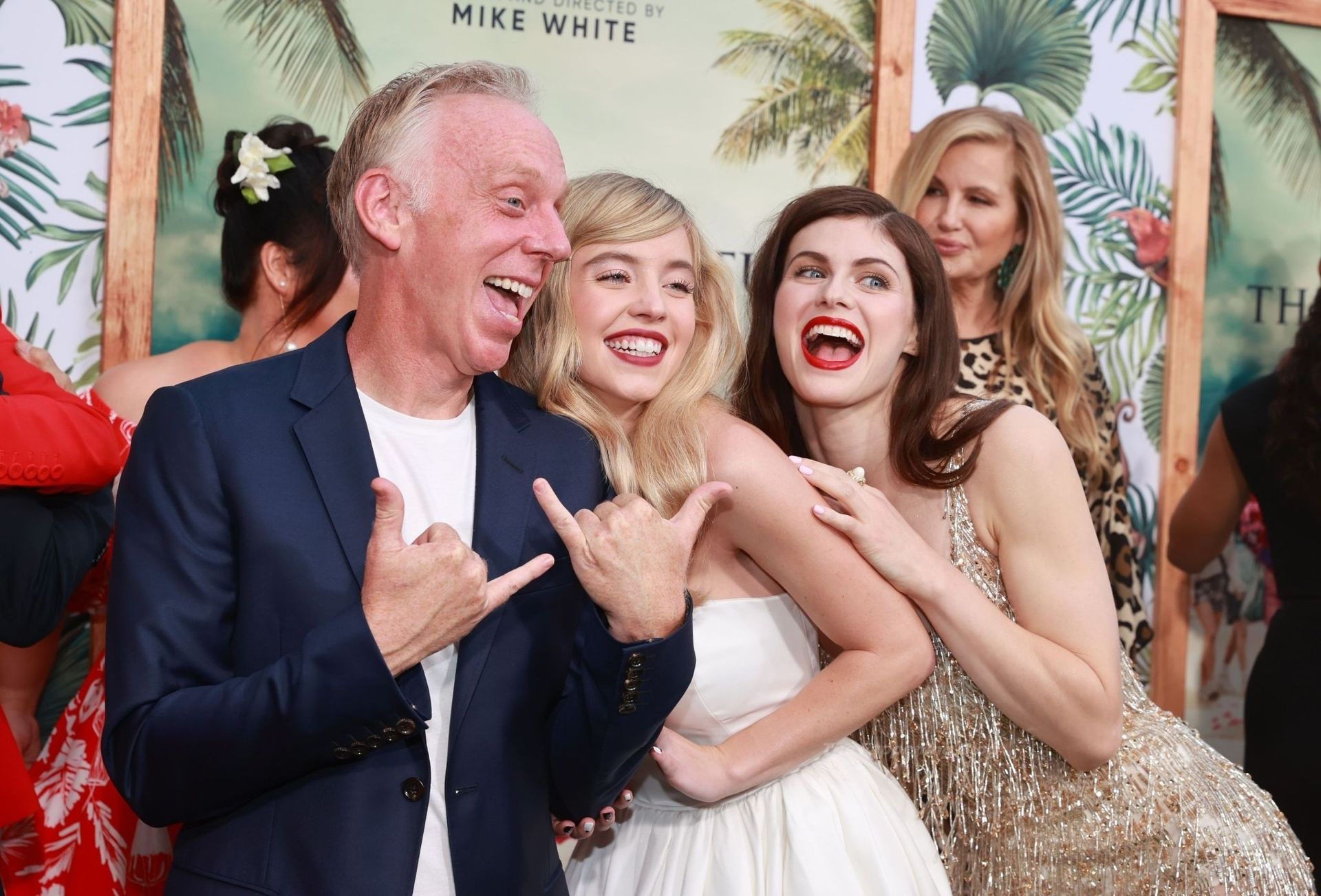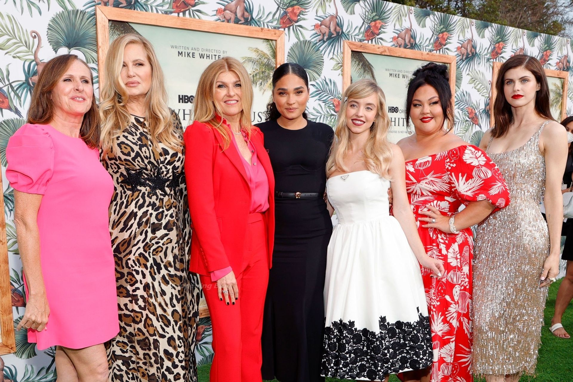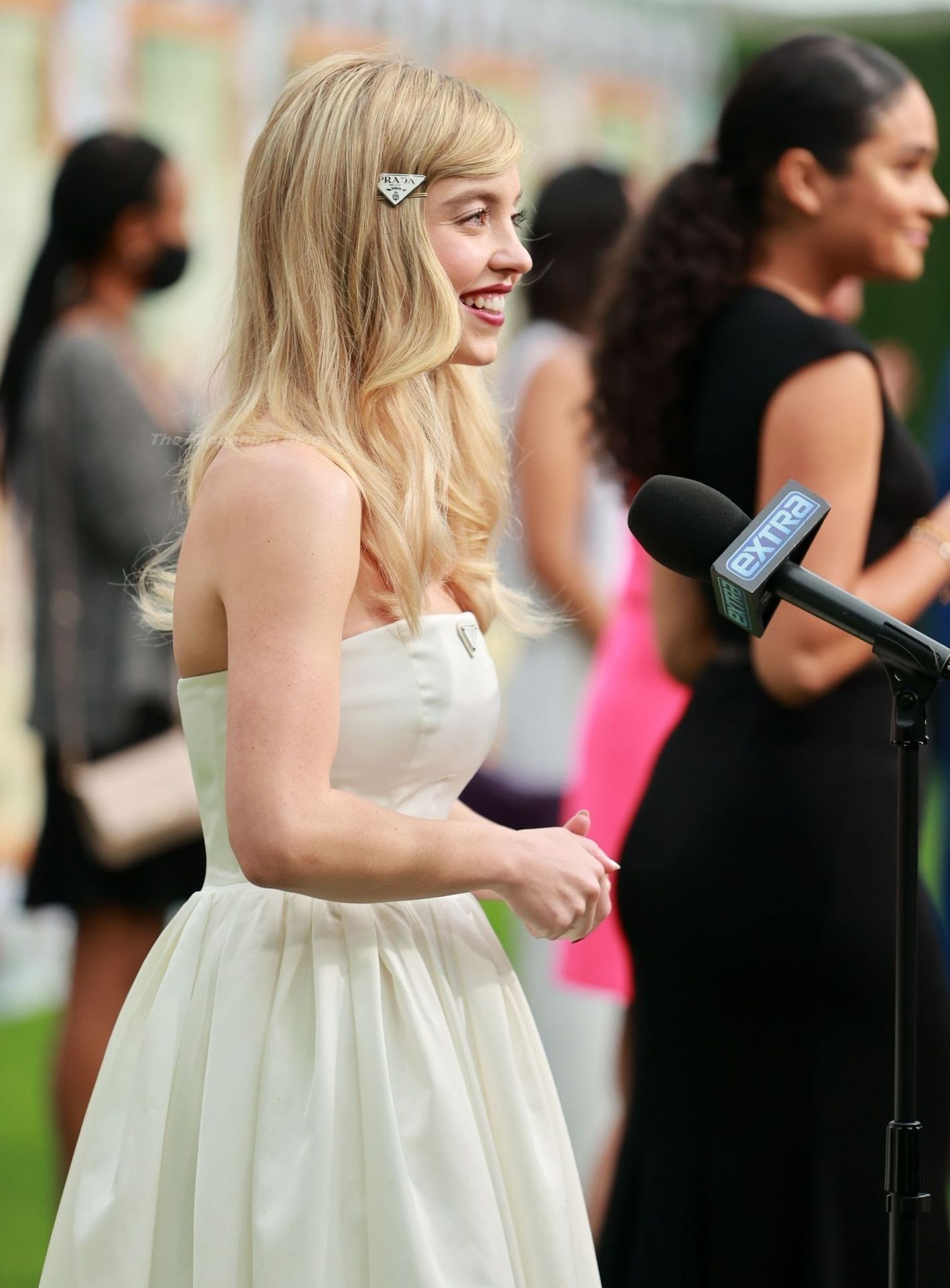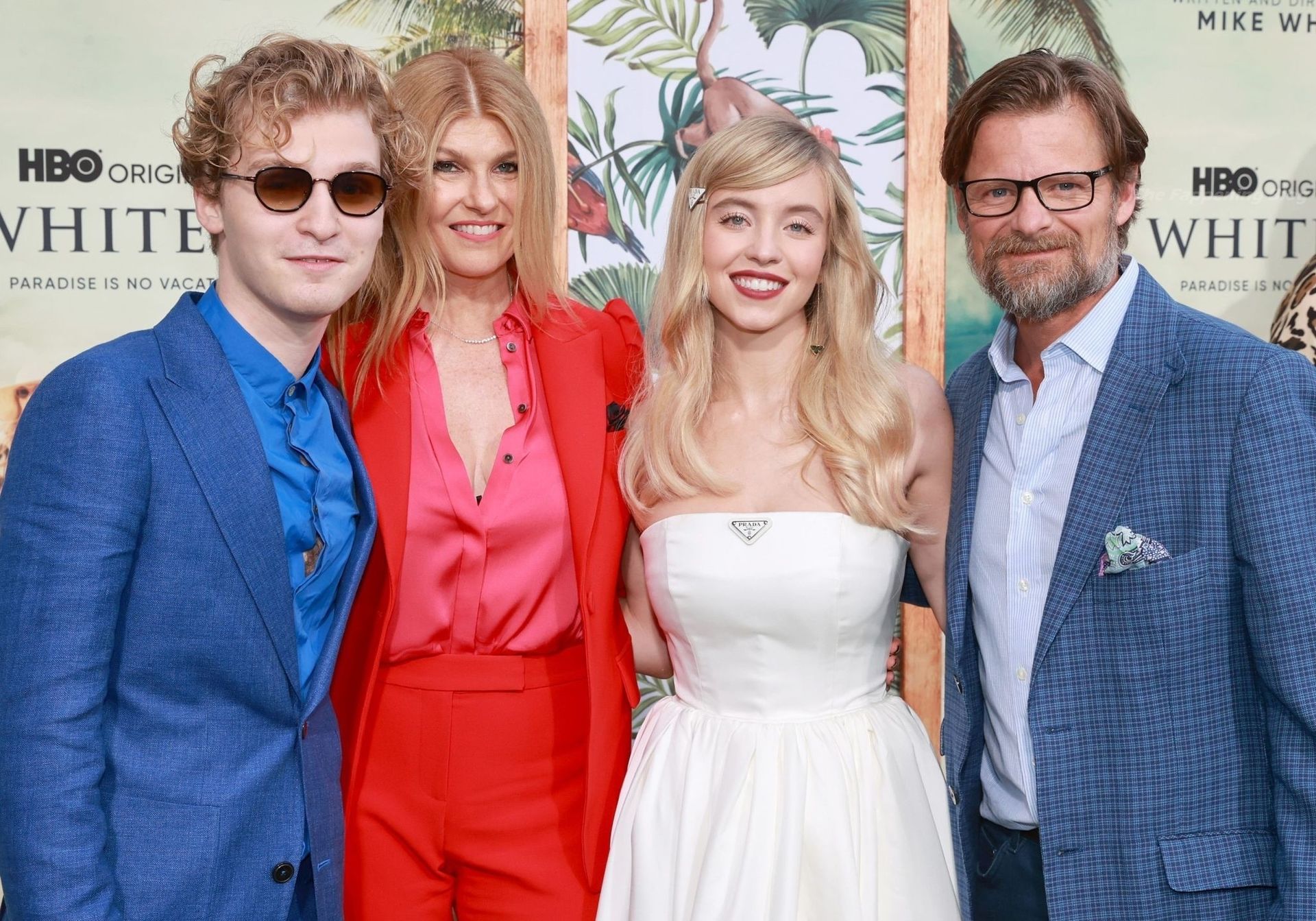 L’attrice Sydney Sweeney appare sensazionale mentre sfoggia un décolleté in un abito bianco alla prima di The White Lotus a Pacific Palisades, 07/07/2021.