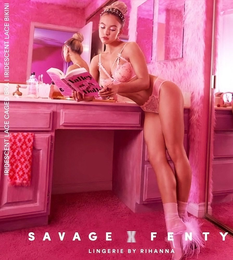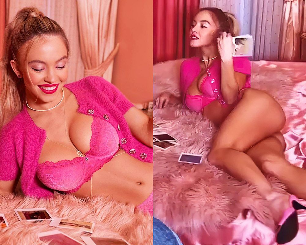 Actress Sydney Sweeney once again models Rihanna’s SavageXFenty lingerie in the photo gallery below. The ‘Euphoria’ star knows how to present her big tits, and we’re waiting for her more nude roles and photoshoots. She has sexy big boobs and gave them to us while posing in skimpy black lingerie.