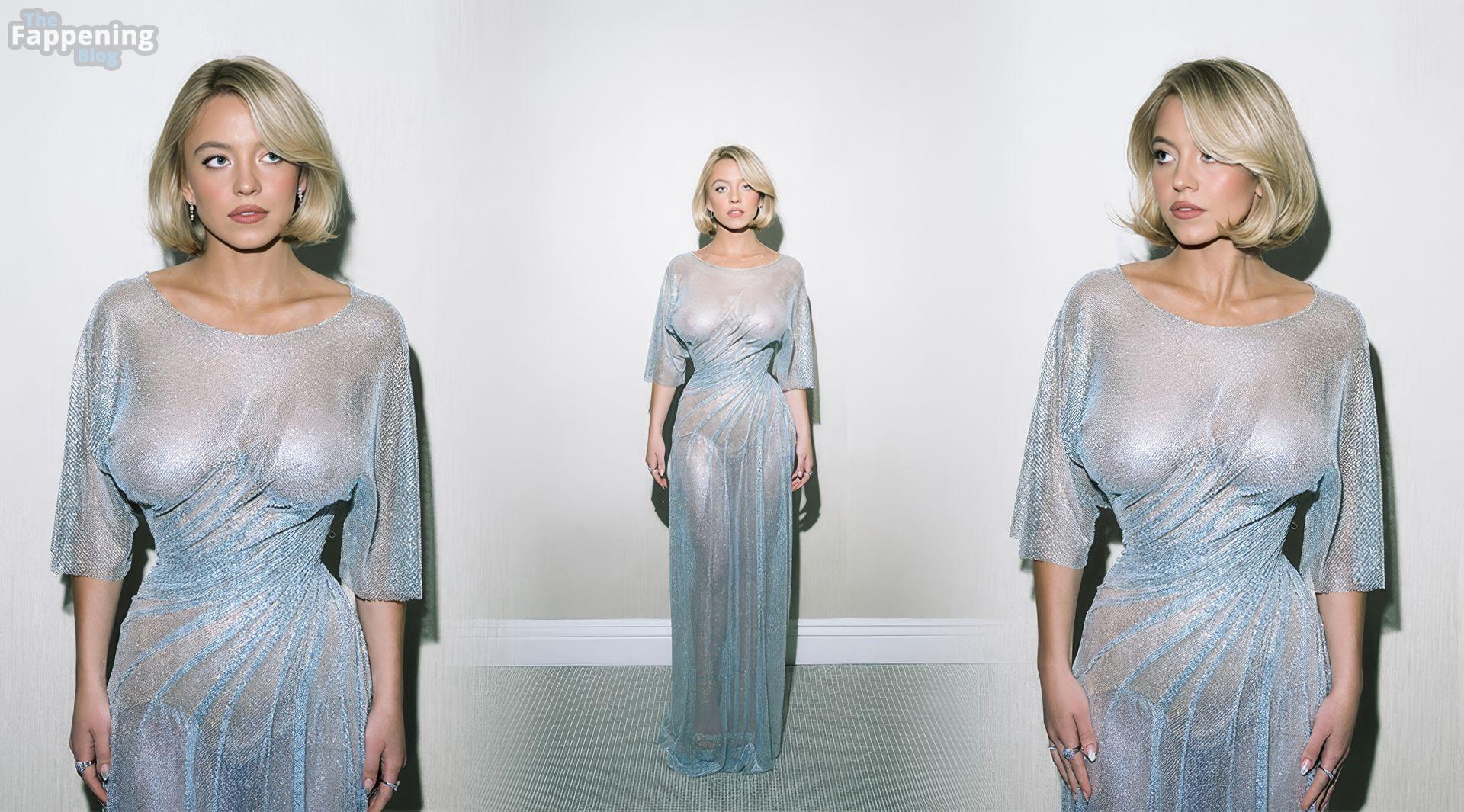 La star di The Fappening Sydney Sweeney ha posato con un abito in rete trasparente durante un servizio fotografico di Marco Aroman per Power of Women di Variety.