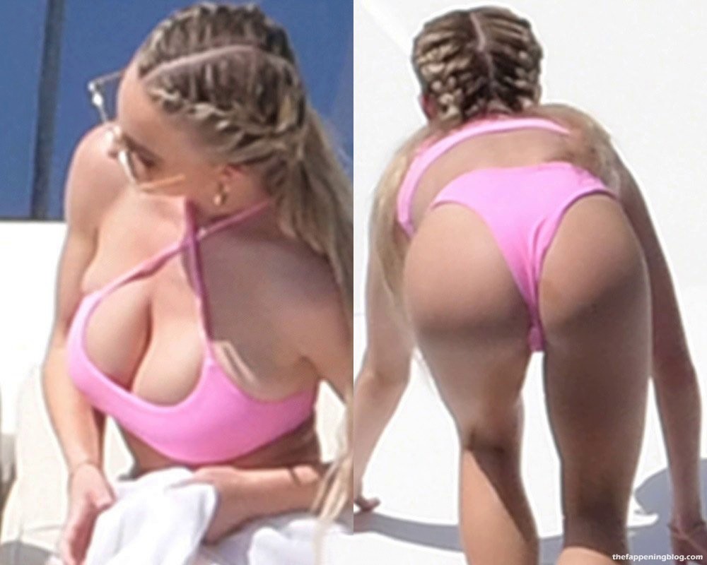 Attrice Sydney Sweeney mostra il suo grande seno e il suo sedere tondo e sodo mentre posa in bikini e lingerie nella collezione The Fappening Blog qui sotto.
