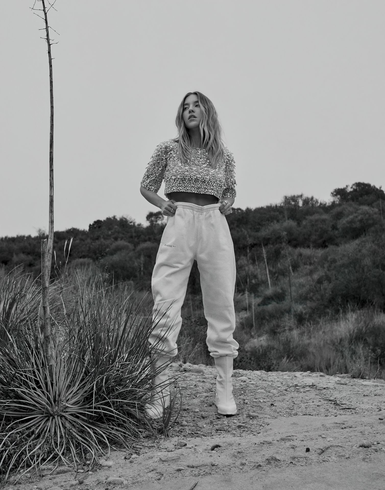 Modella/attrice Sydney Sweeney sfoggia il suo bel seno prosperoso indossando un top bianco rivelatore in un servizio fotografico di Christian Högstedt per il numero di febbraio 2021 di Sbjct Journal.
