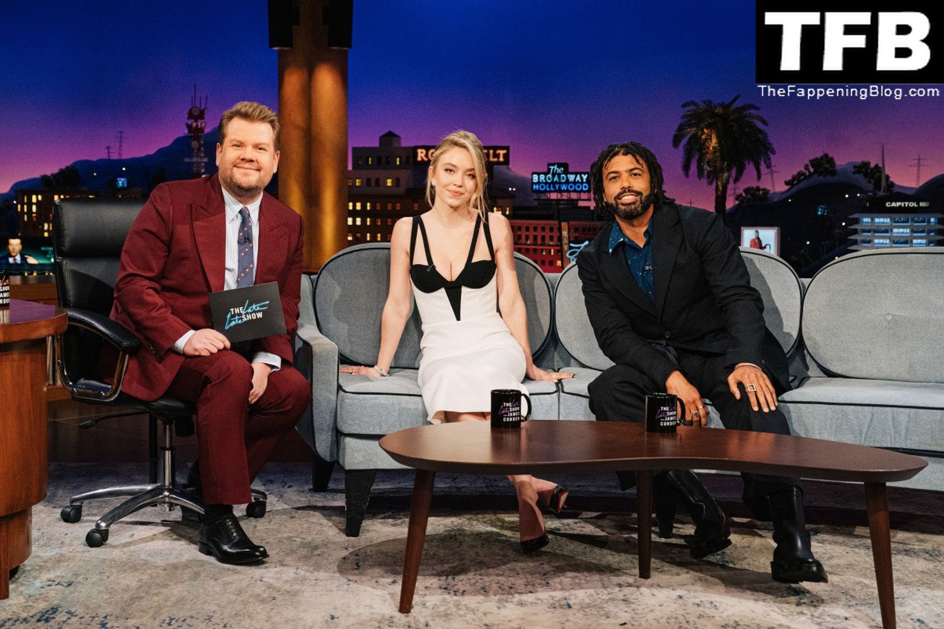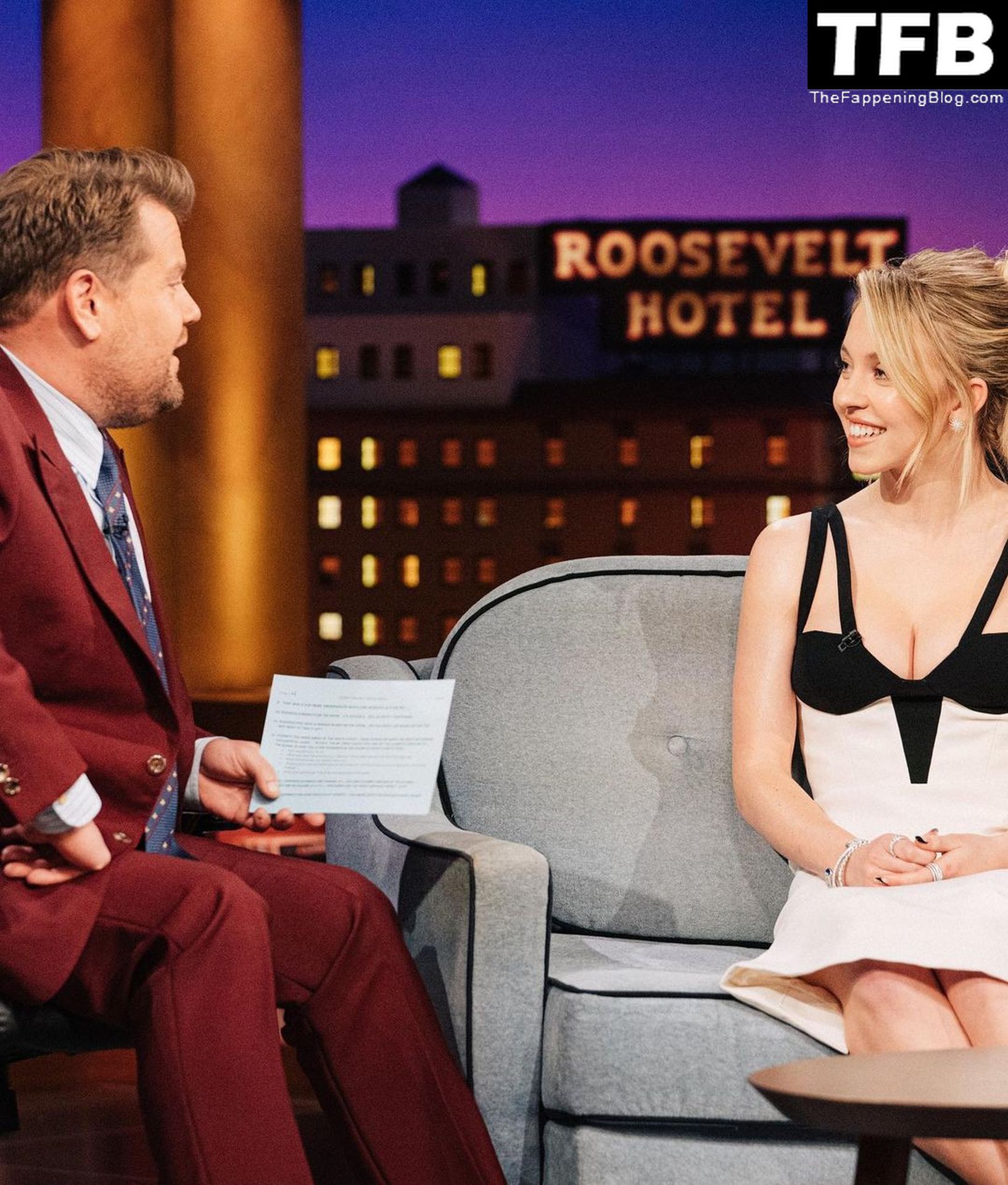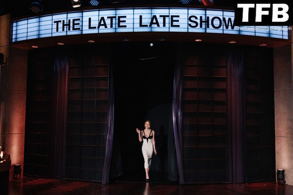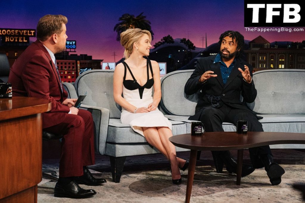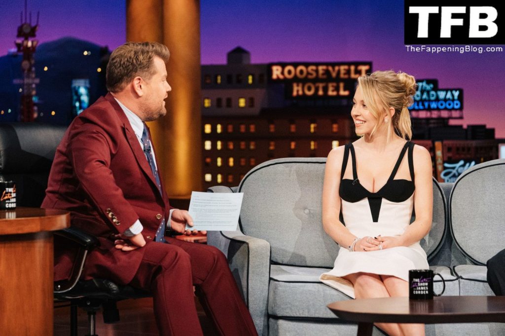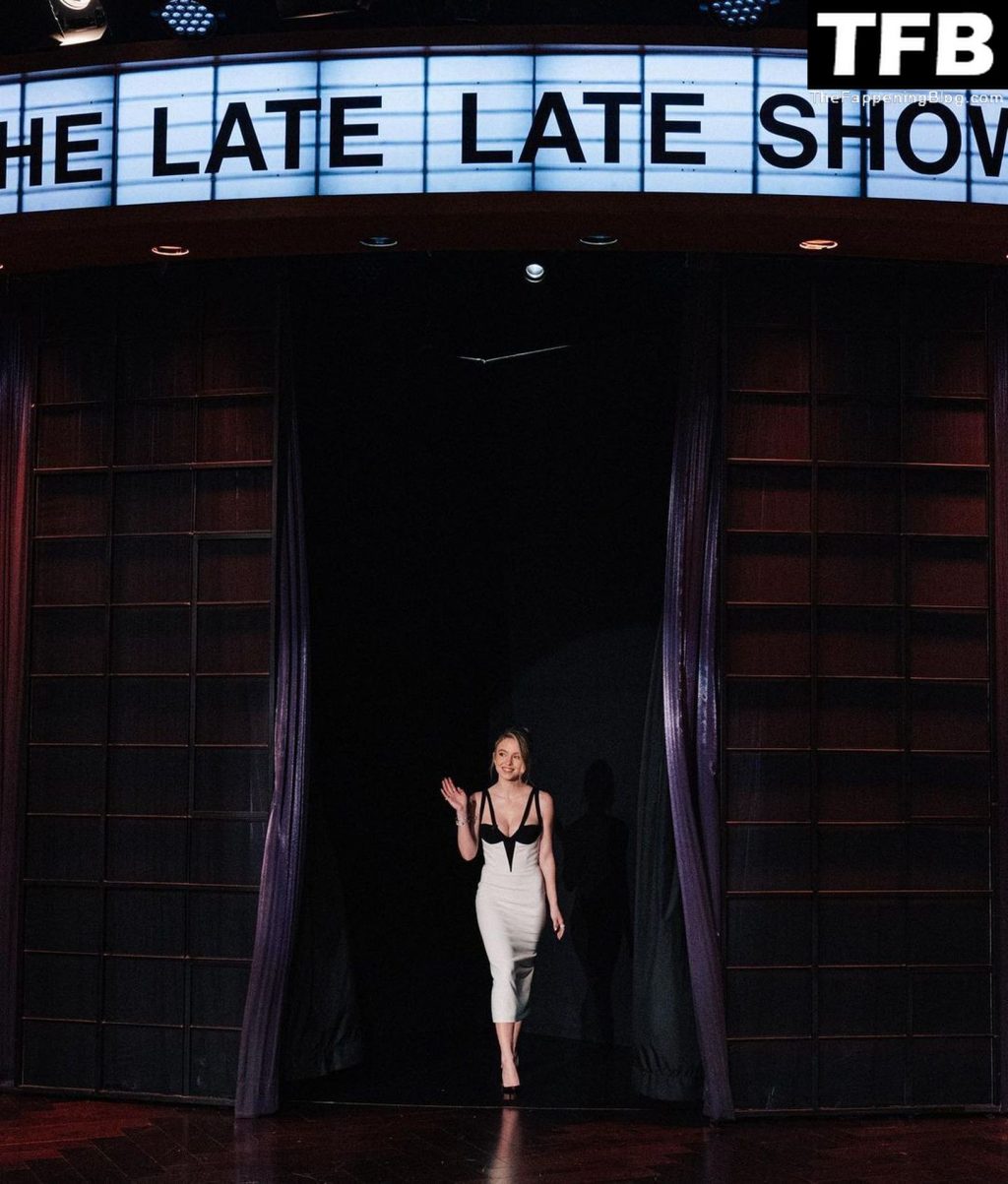 L’attrice Sydney Sweeney stuzzica i fan con i suoi sexy seni mentre appare con un abito bianco e nero a ‘The Late Late Show with James Corden’ a Los Angeles, 26/01/2022.