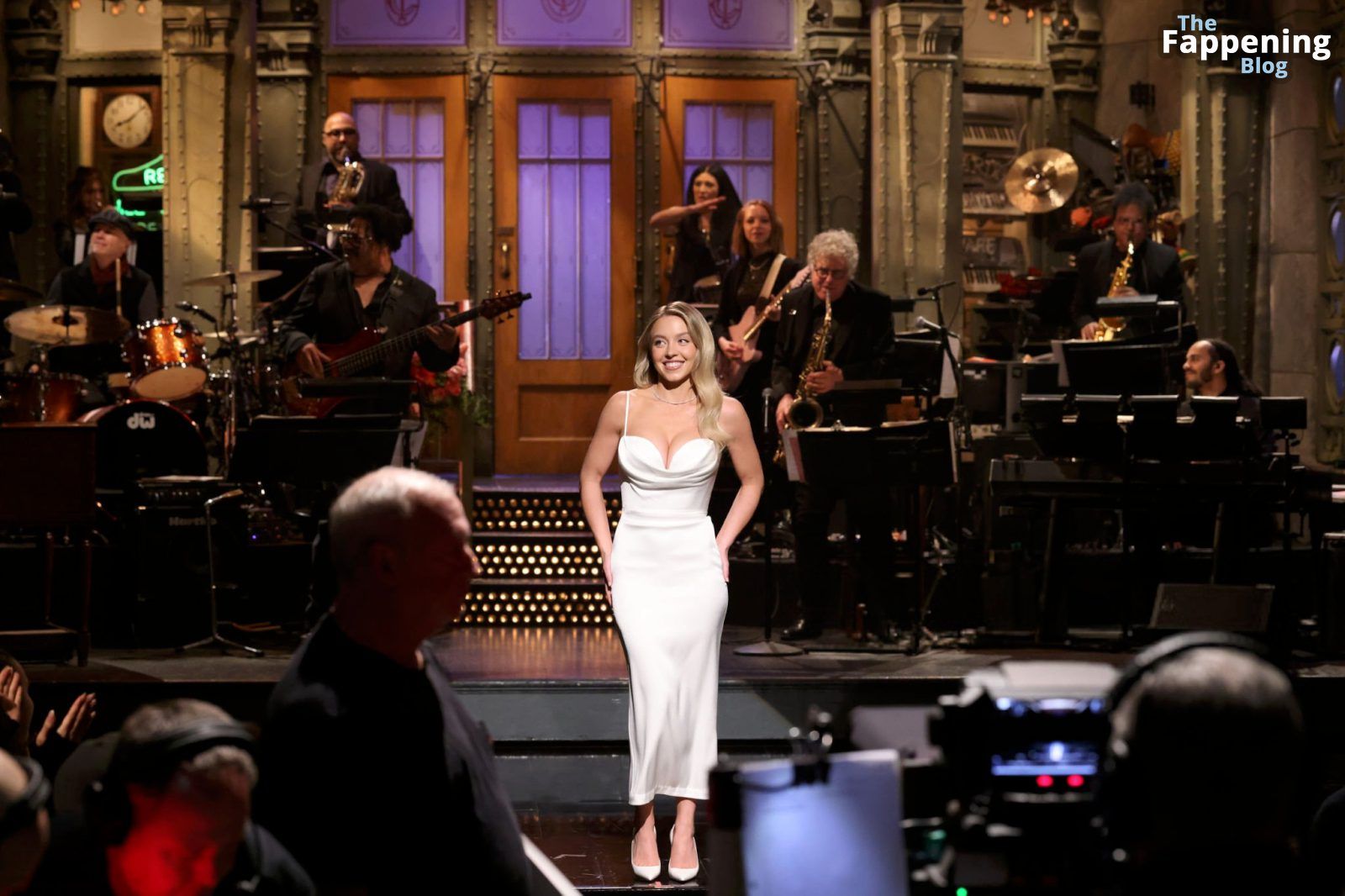 Dai un’occhiata agli outfit di Sydney Sweeney al SNL, dove sfoggia il suo seno prosperoso in look mozzafiato, conquistando il pubblico con la sua sicurezza.