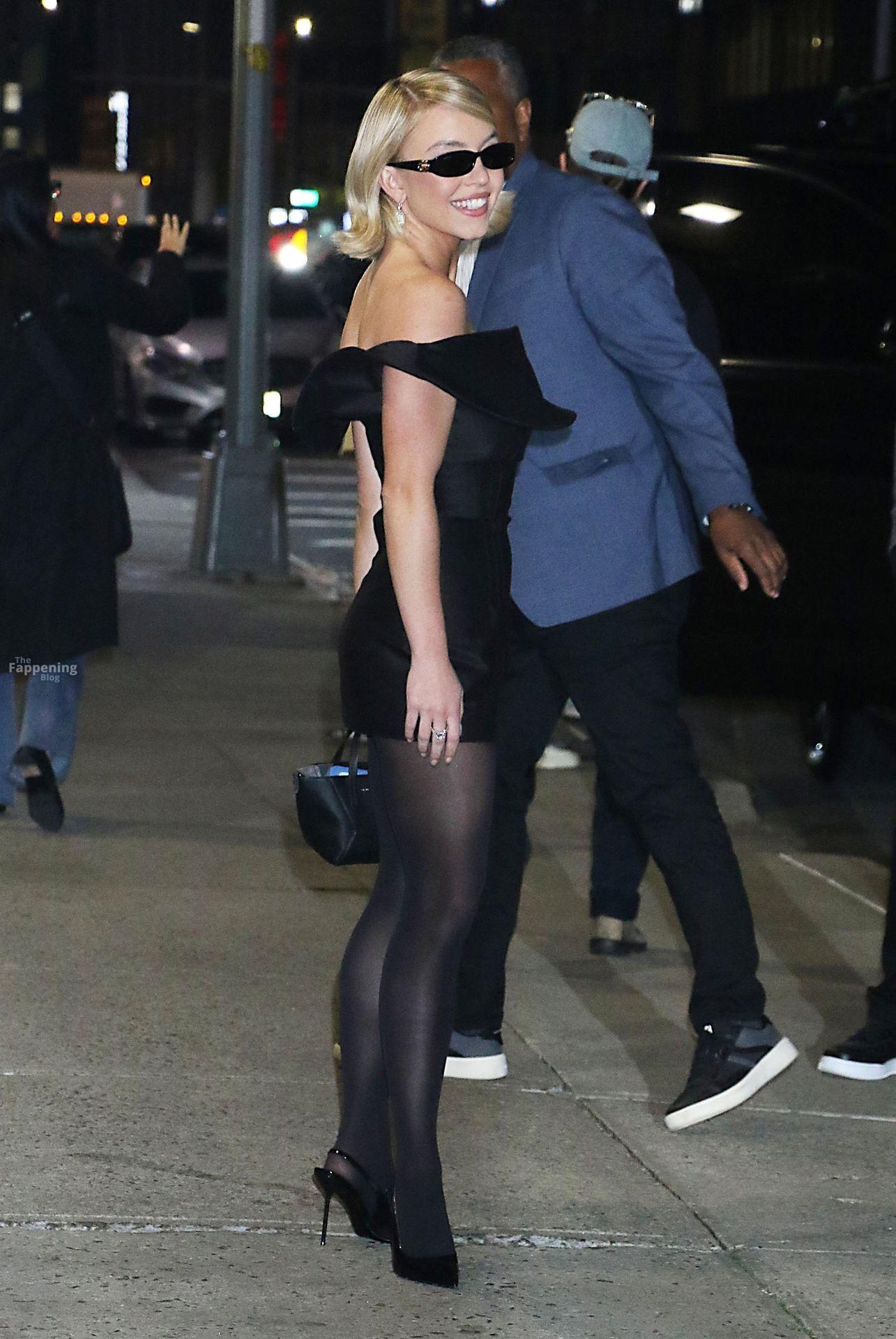 Sydney Sweeney ha illuminato NYC dopo The Late Show with Stephen Colbert, indossando un mini abito nero con collant trasparenti che mettevano in risalto le sue gambe stupende.