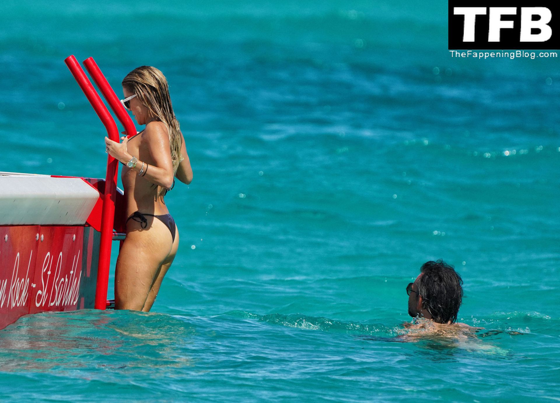 Sylvie Meis in bikini sfoggia la sua figura invidiabile mentre si diverte con il marito Niclas Castello nel Mar dei Caraibi durante la notte di Capodanno a St Barts, 31/12/2021.