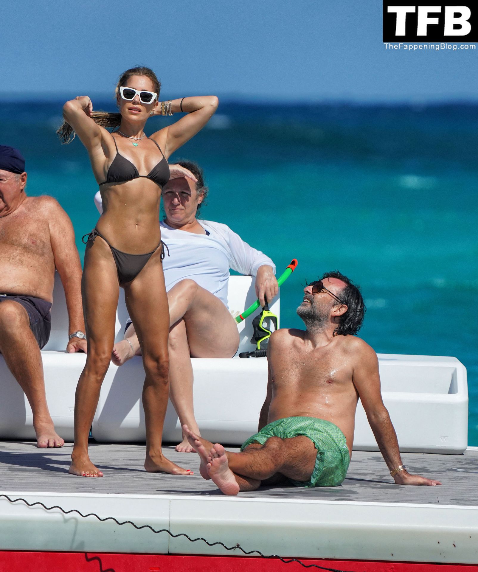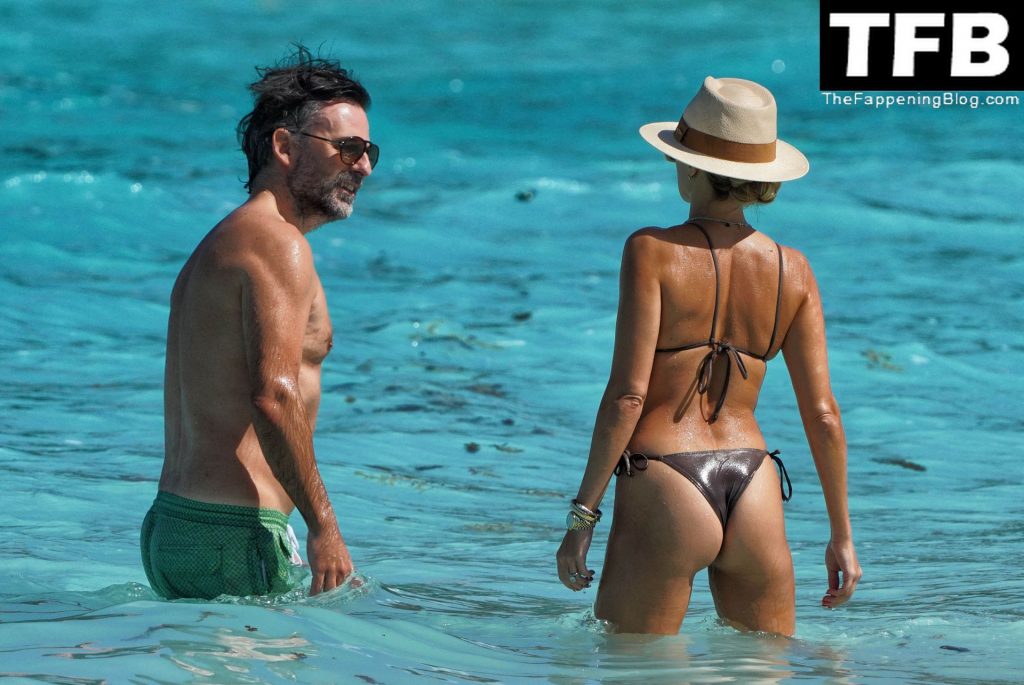 Sembra che alla fine abbia seguito il mio consiglio. Guarda quanto il suo corpo appare migliore e più valorizzato quando indossa bikini a taglio alto. La prossima volta dovrebbe indossare un pezzo inferiore con un taglio più alto—magari un pollice più alto e starà ancora meglio per il suo tipo di corpo.