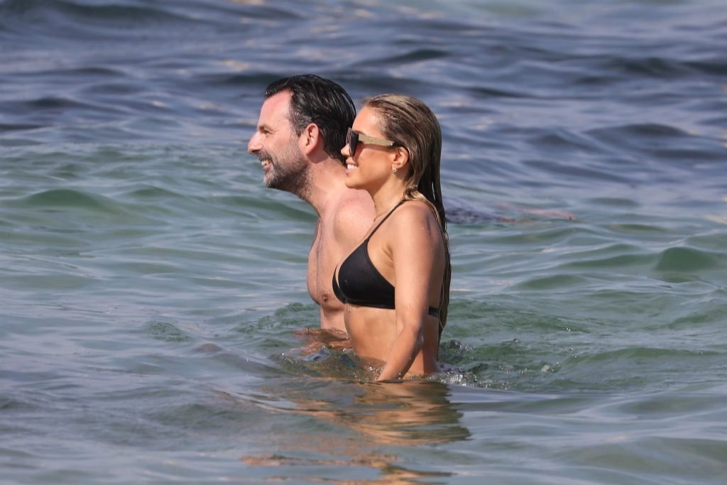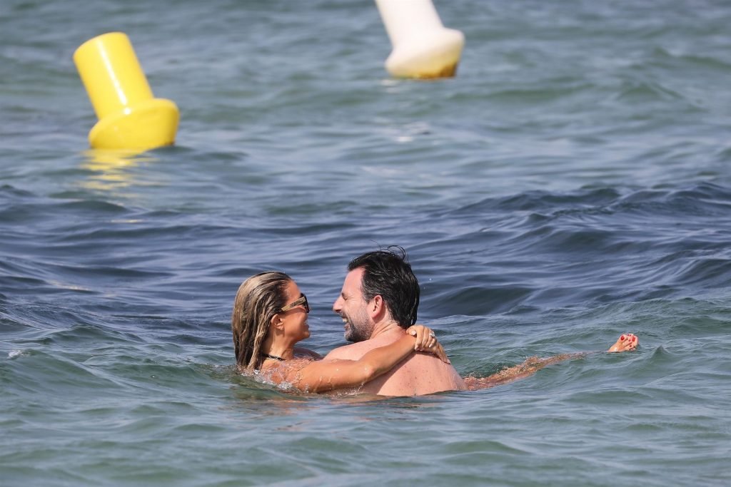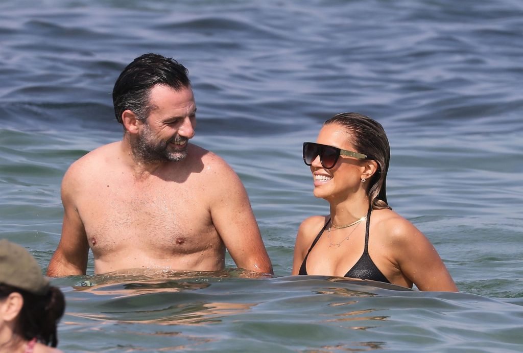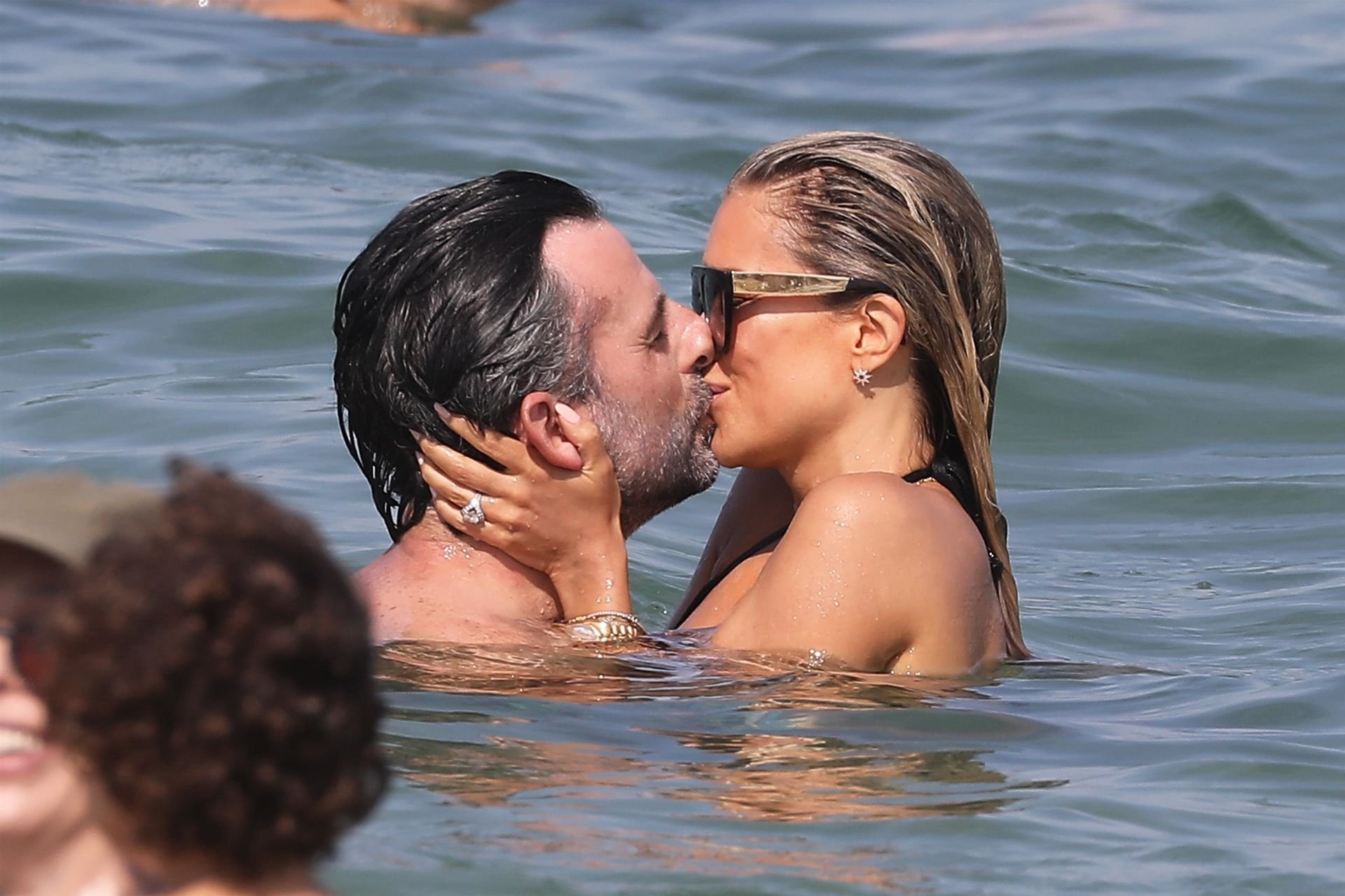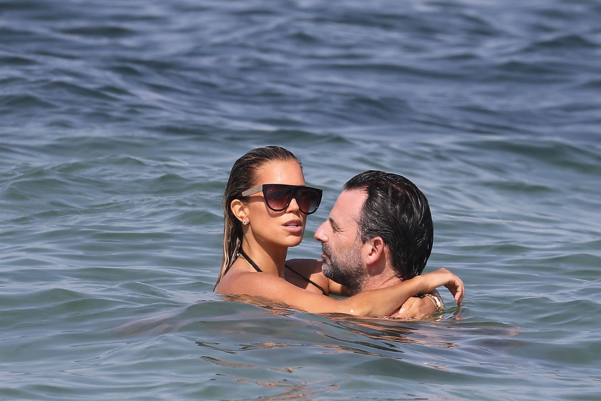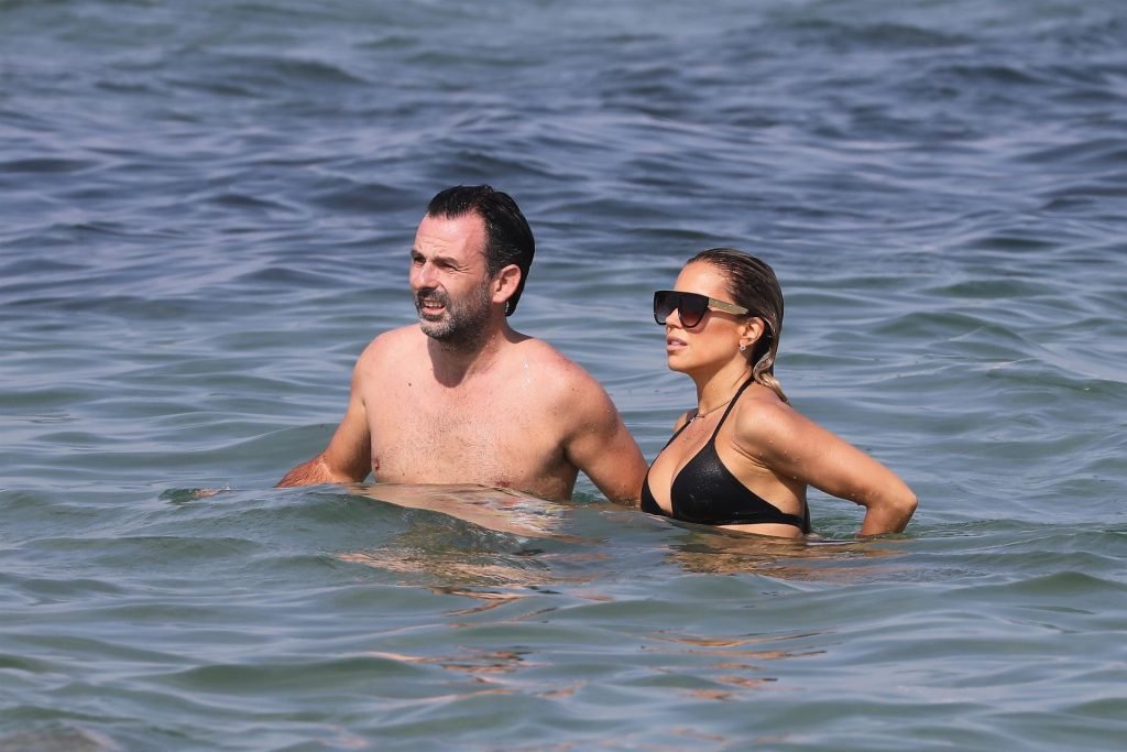 La modella/attrice/presentatrice TV olandese Sylvie Meis e il suo nuovo fidanzato sono stati visti al Club 55 a Saint-Tropez durante le loro vacanze, 17/07/2019.