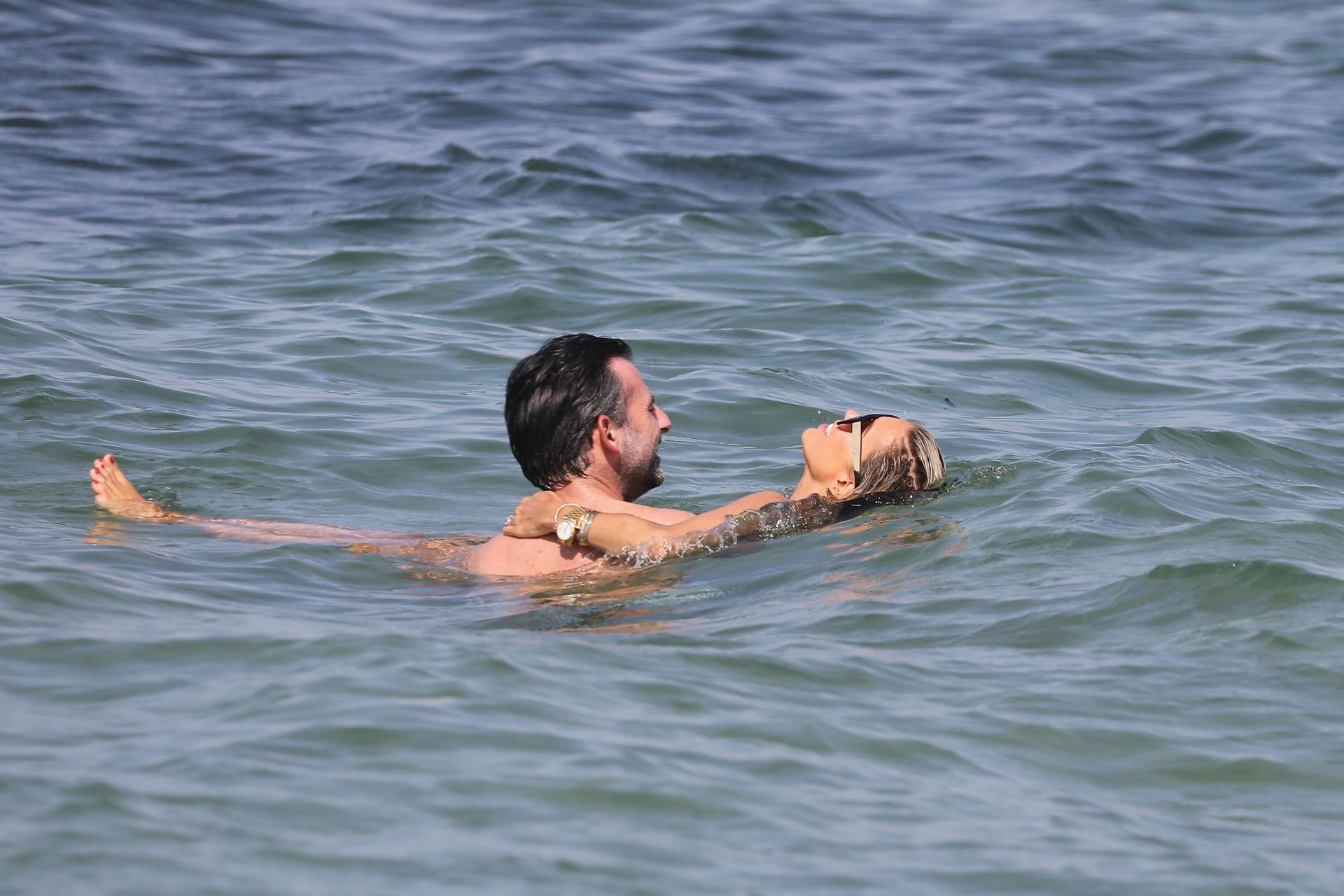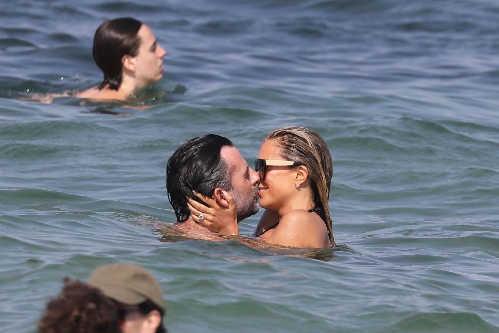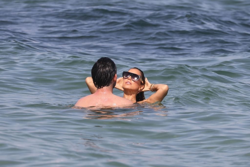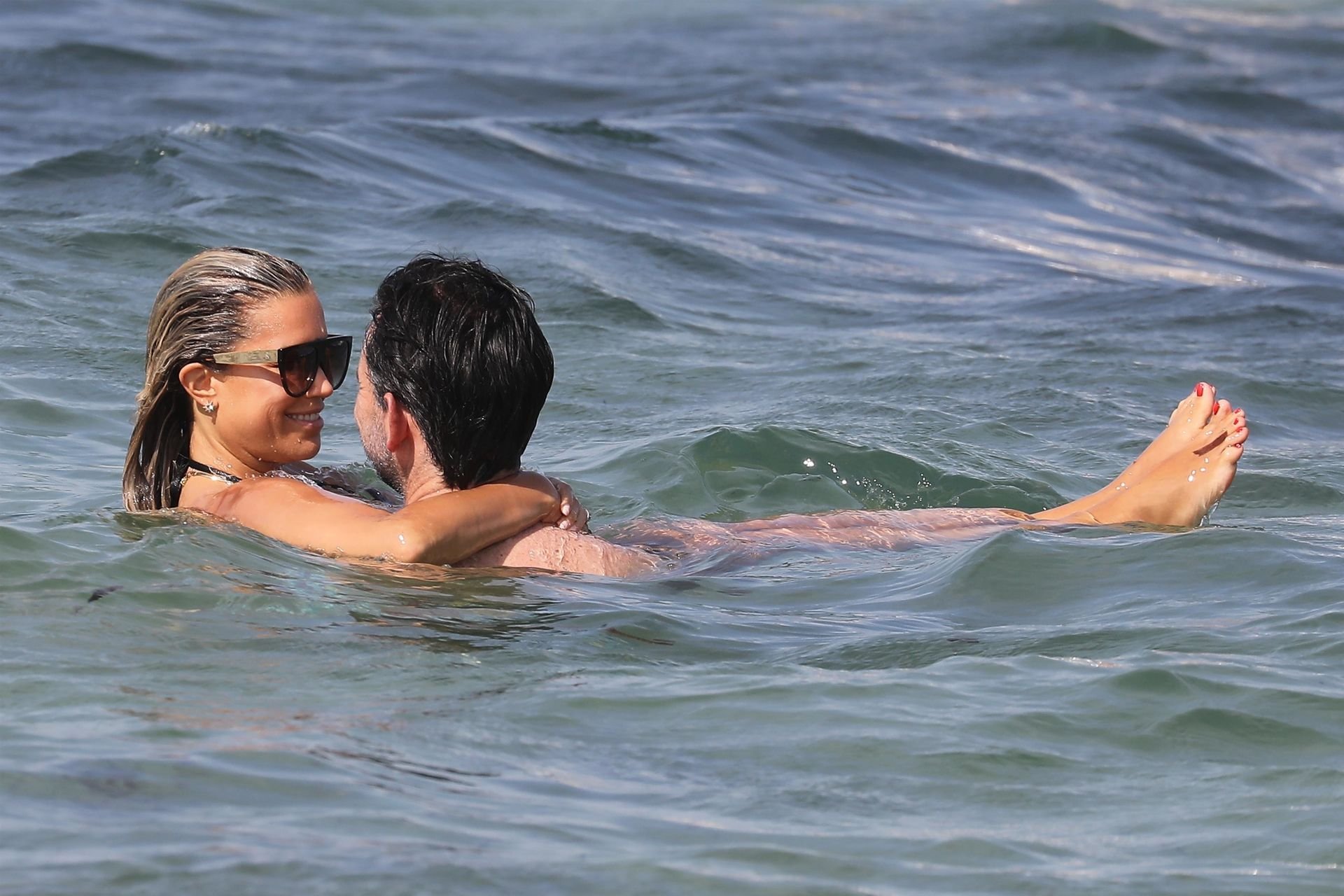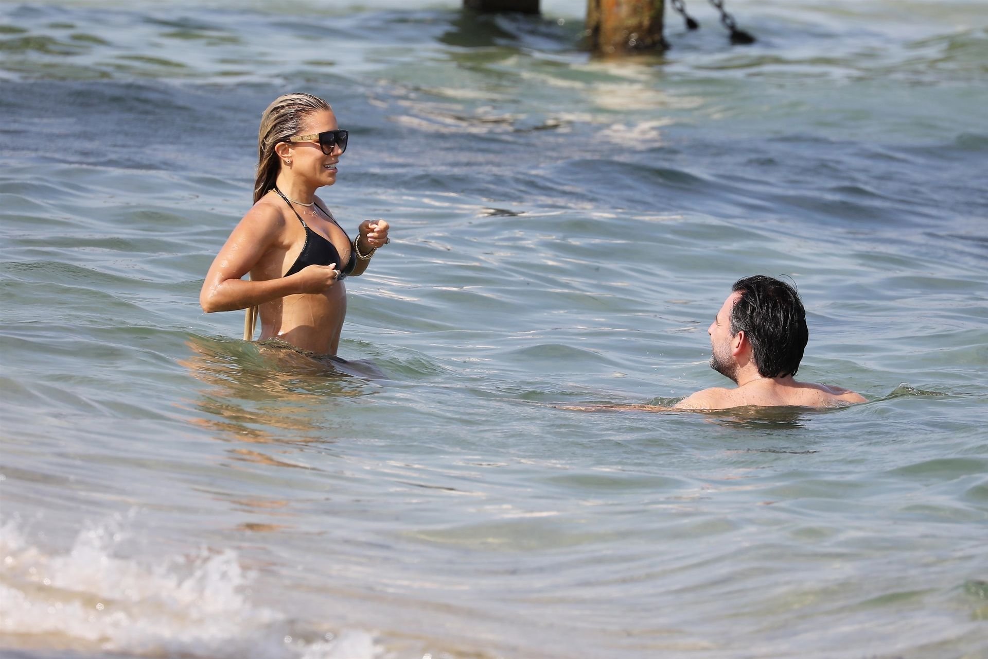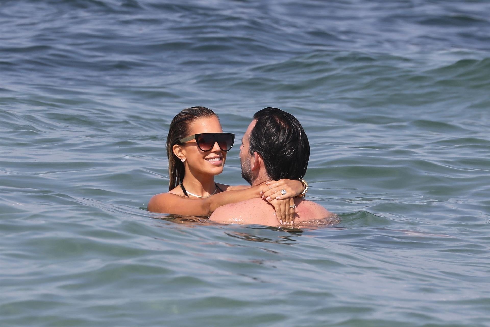 La modella/attrice/presentatrice TV olandese Sylvie Meis e il suo nuovo fidanzato sono stati visti al Club 55 a Saint-Tropez durante le loro vacanze, 17/07/2019.