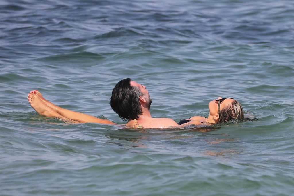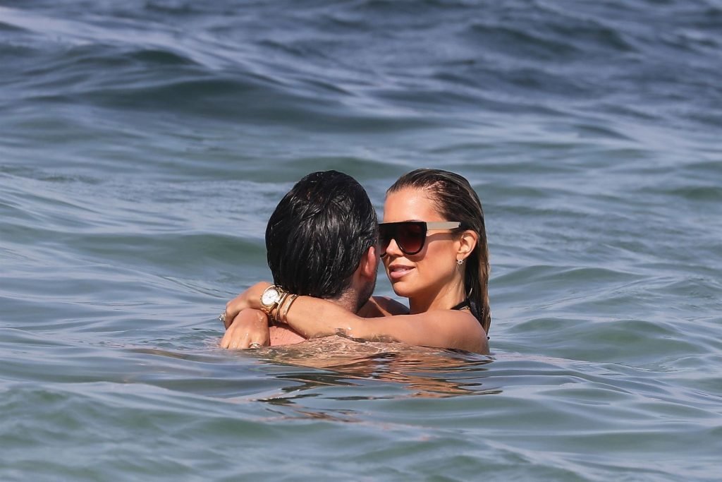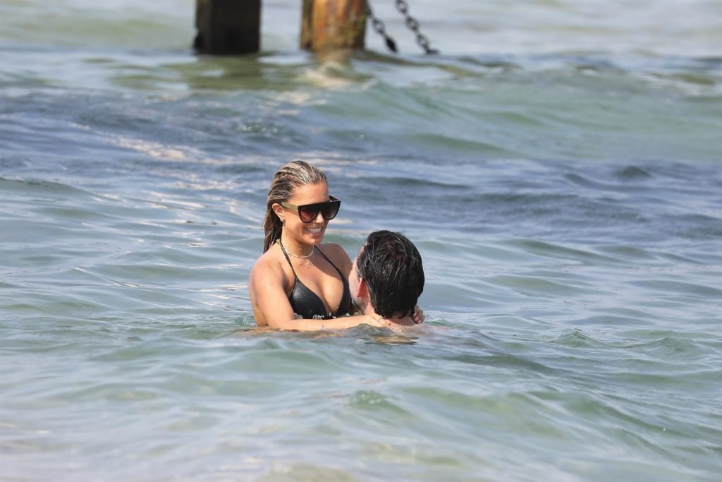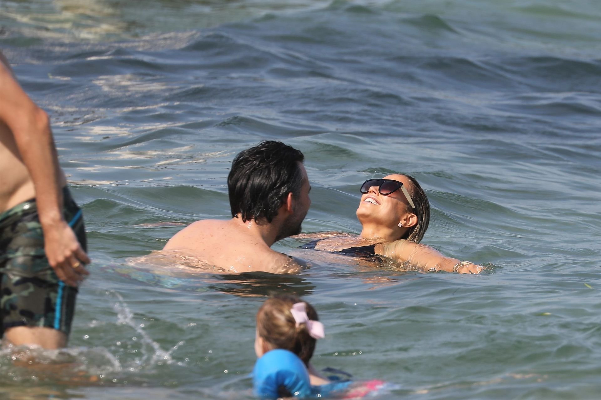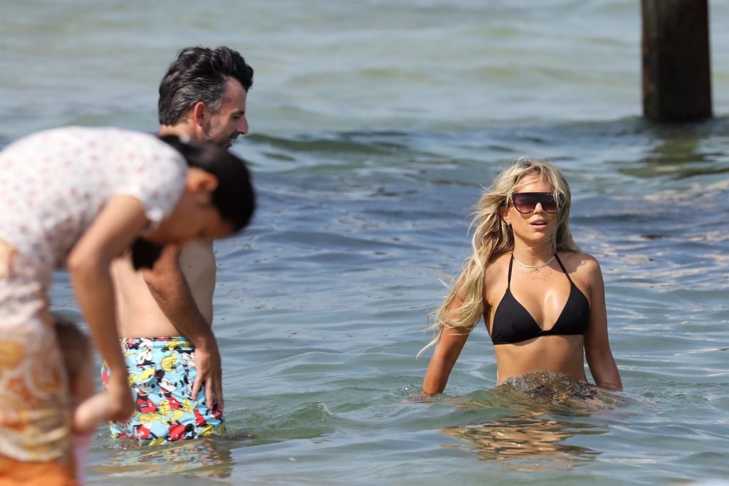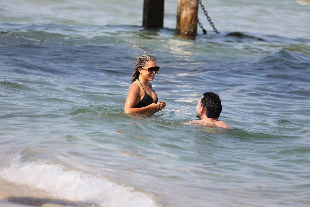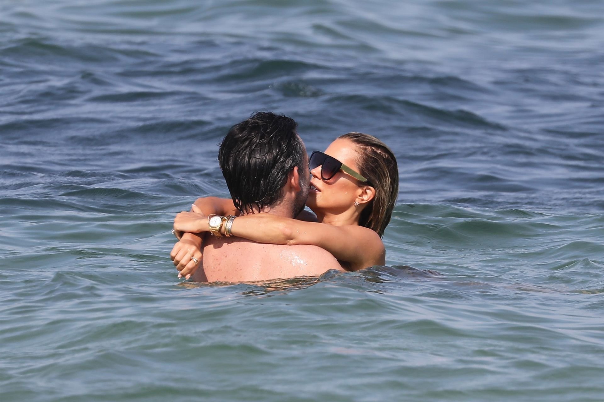 La modella/attrice/presentatrice TV olandese Sylvie Meis e il suo nuovo fidanzato sono stati visti al Club 55 a Saint-Tropez durante le loro vacanze, 17/07/2019.
