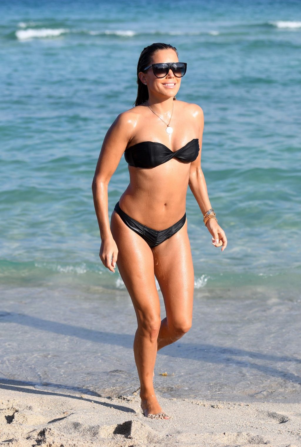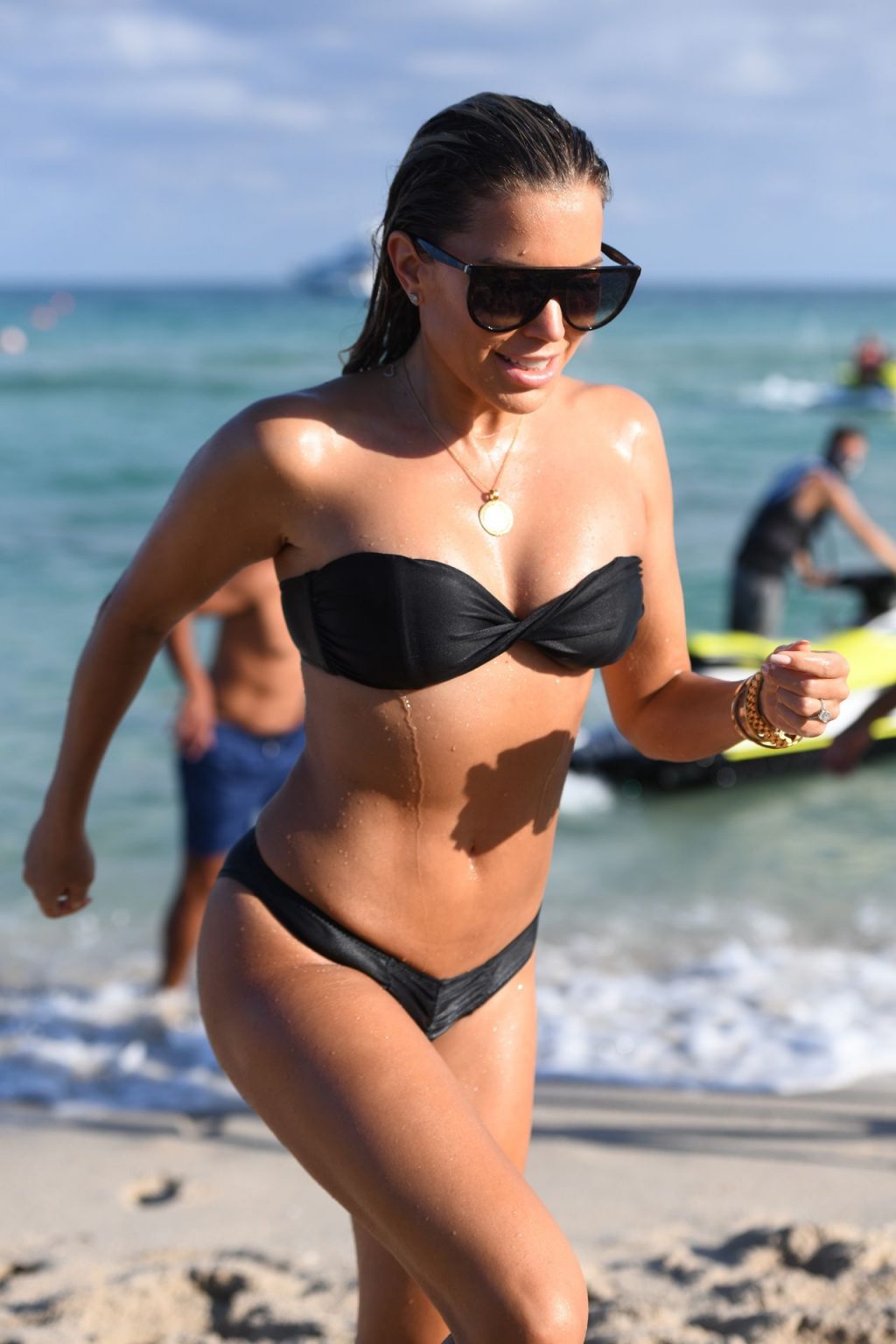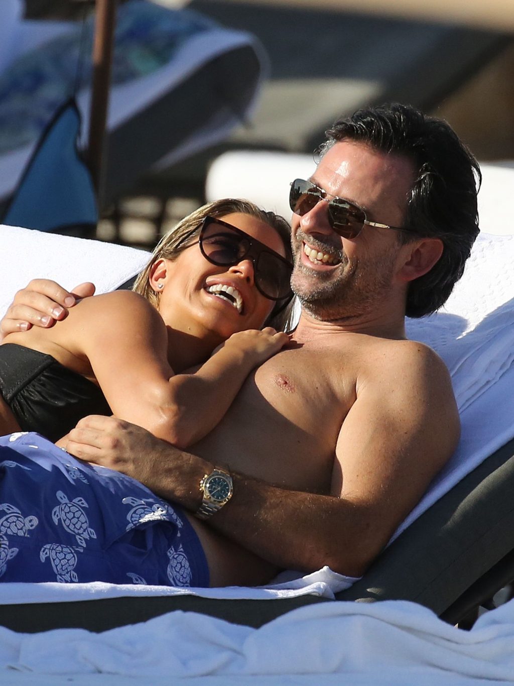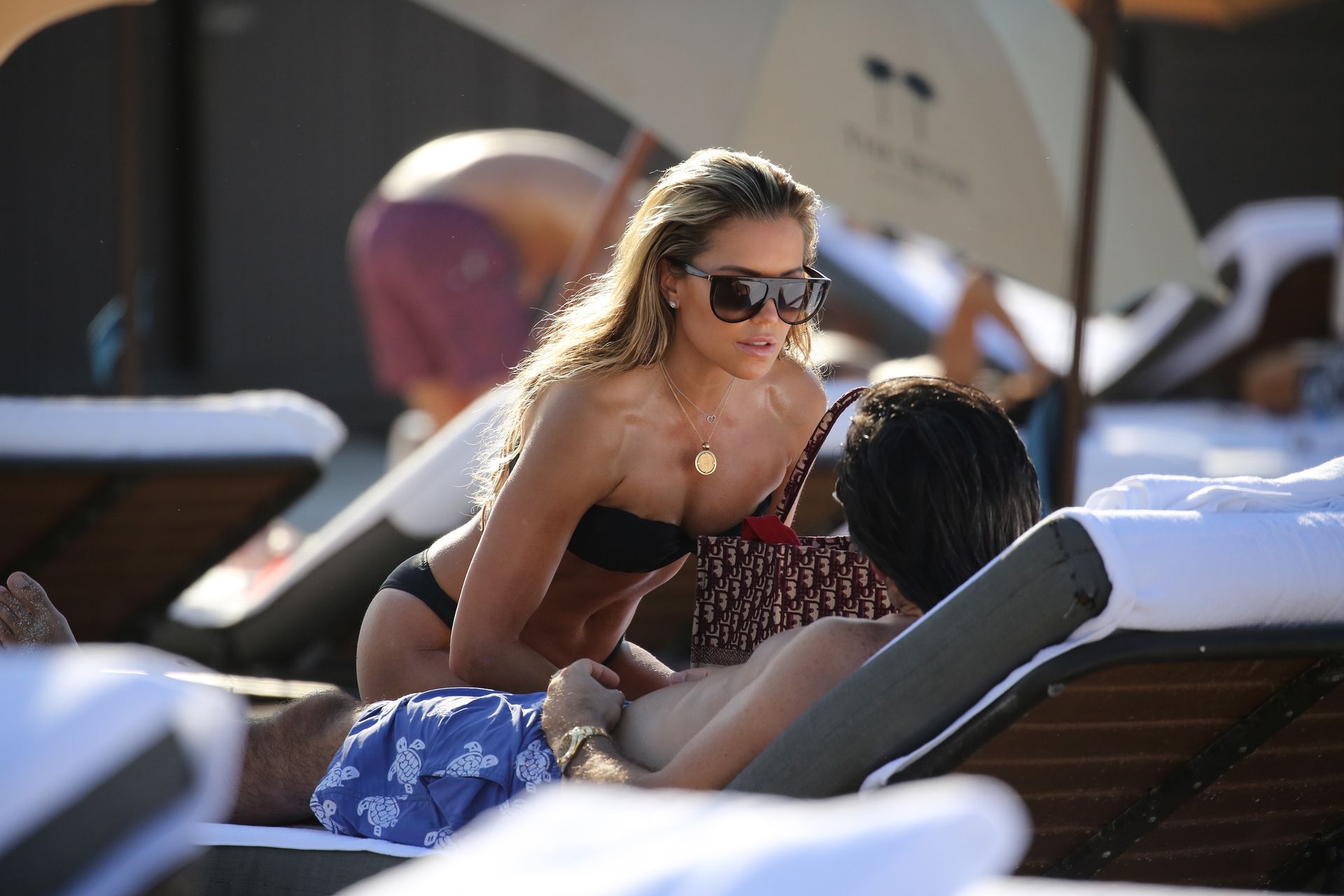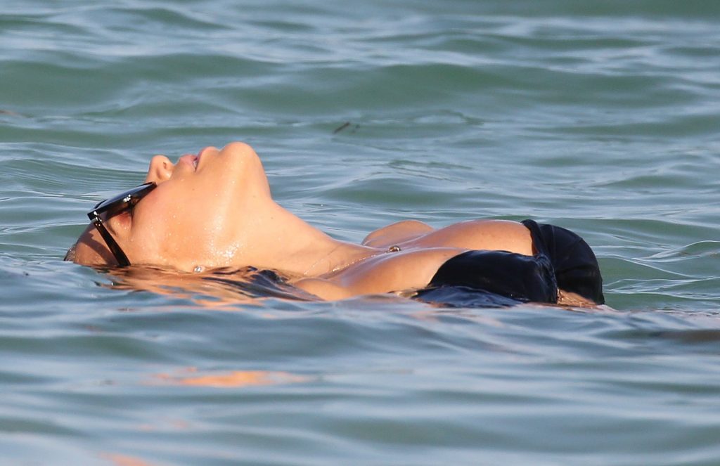 La celebrità olandese Sylvie Meis (41) indossa un bikini nero e mostra un anello di fidanzamento mentre bacia Niclas Castello sulla spiaggia di Miami, 30/11/2019.
