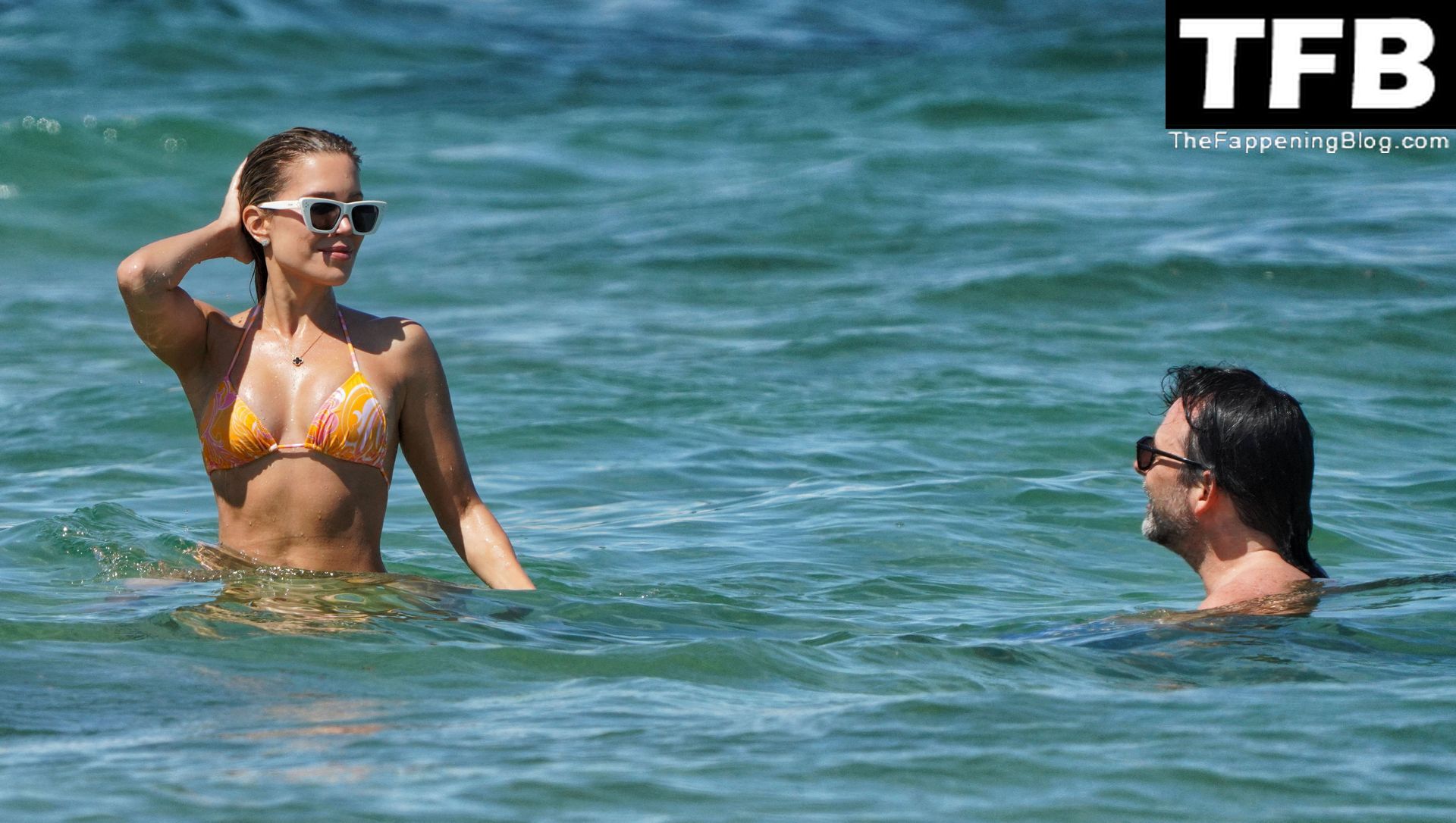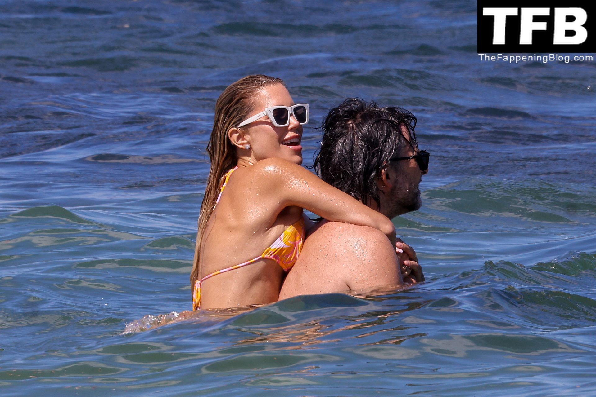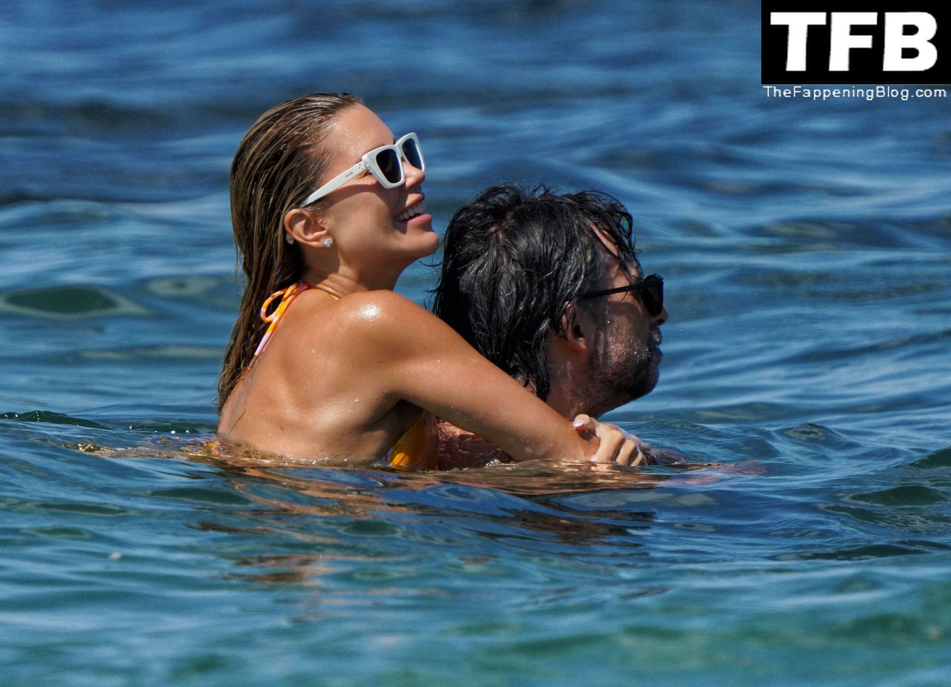 Sylvie Meis e suo marito Niclas Castello sono stati visti durante una giornata in spiaggia a Saint Tropez, 25/06/2022. Sylvie Meis mostra il suo incredibile corpo in un bikini arancione.