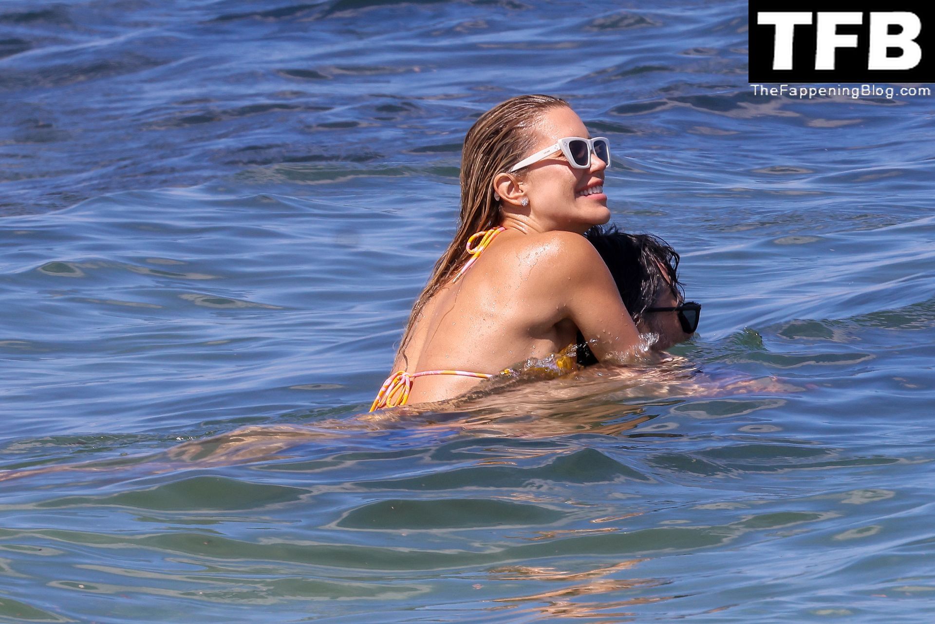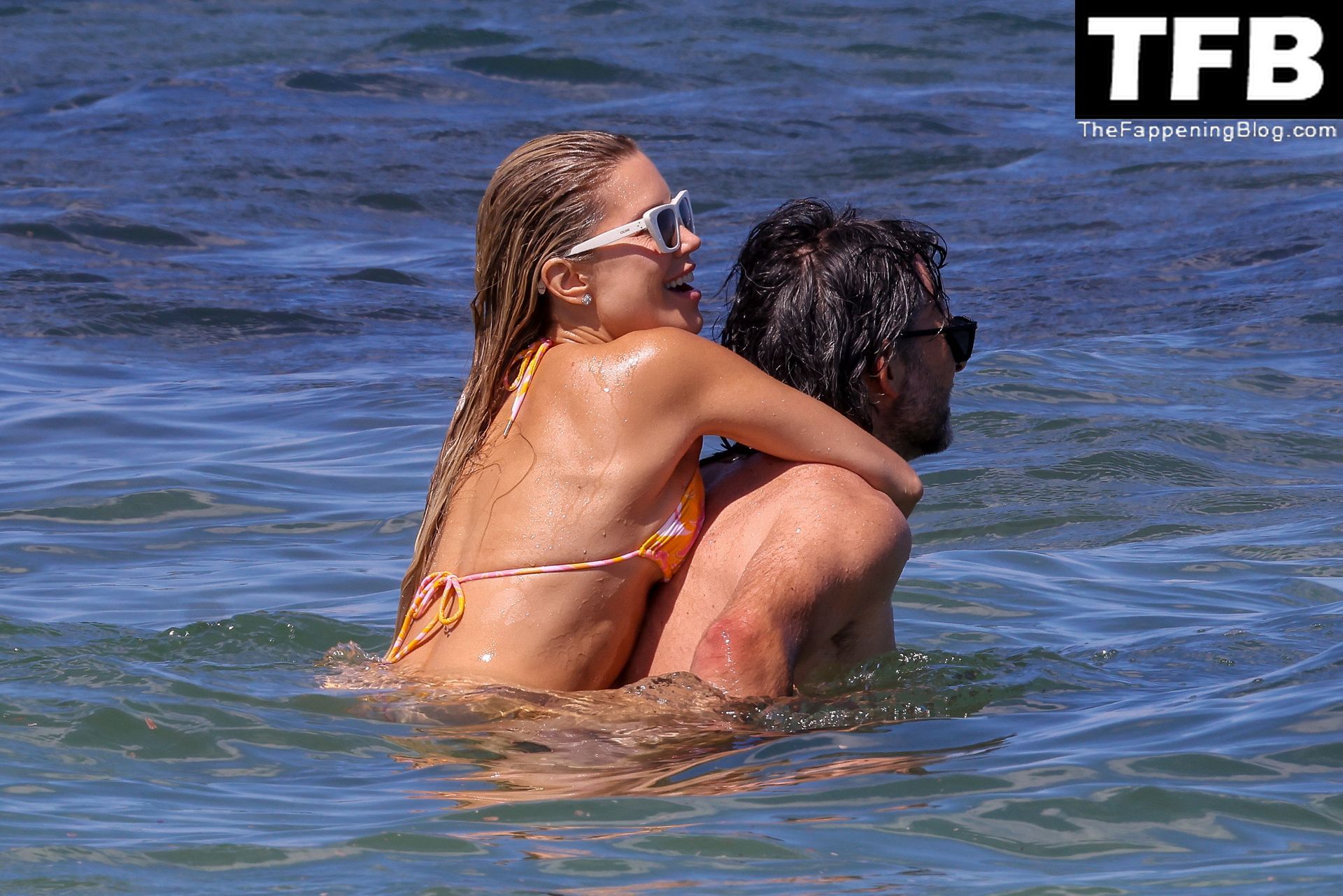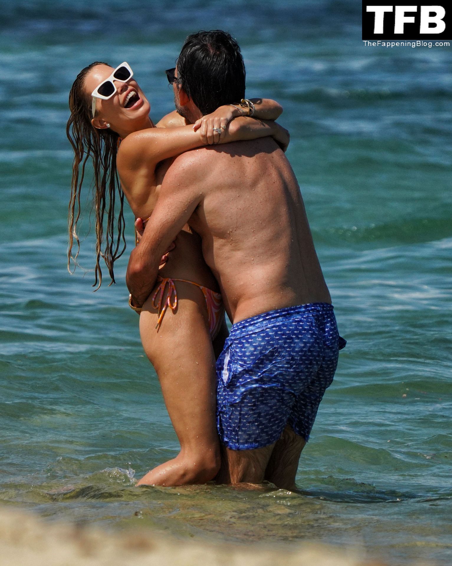 Sylvie Meis e suo marito Niclas Castello sono stati visti durante una giornata in spiaggia a Saint Tropez, 25/06/2022. Sylvie Meis mostra il suo incredibile corpo in un bikini arancione.