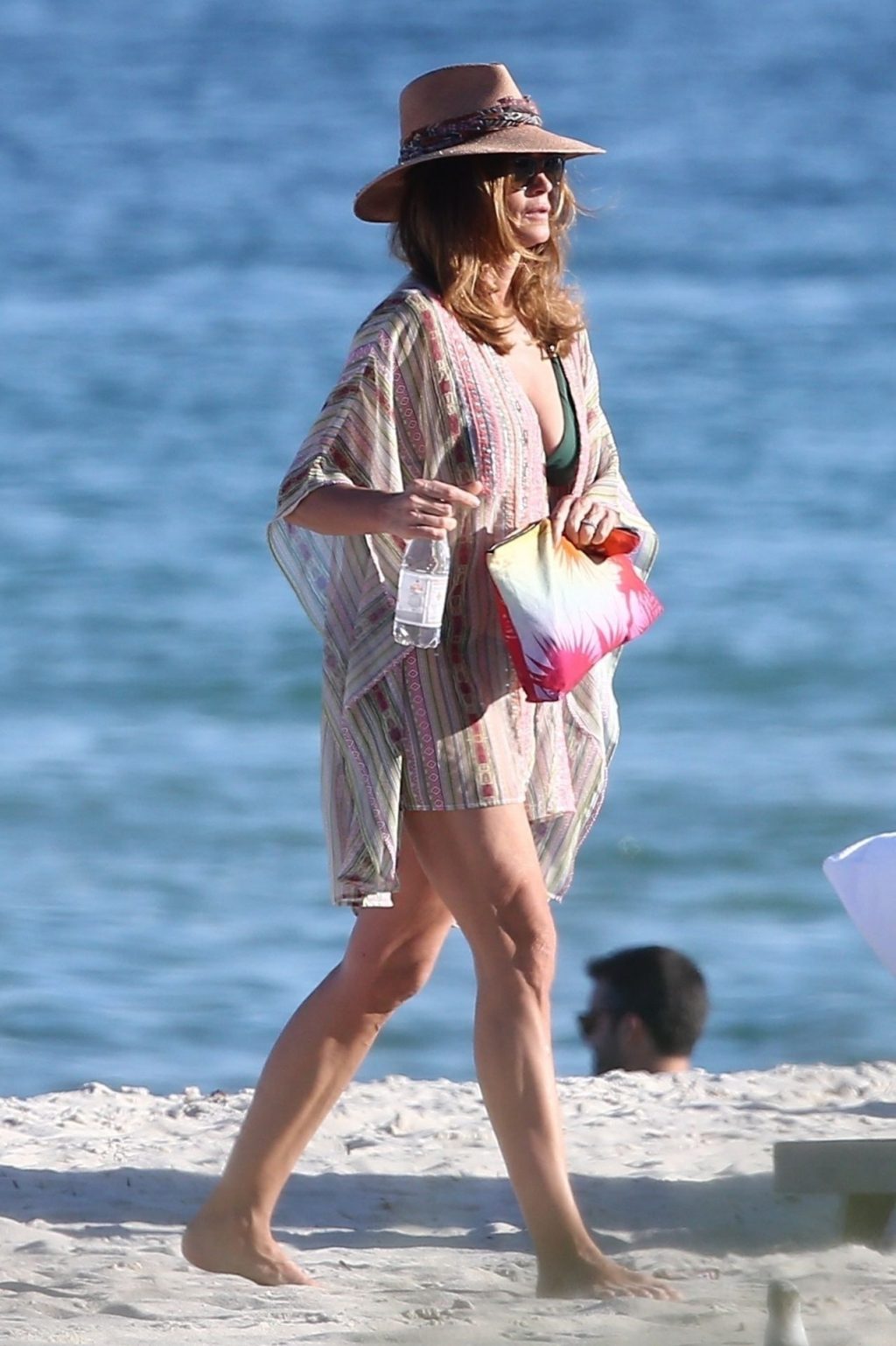 La supermodella Cindy Crawford indossa un bikini nero sotto un copricostume bianco mentre passeggia con il marito Rande Gerber a Miami, 22/06/2019.