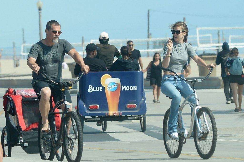 Josh Brolin e Kathryn Boyd vanno in bicicletta sulla spiaggia a Santa Monica, California, 09/07/2019.
