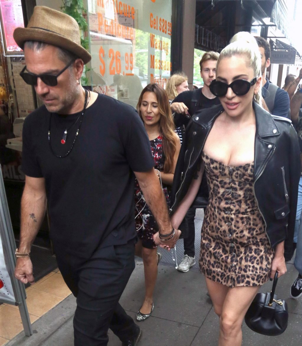 Lady Gaga indossava un vestito leopardato molto corto per una passeggiata con il suo fidanzato, 28/06/2018. “La Regina dell’Epatage” non cambia la sua immagine e continua a sorprendere le persone con outfit spontanei.