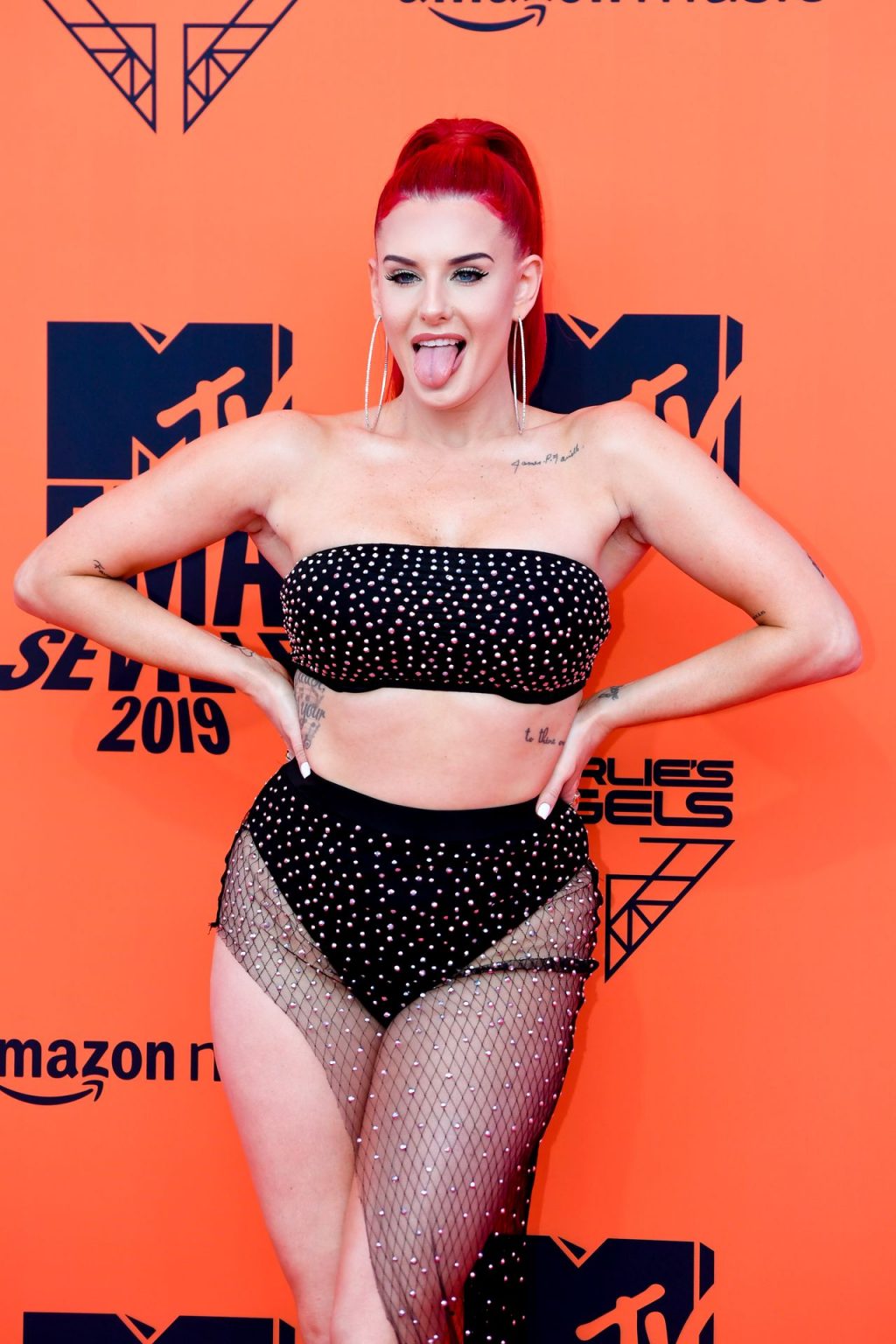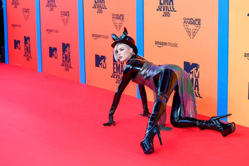 Maruv posa con un outfit in lattice sexy sul red carpet all’arrivo agli MTV Europe Music Awards presso il FIBES Conference and Exhibition Centre di Siviglia il 3 novembre 2019. MARUV (Maruv; vero nome Anna Korsun) è una cantante, compositrice e produttrice ucraina di 27 anni.