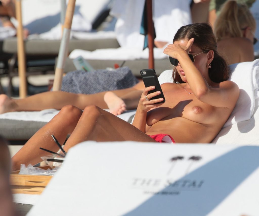 La modella ceca Petra Kladivova è vista topless sulla spiaggia di Miami Beach, 12/09/2017. Petra ha trascorso una giornata all’hotel The Setai con il suo cane. Ha mangiato un’insalata mentre prendeva il sole, coprendosi a volte con un costume intero rosso.
