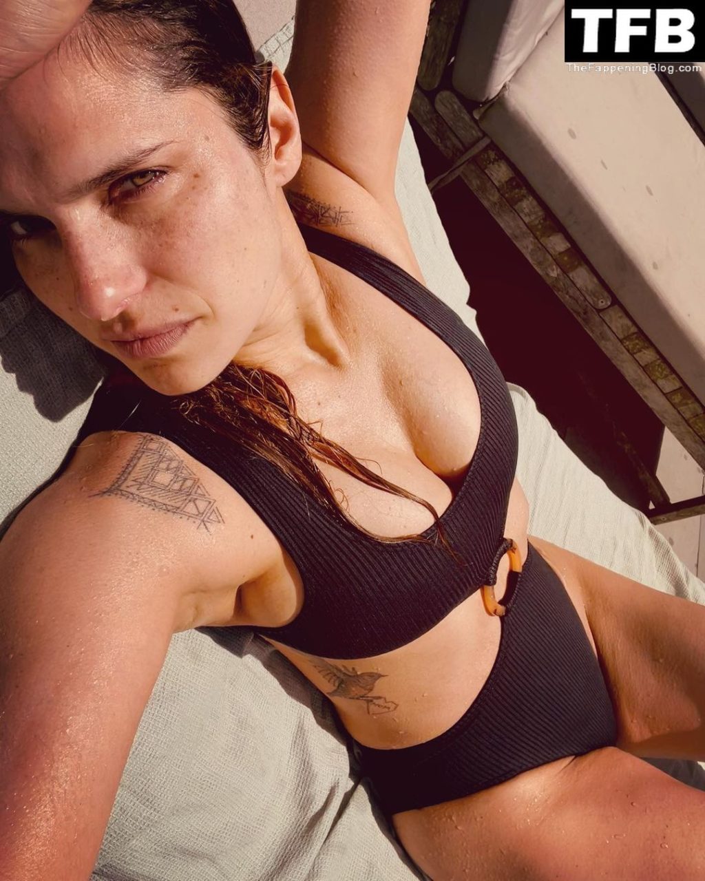 Attrice e The Fappening Star Lake Bell si scatta un nuovo selfie mostrando i suoi seni sexy – Instagram, 19/06/2022.