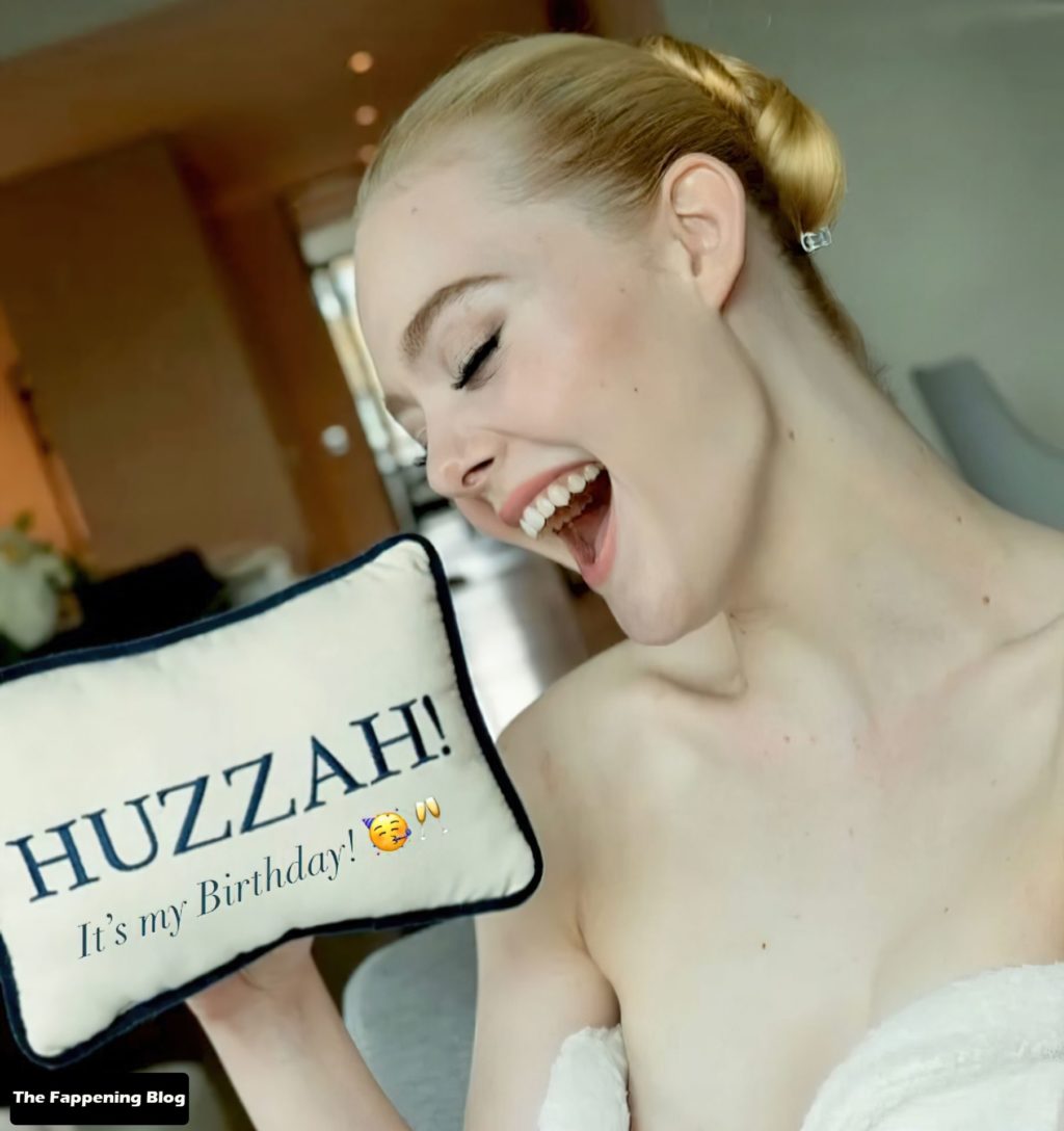 Elle Fanning sfoggia il suo décolleté e un po’ di pelle nella foto sui social media qui sotto.