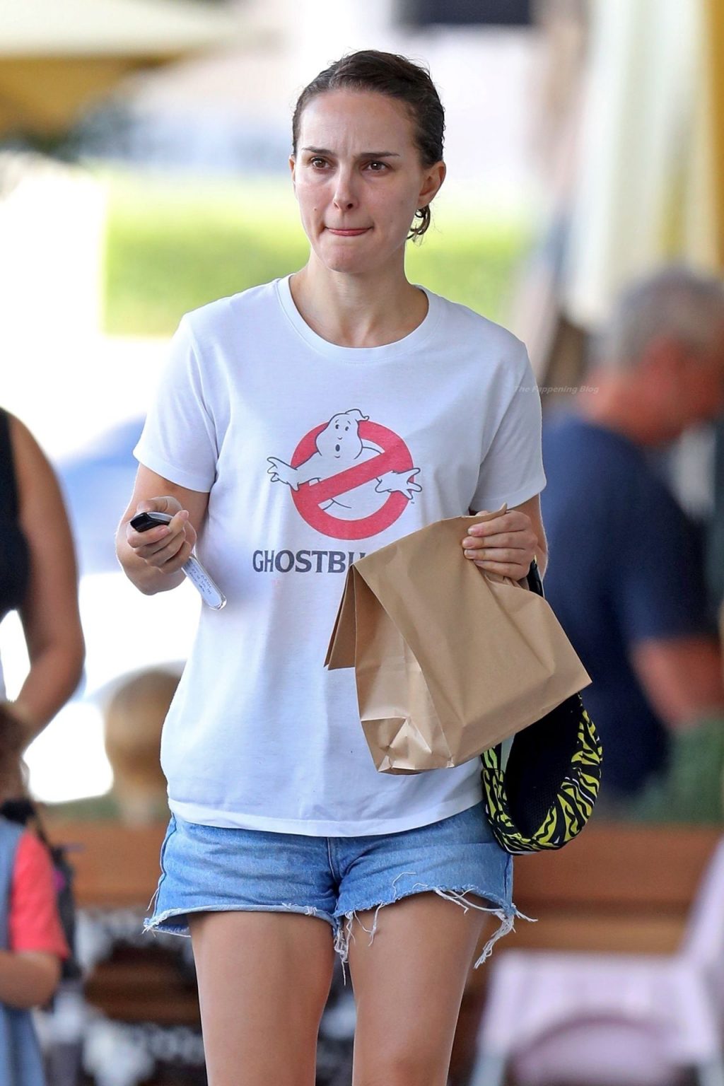 Chi chiamerai! L’attrice Natalie Portman appare casual e alla moda mentre è fotografata mentre fa alcune commissioni a Sydney indossando una fantastica T-Shirt di Ghostbusters con pantaloncini di jeans e marsupio giallo e nero stampato!