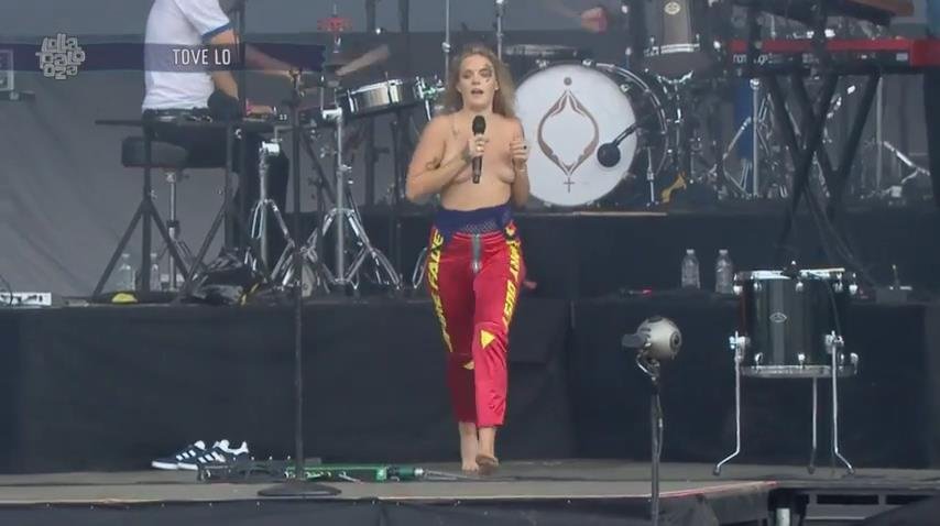Tove Lo mostra il seno ai concerti di Lady Wood (febbraio 2017). Tove Lo è una cantautrice svedese. Età: 29 (nata il 29 ottobre 1987).