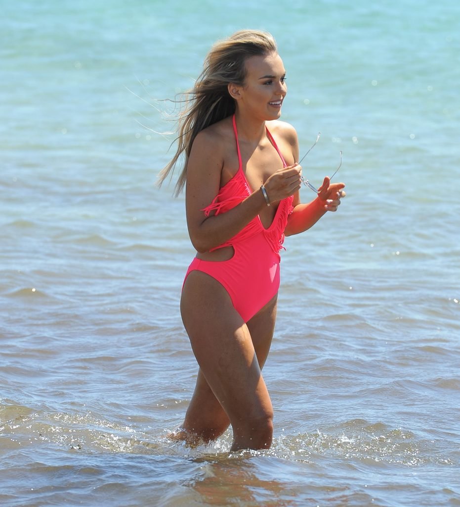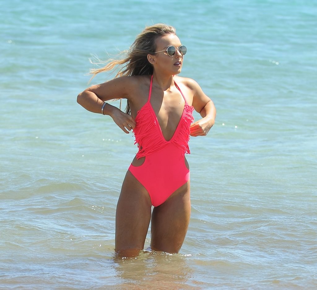 Tallia Storm si gode una giornata in spiaggia in Spagna, 28/11/2017. Natalya (Tallia) Hartmann è una cantante e cantautrice scozzese. Età – 19.