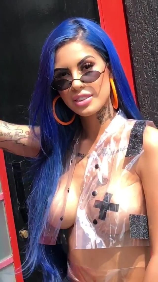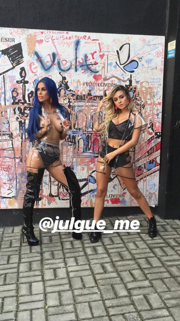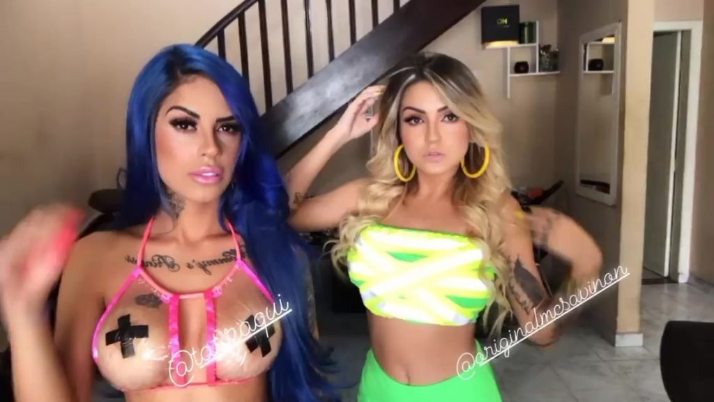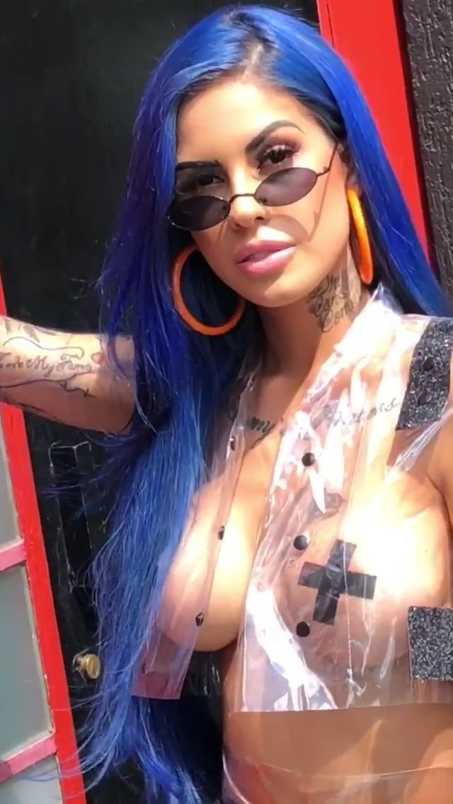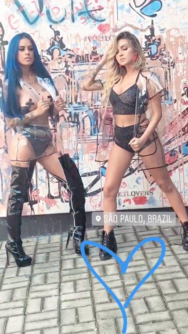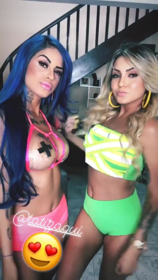 La cantante brasiliana Tati Zaqui ha condiviso alcune foto e video sexy e topless (coperti) di un nuovo servizio fotografico con MC Savinon – Instagram, 14/01/2019.