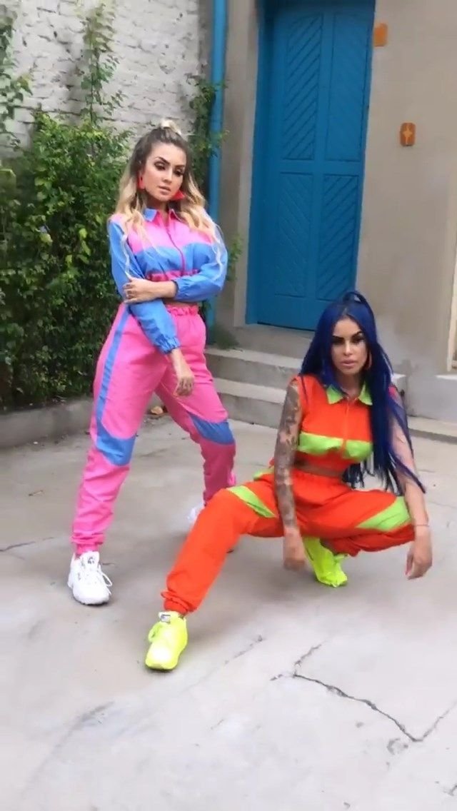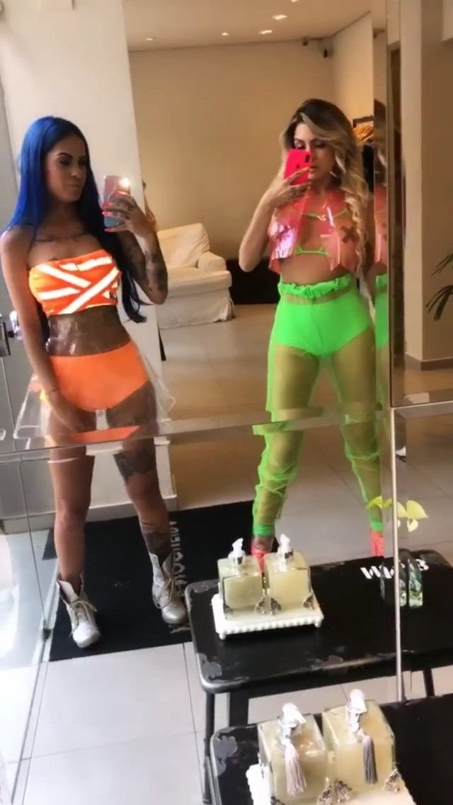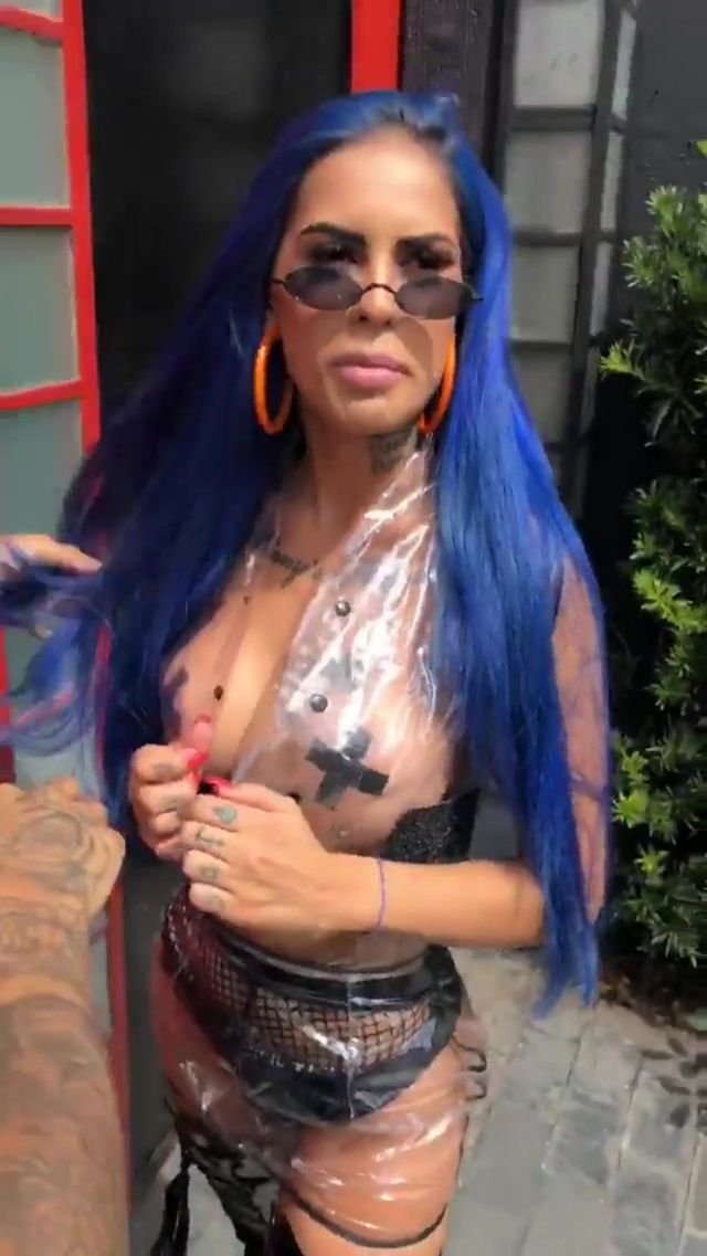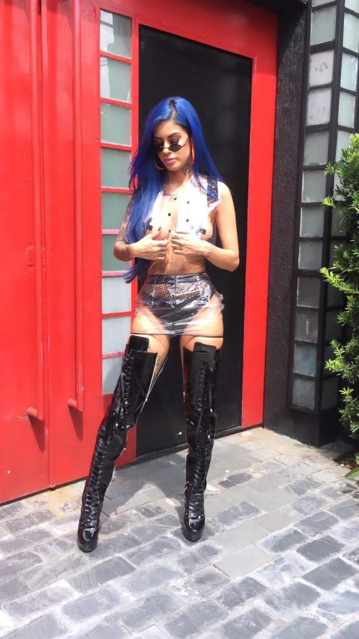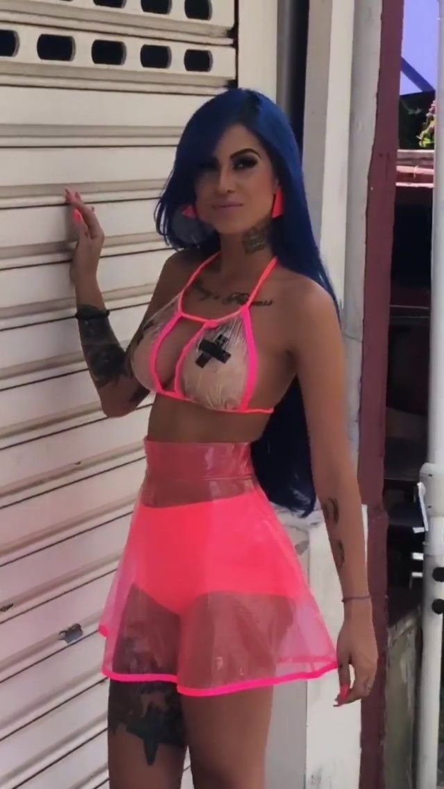 La cantante brasiliana Tati Zaqui ha condiviso alcune foto e video sexy e topless (coperti) di un nuovo servizio fotografico con MC Savinon – Instagram, 14/01/2019.