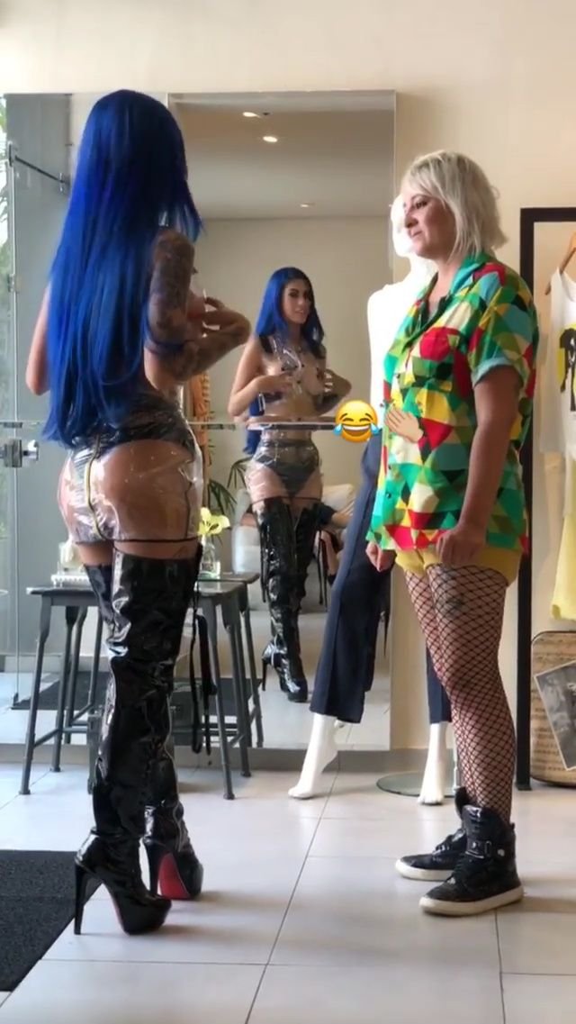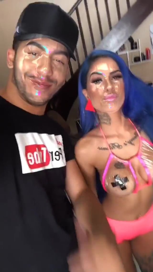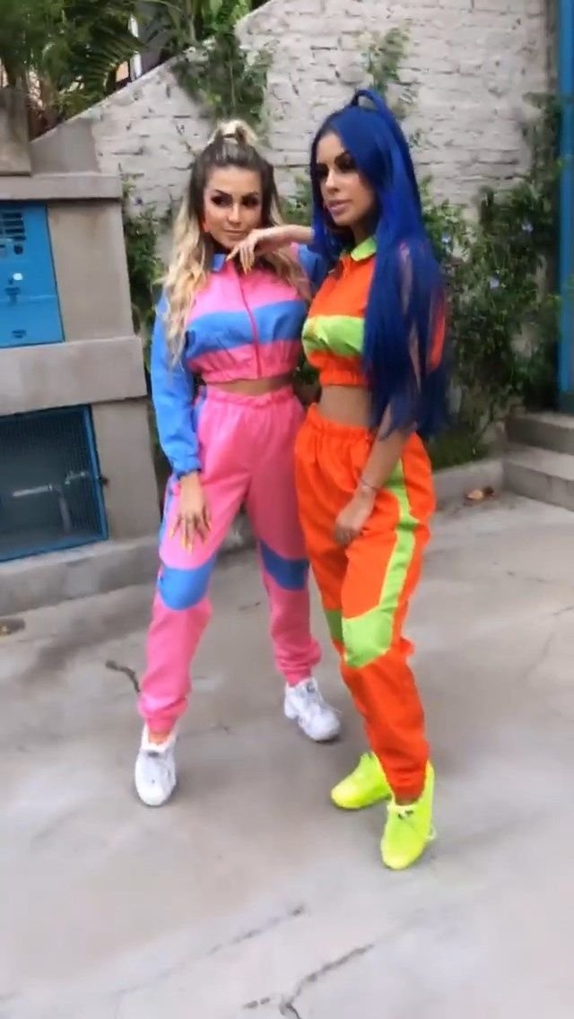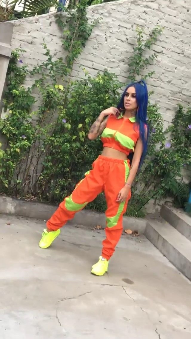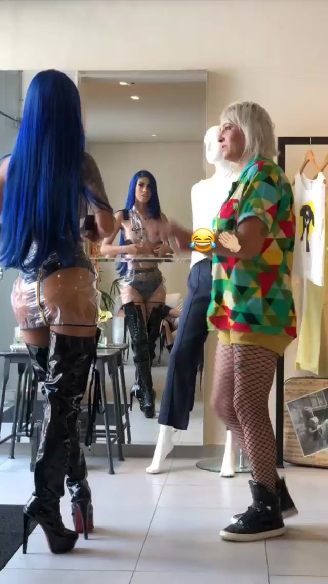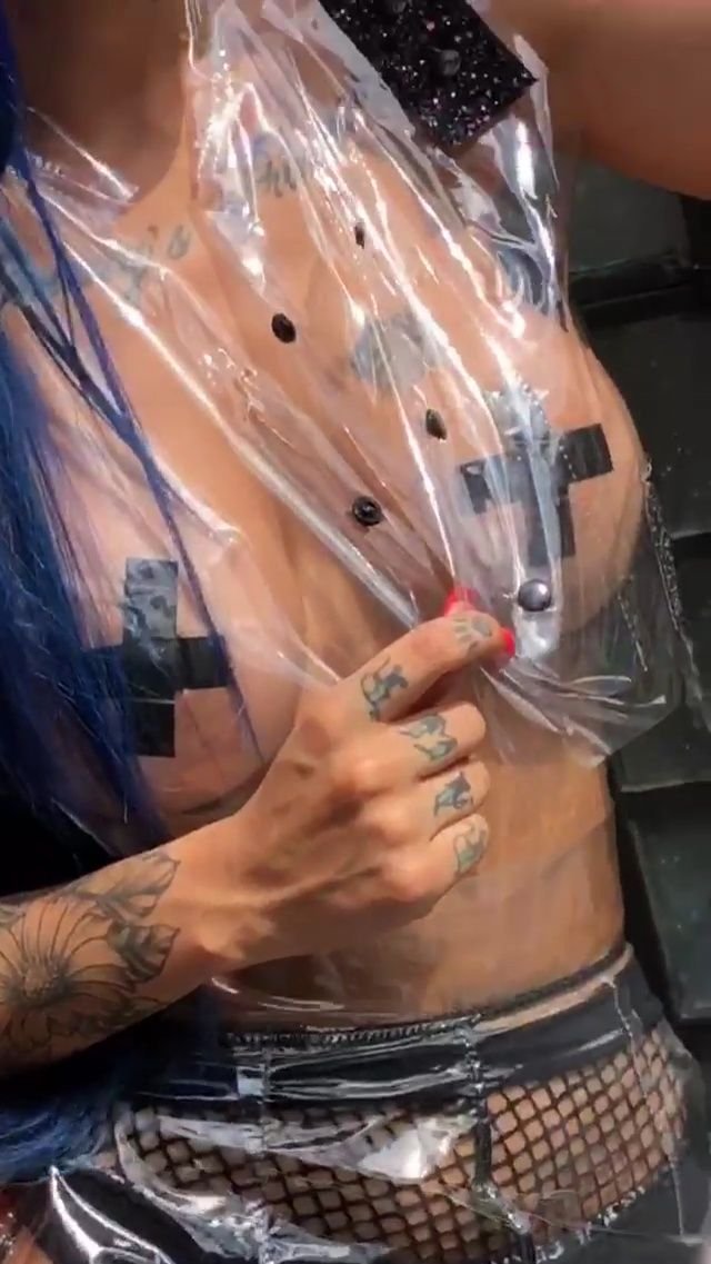 La cantante brasiliana Tati Zaqui ha condiviso alcune foto e video sexy e topless (coperti) di un nuovo servizio fotografico con MC Savinon – Instagram, 14/01/2019.