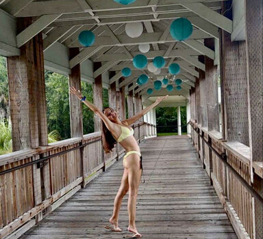 È un abbigliamento piuttosto di cattivo gusto, ma ha la figura e le gambe per portarlo, quindi perché no (anche se, sorprendentemente, qualcuno qui ha cercato di convincere tutti che aveva gambe nella media)? È una donna bellissima, senza dubbio.
