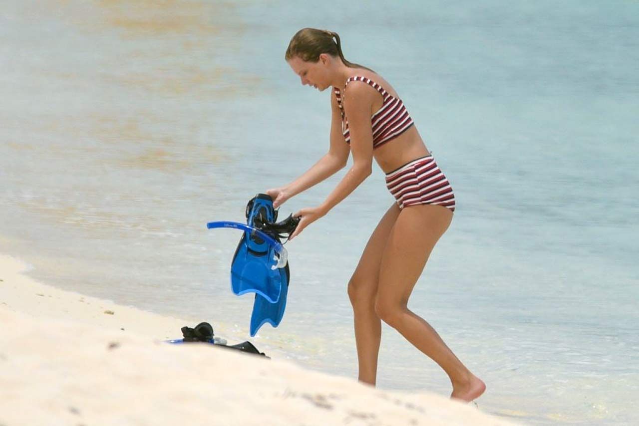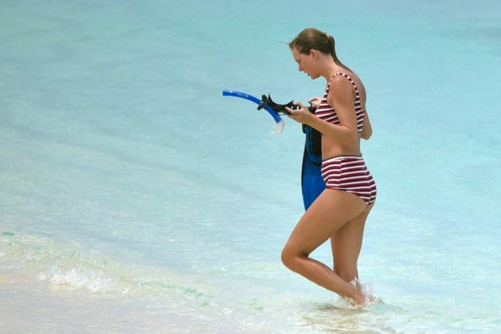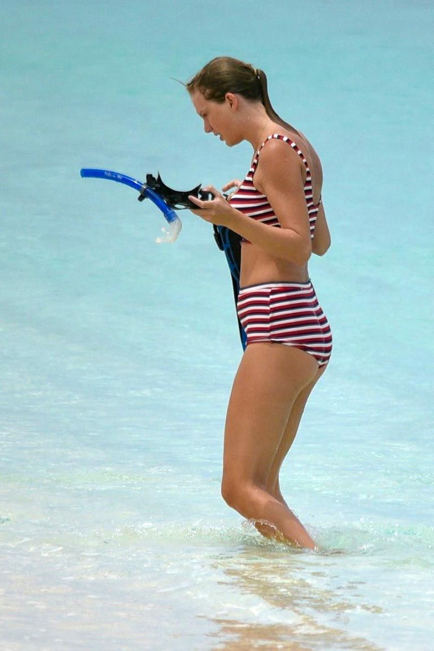 While her rivals are trying to be sexy all the time, this singer doesn’t give a fuck! Ahaha. Taylor Swift’s bikini pics will show you how creepy she looks when cameras are off, and she is on her own! Paparazzi caught Taylor and her boyfriend Joe Alvin enjoying the sunny day and swimming on the Islands. Taylor is someone who likes to hide her personal and sex life from the public, so this paparazzi gallery with some skin pics is an absolute fortune to us! Enjoy watching flat ass, romantic looks, granny bikini, and wasted woman’s body potential!