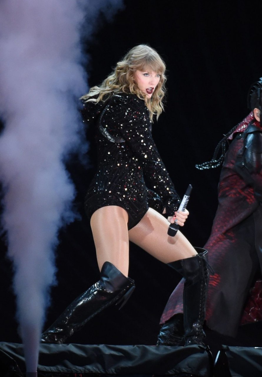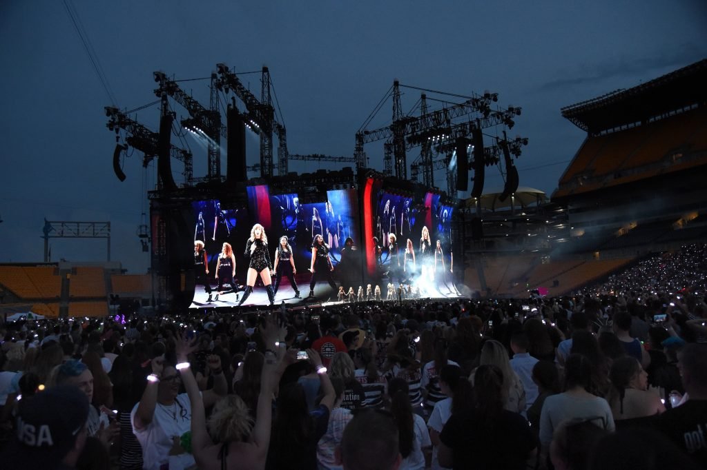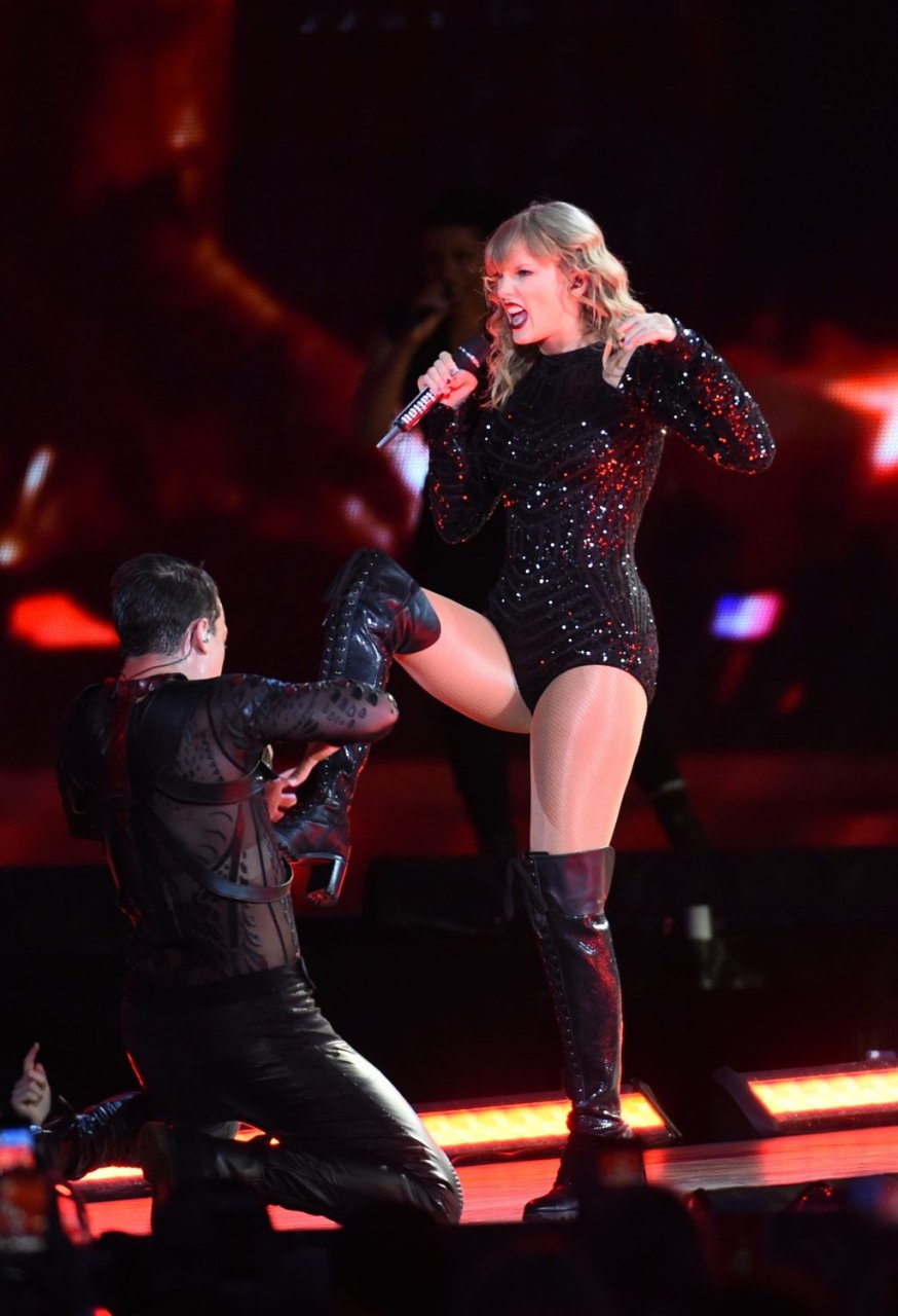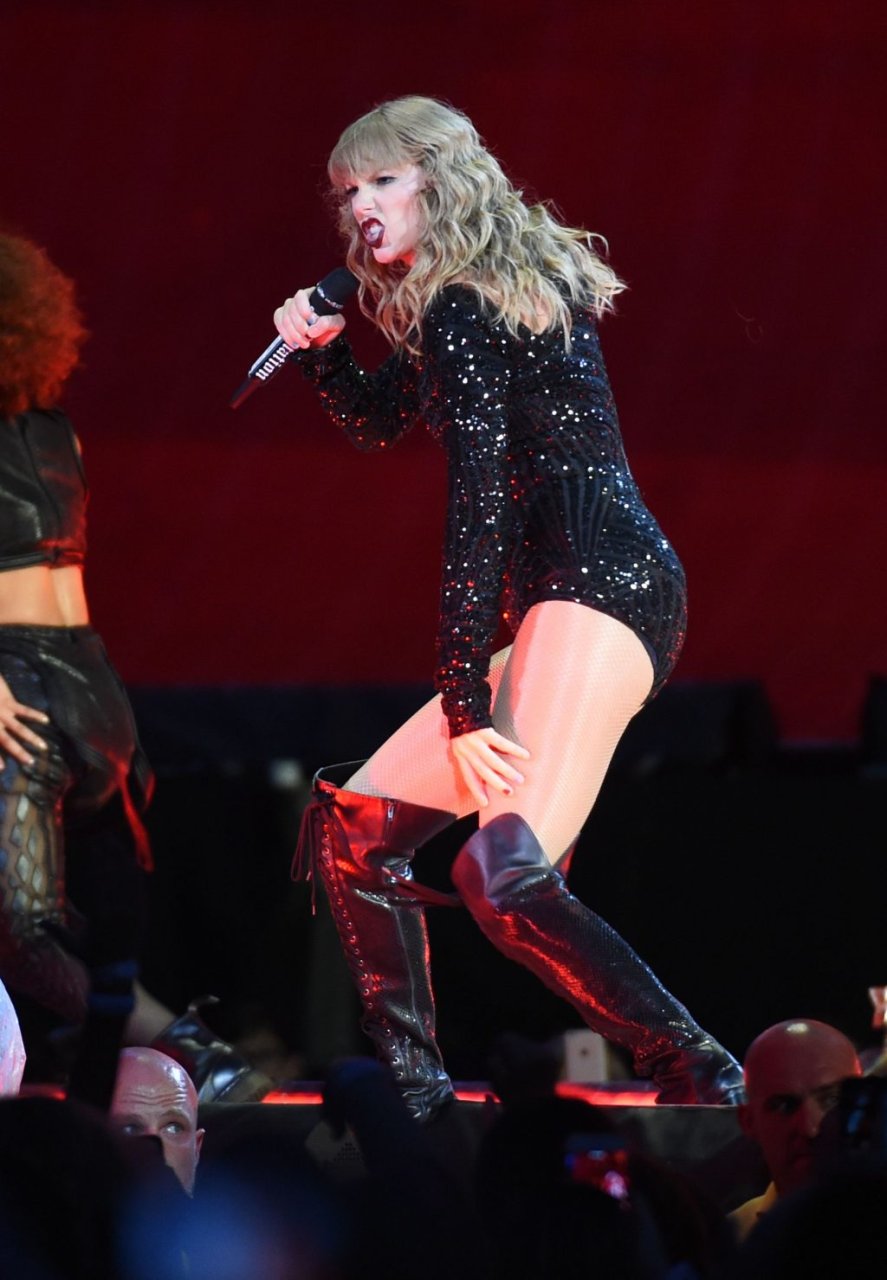 La cantante americana Taylor Swift si esibisce al concerto presso Heinz Field, Pittsburgh, 08/07/2018. La superstar di 28 anni indossava il suo body nero “classico” e mostrava alcune pose erotiche sul palco.