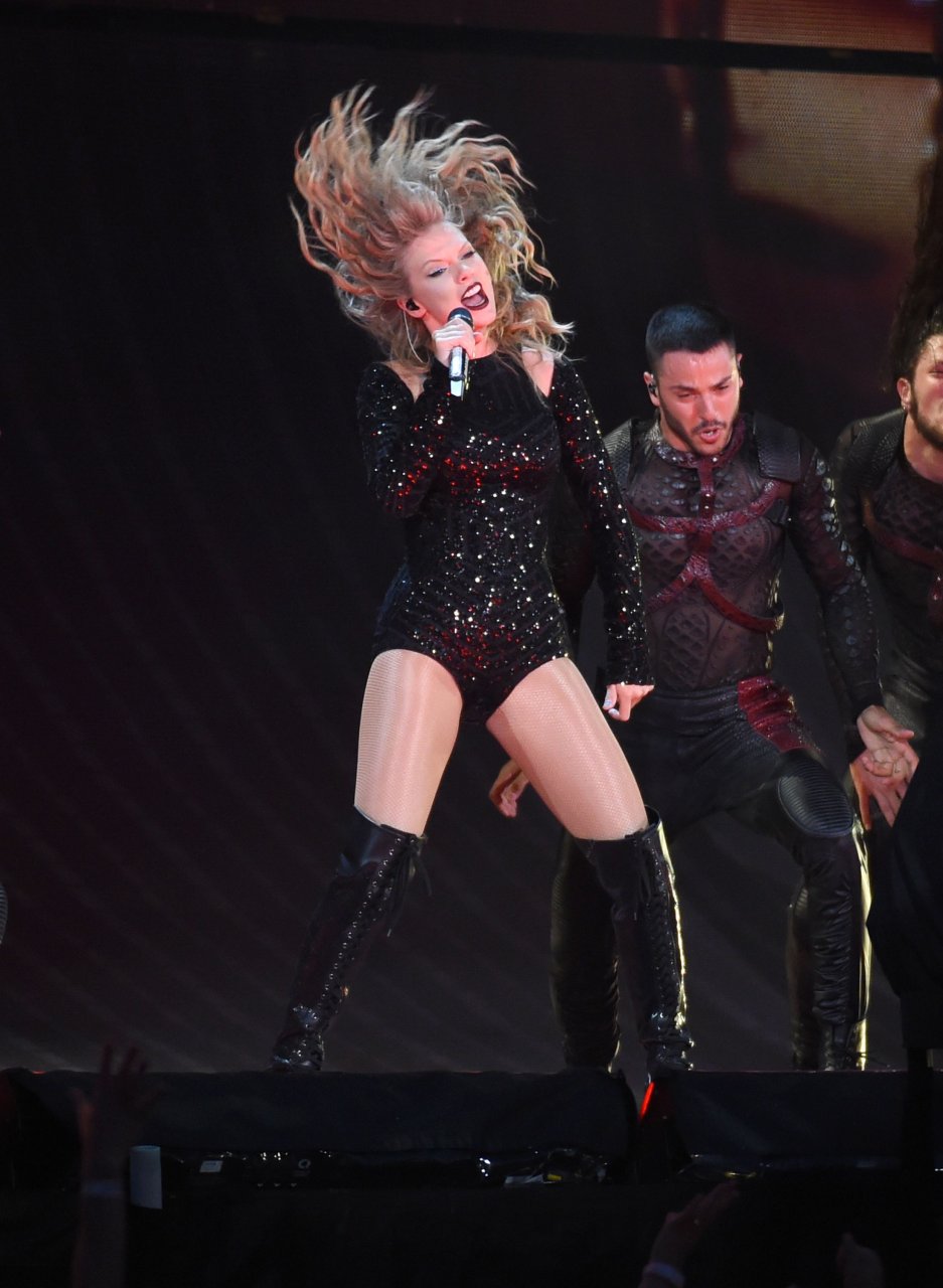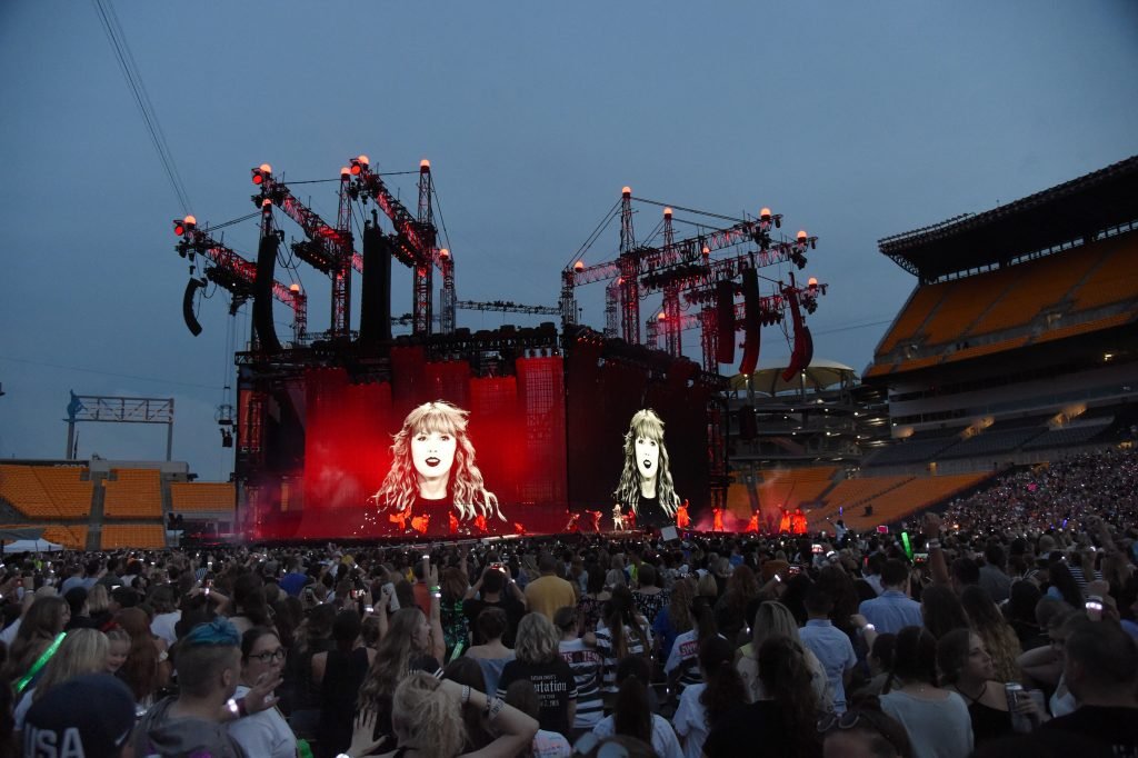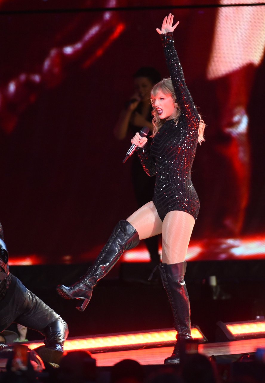 La cantante americana Taylor Swift si esibisce al concerto presso Heinz Field, Pittsburgh, 08/07/2018. La superstar di 28 anni indossava il suo body nero “classico” e mostrava alcune pose erotiche sul palco.