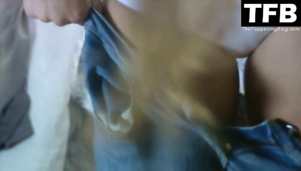 Teresa Palmer, famosa per ‘The Grudge 2‘, indossa un maglione verde e mutandine bianche mentre cammina per una stanza e poi si mette un paio di jeans blu, offrendoci una vista ravvicinata delle sue mutandine e del camel toe con il contorno delle sue labbra visibile.