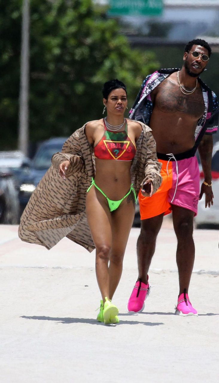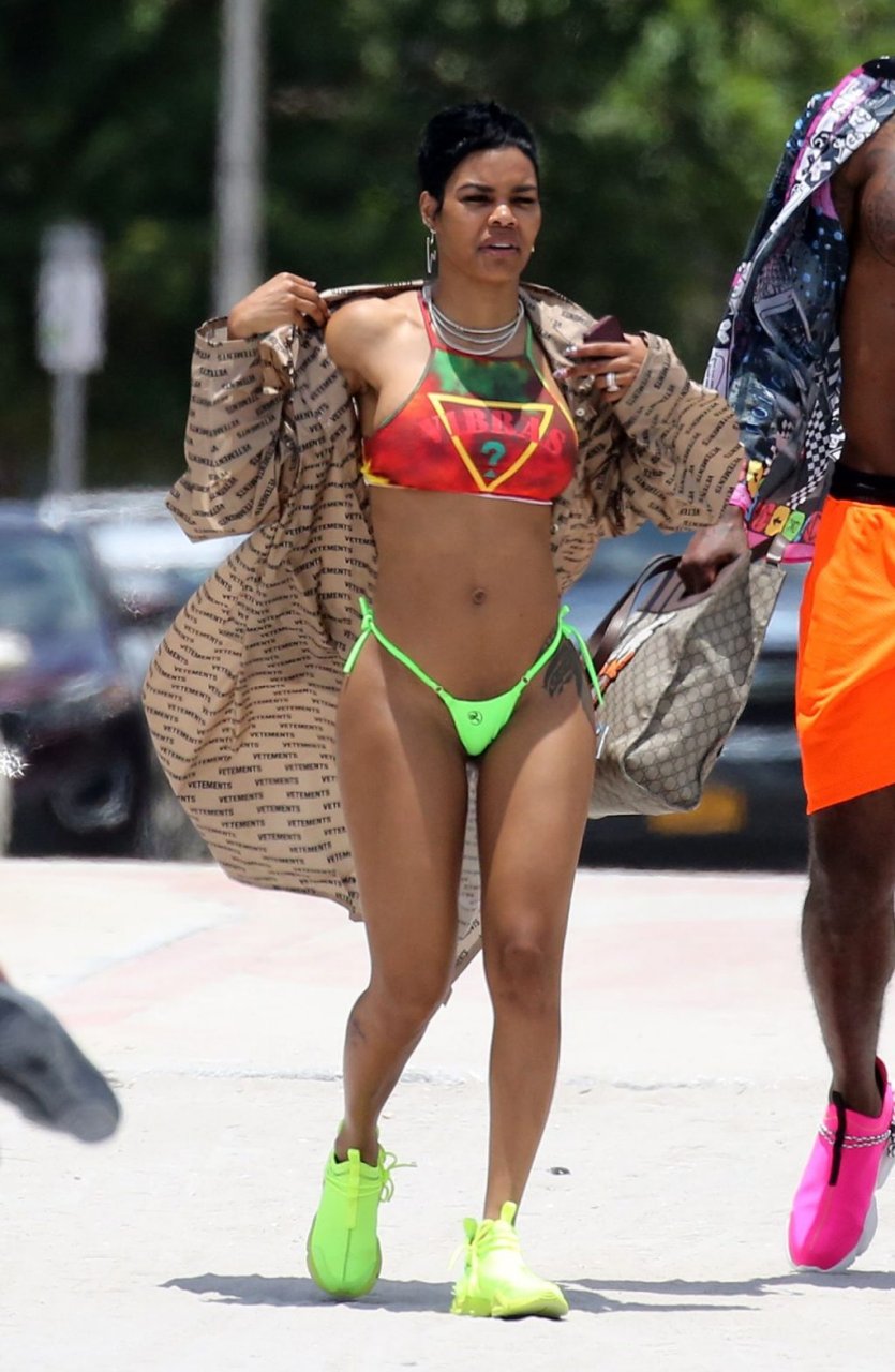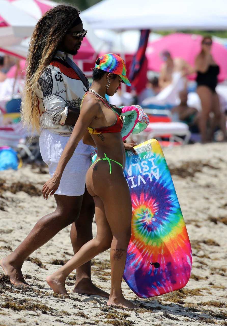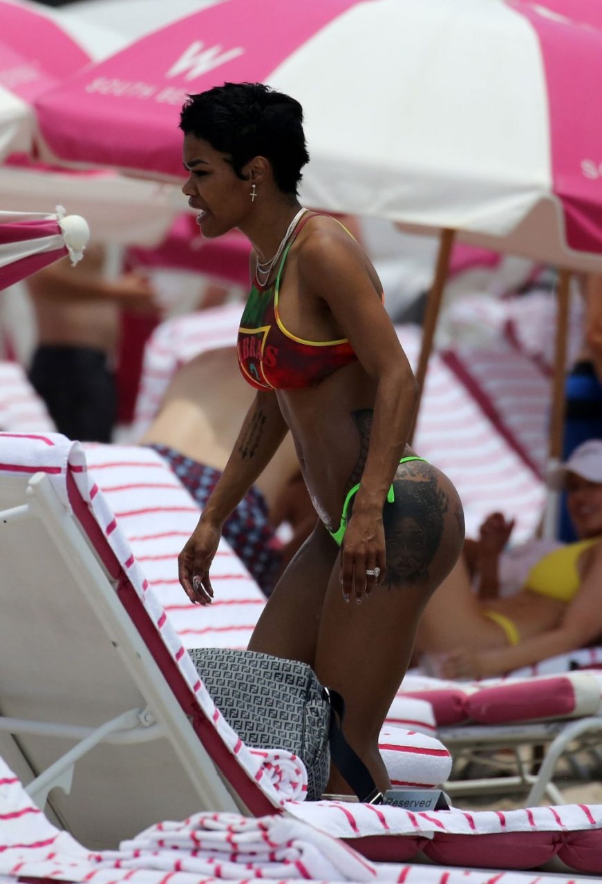 Singer Teyana Taylor indossa un minuscolo bikini abbinato in modo misto mentre si gode il 4 luglio con suo marito, il giocatore NBA Iman Shumpert, e la figlia a Miami Beach, 04/07/2019.