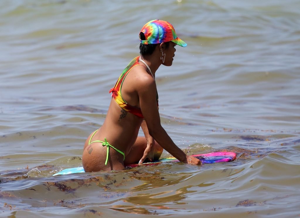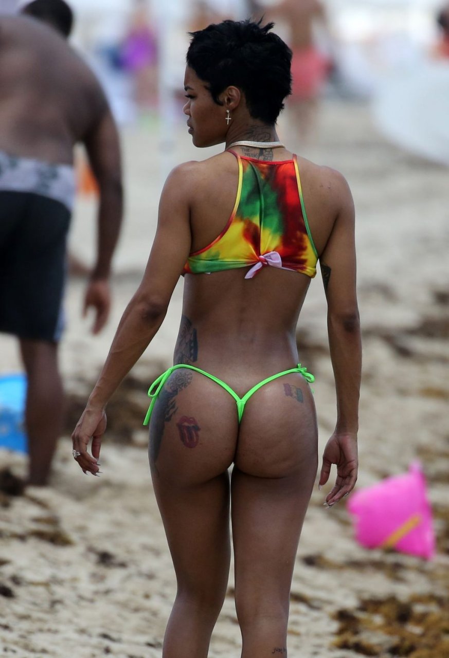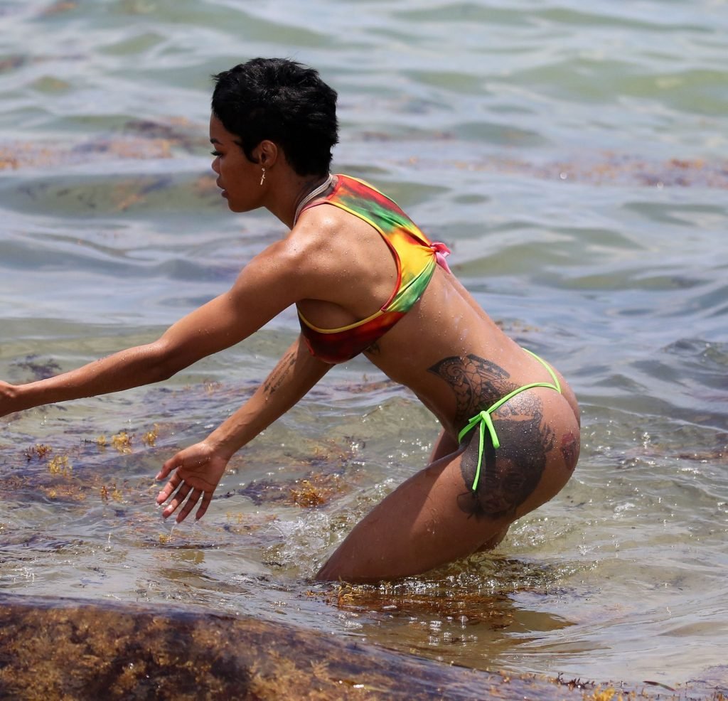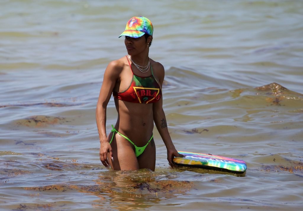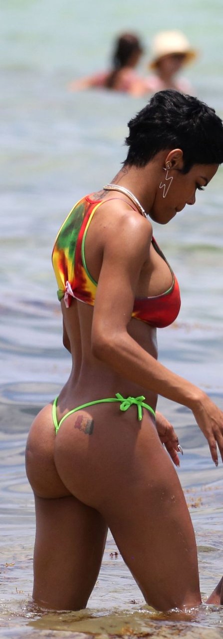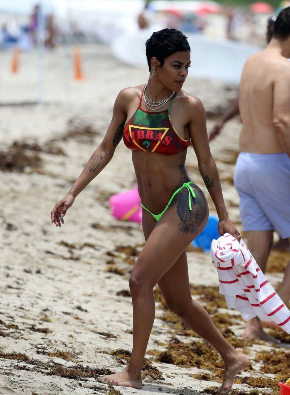Singer Teyana Taylor indossa un minuscolo bikini abbinato in modo misto mentre si gode il 4 luglio con suo marito, il giocatore NBA Iman Shumpert, e la figlia a Miami Beach, 04/07/2019.