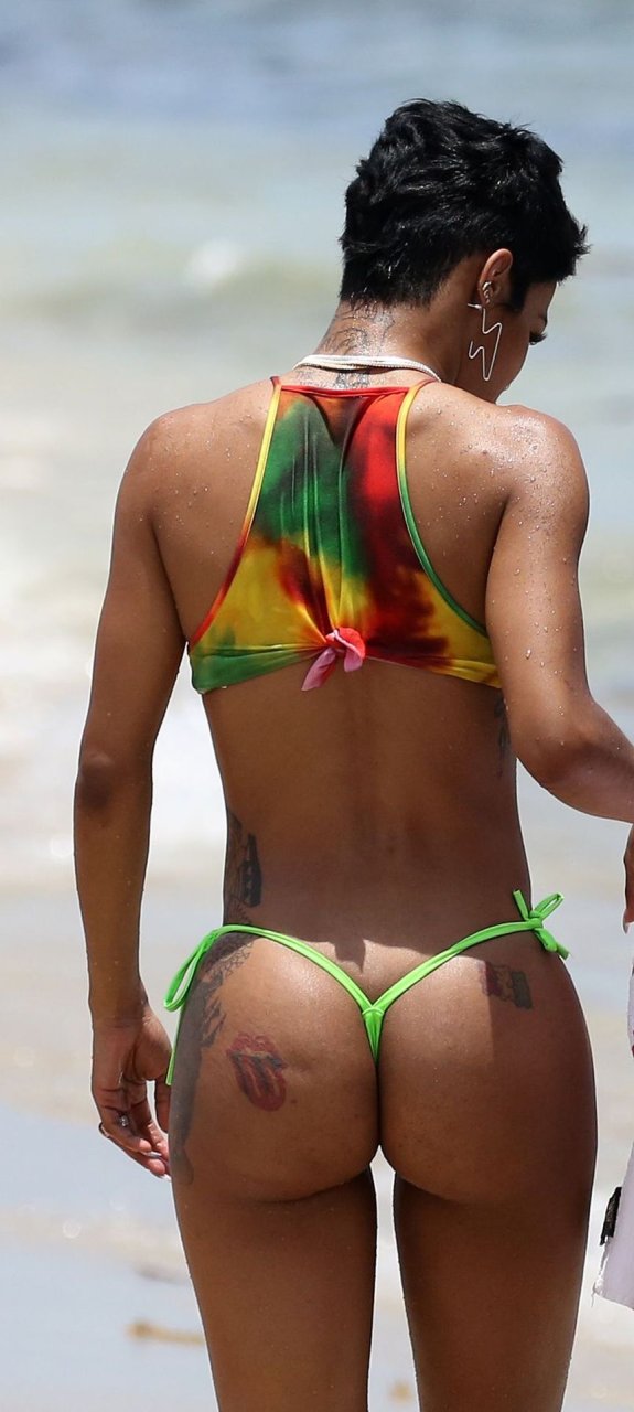 Omg, un sedere rotondo e un micro bikini meglio conosciuto come bikini brasiliano. Le sta perfettamente, mi piacerebbe vedere più foto di lei in spiaggia, molto sexy, mi ha eccitato!!