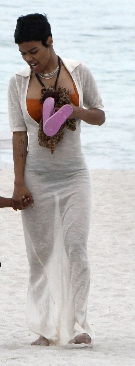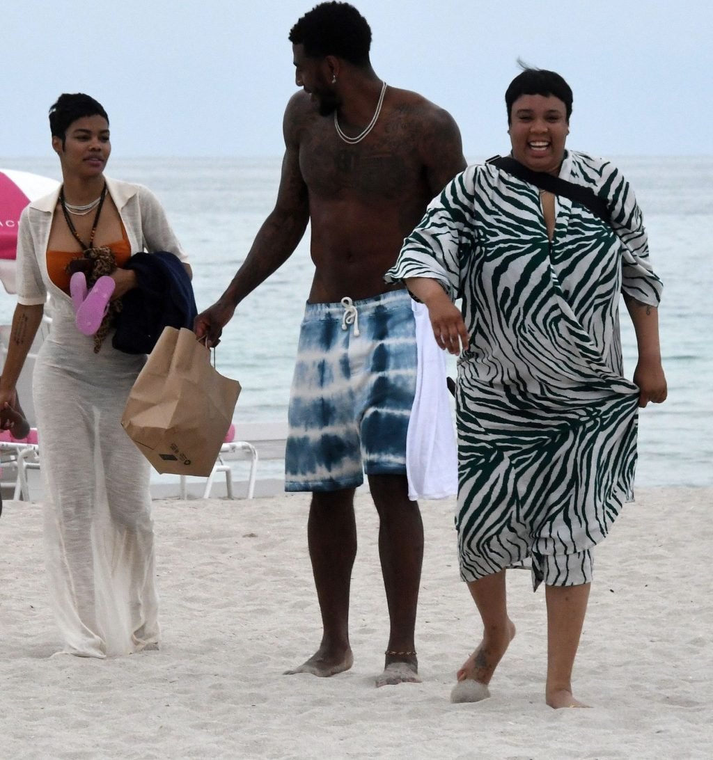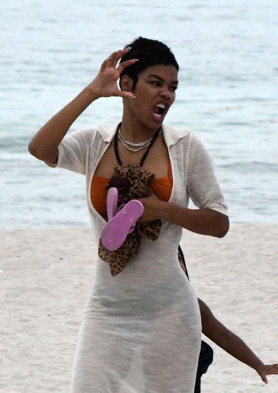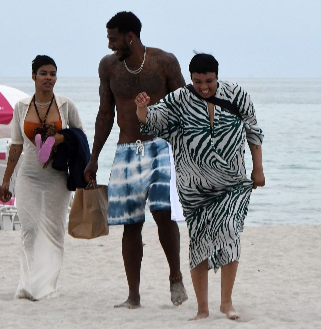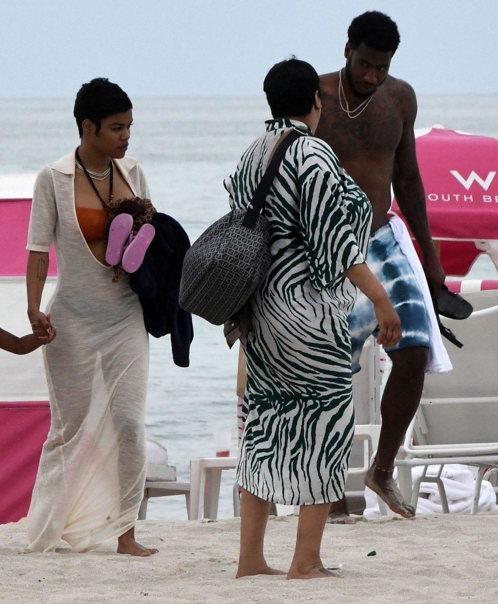 Cantante, attrice, ballerina, modella Teyana Taylor si gode una giornata in famiglia sulla spiaggia con suo marito, il giocatore NBA degli Houston Rockets Iman Shumpert, e la figlia a Miami Beach, Florida, 03/07/2019.