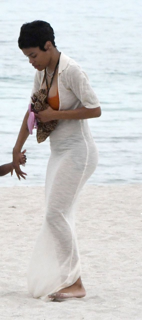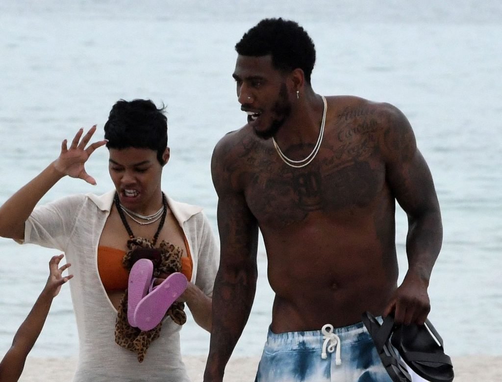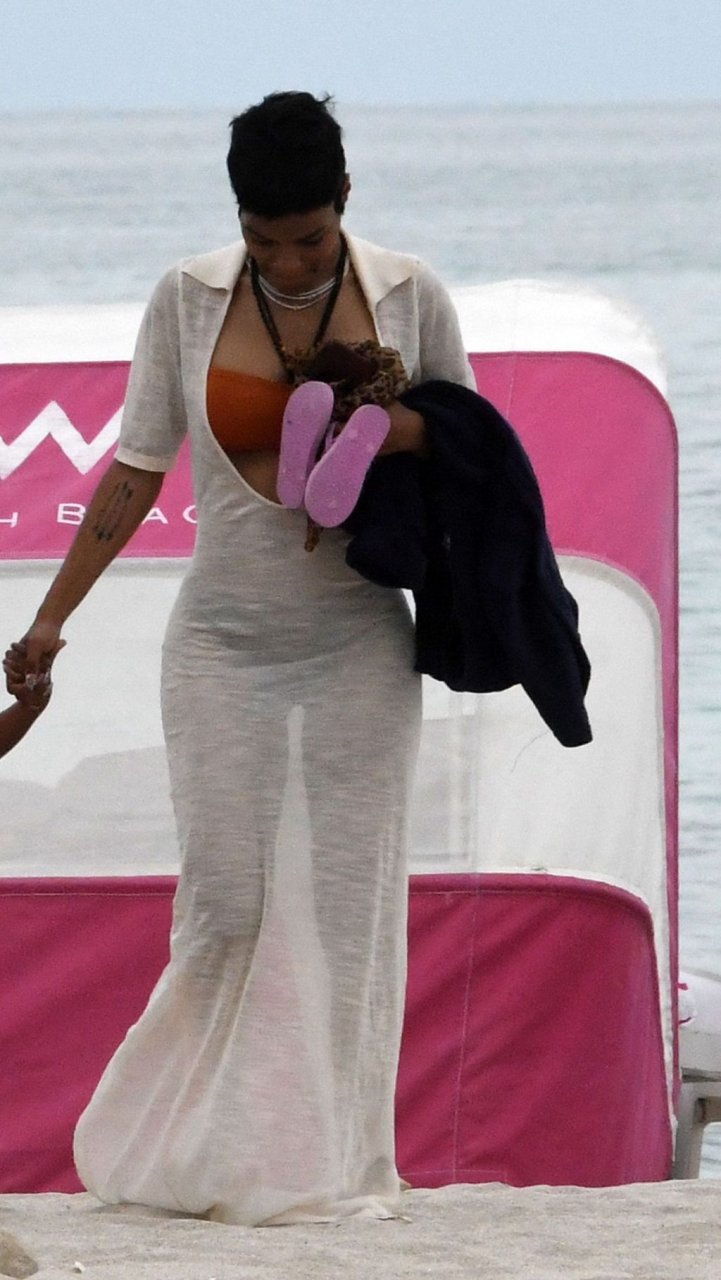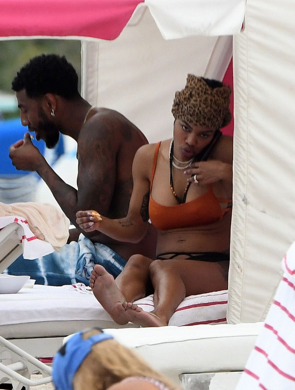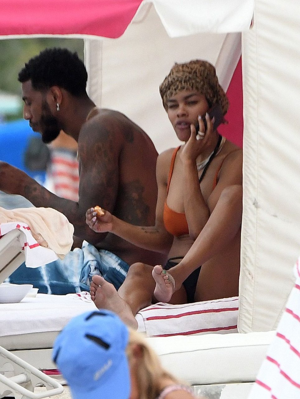 Cantante, attrice, ballerina, modella Teyana Taylor si gode una giornata in famiglia sulla spiaggia con suo marito, il giocatore NBA degli Houston Rockets Iman Shumpert, e la figlia a Miami Beach, Florida, 03/07/2019.