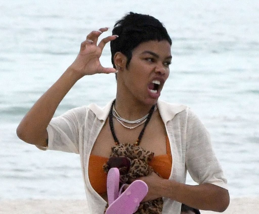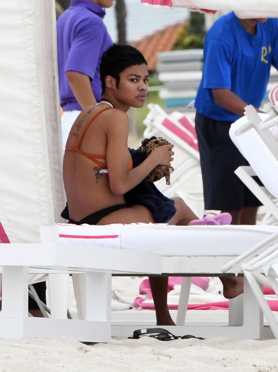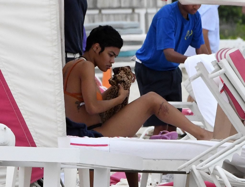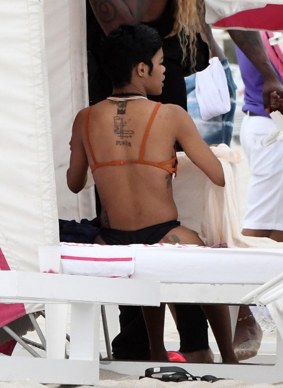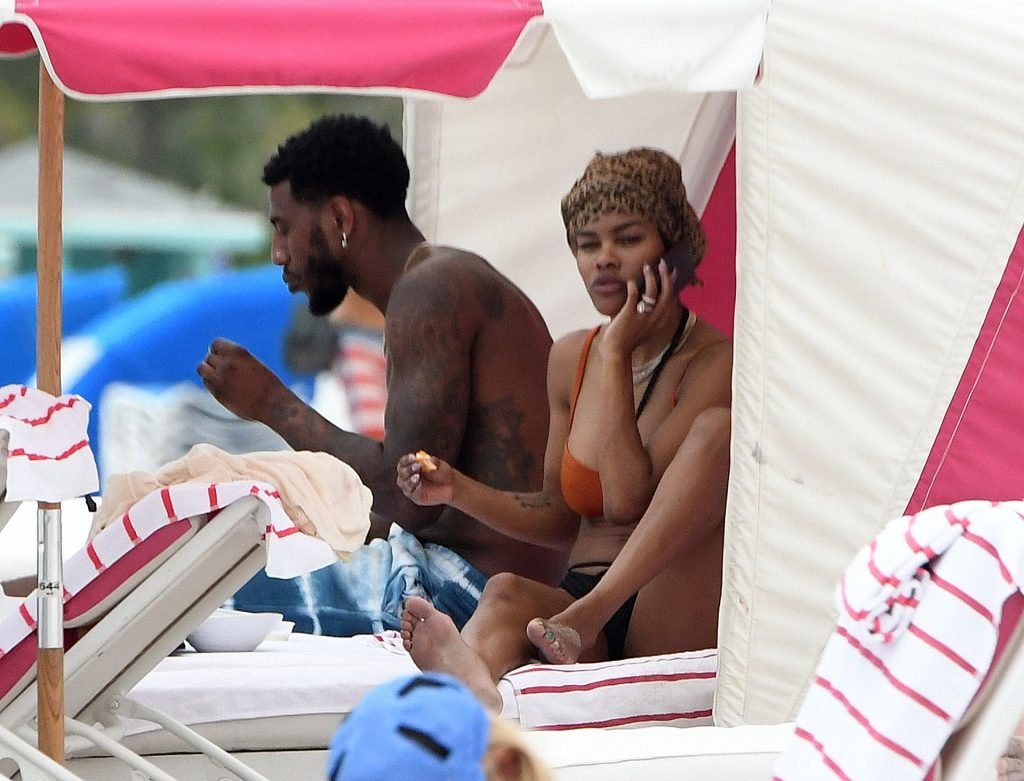 Cantante, attrice, ballerina, modella Teyana Taylor si gode una giornata in famiglia sulla spiaggia con suo marito, il giocatore NBA degli Houston Rockets Iman Shumpert, e la figlia a Miami Beach, Florida, 03/07/2019.
