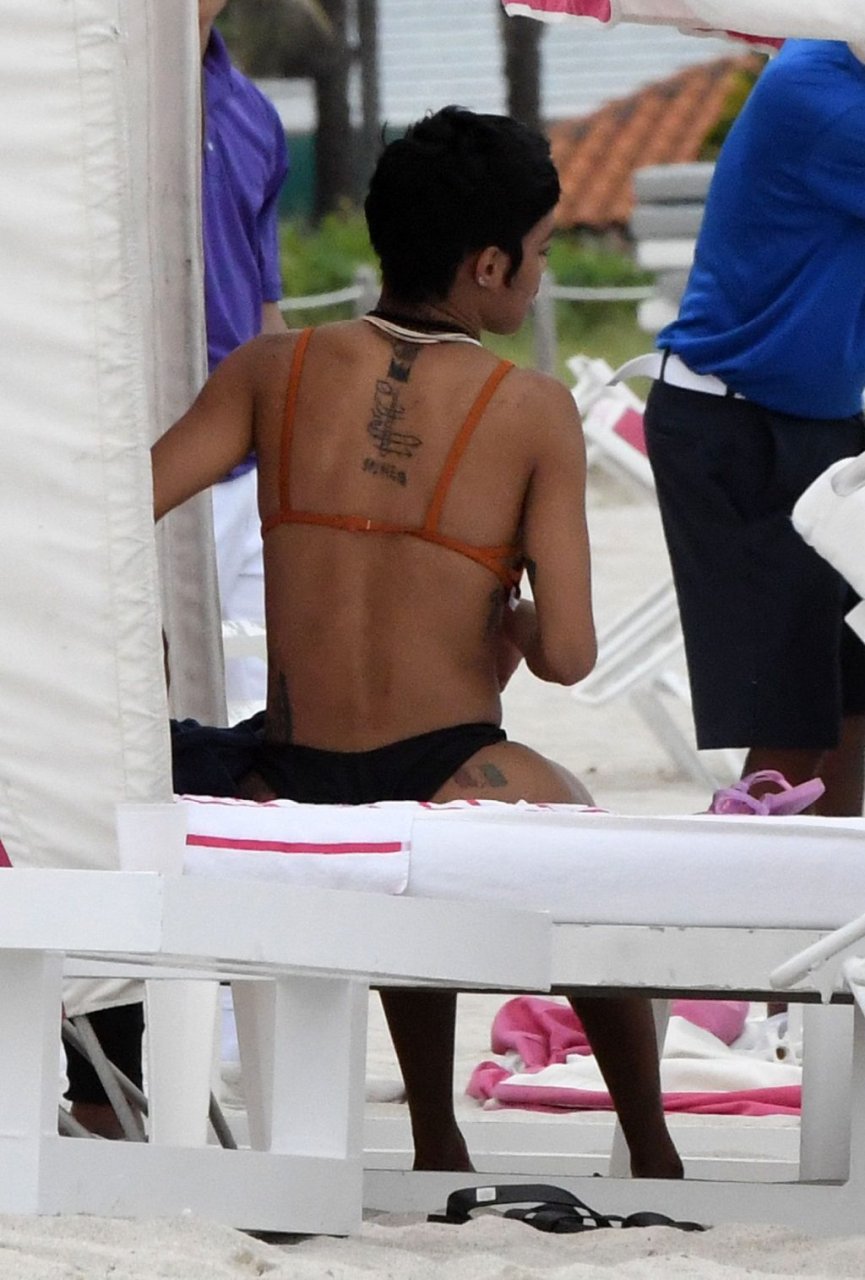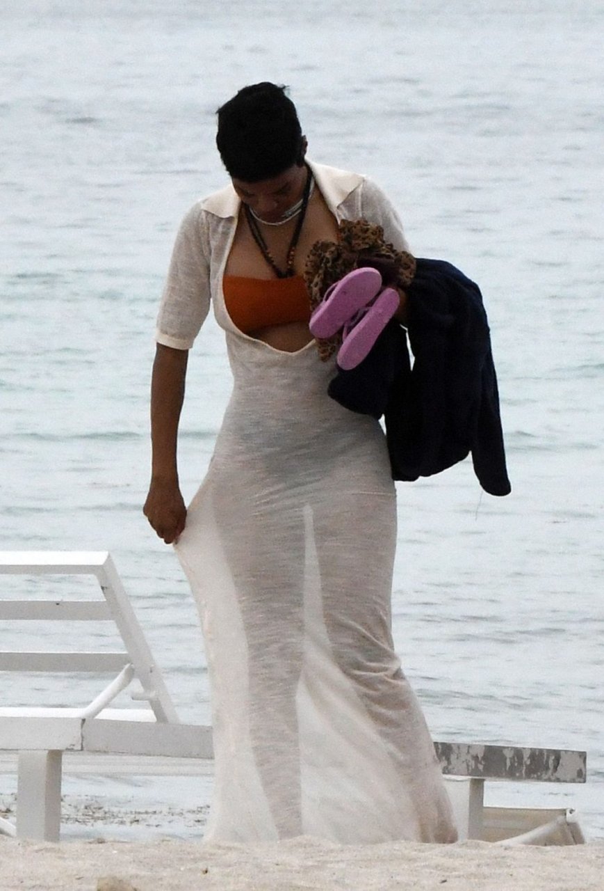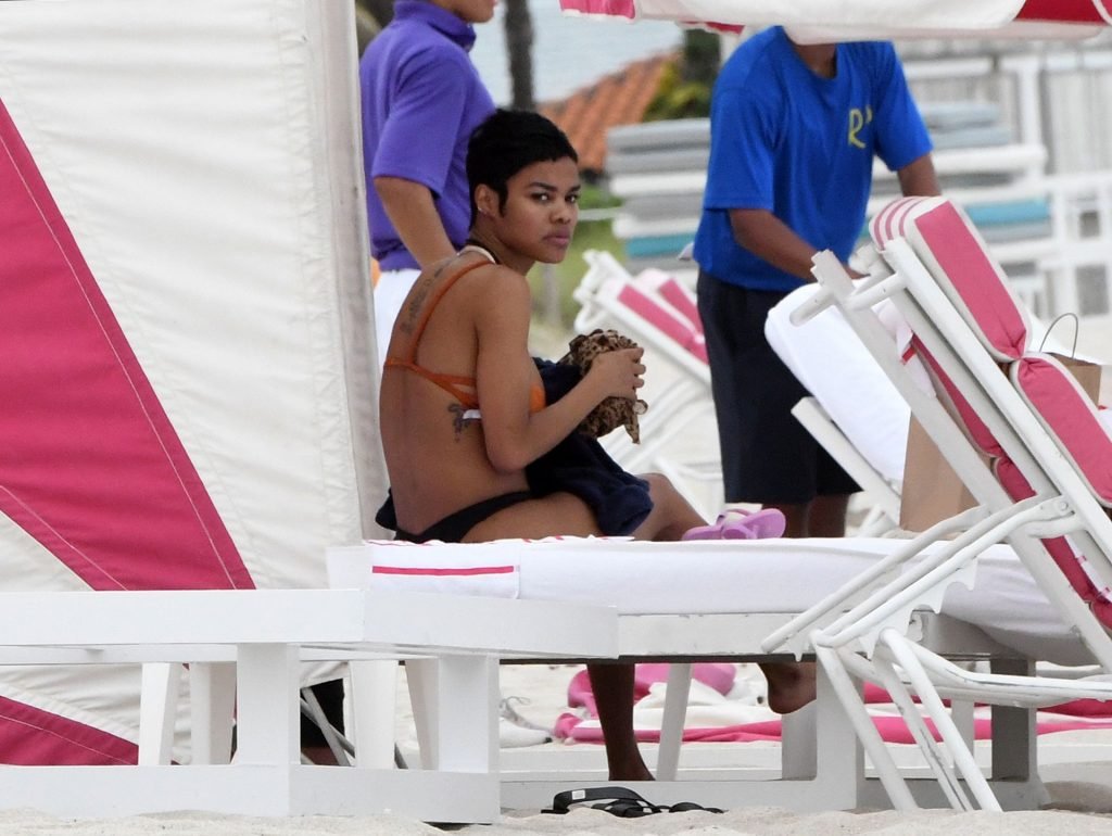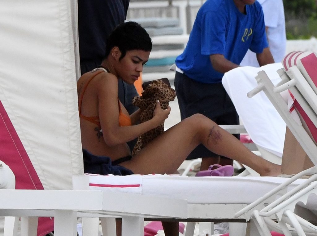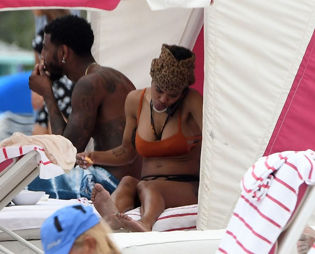 Cantante, attrice, ballerina, modella Teyana Taylor si gode una giornata in famiglia sulla spiaggia con suo marito, il giocatore NBA degli Houston Rockets Iman Shumpert, e la figlia a Miami Beach, Florida, 03/07/2019.