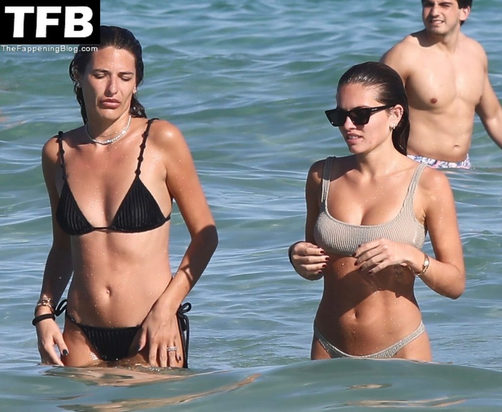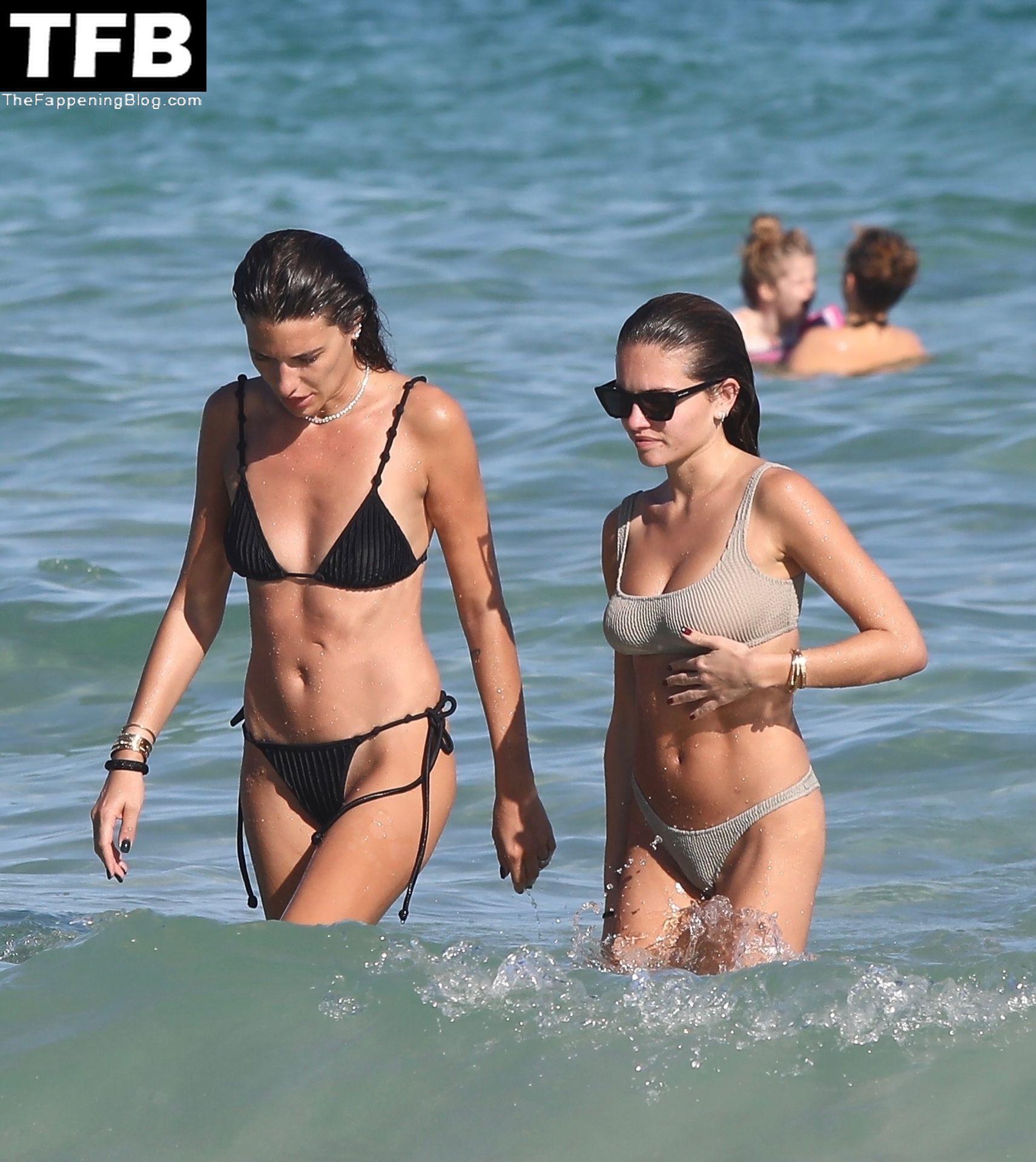 La modella francese Thylane Blondeau è accompagnata da un’amica per un tuffo a Miami Beach, 30/12/2021. L’ex “Ragazza Più Bella del Mondo” indossa un bikini a due pezzi color naturale e occhiali da sole scuri durante il divertimento in riva al mare.