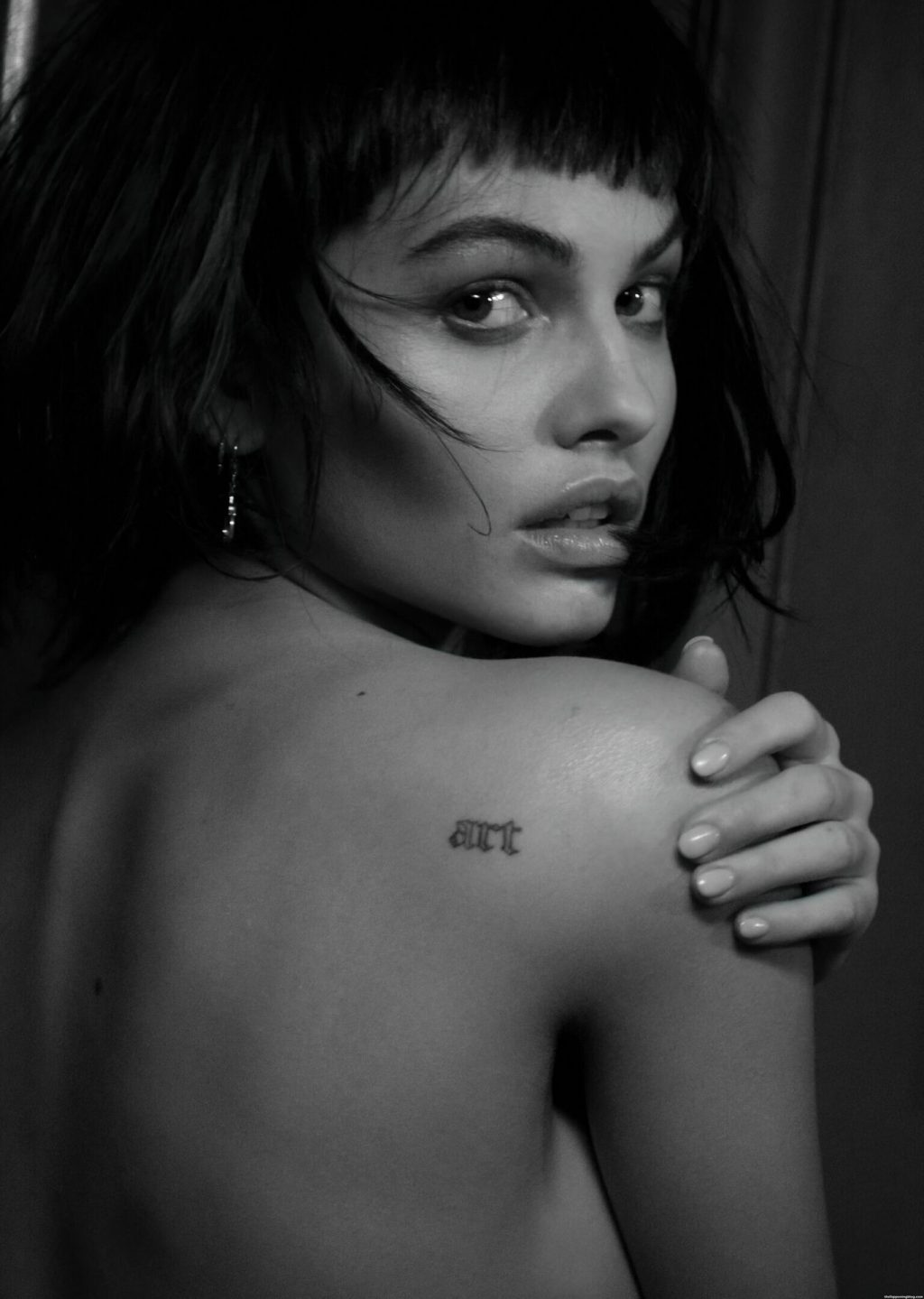 La modella Thylane Blondeau mostra un po’ di pelle, posando topless in un servizio fotografico di Penelope Caillet (2020).