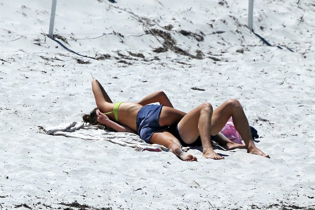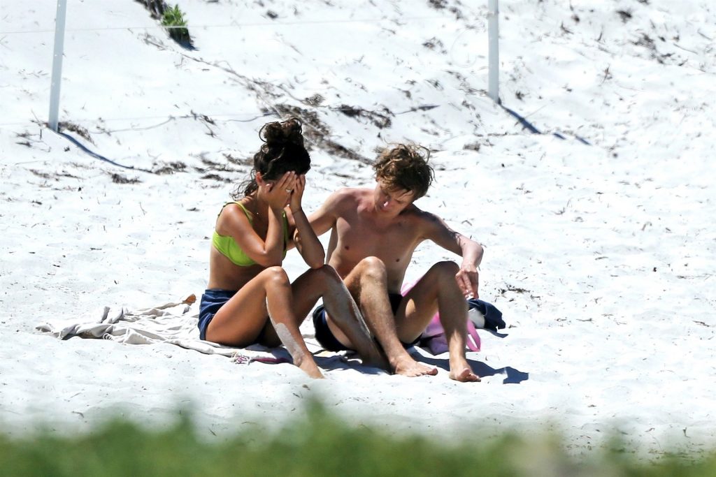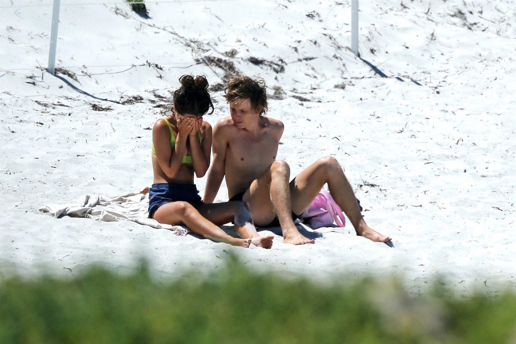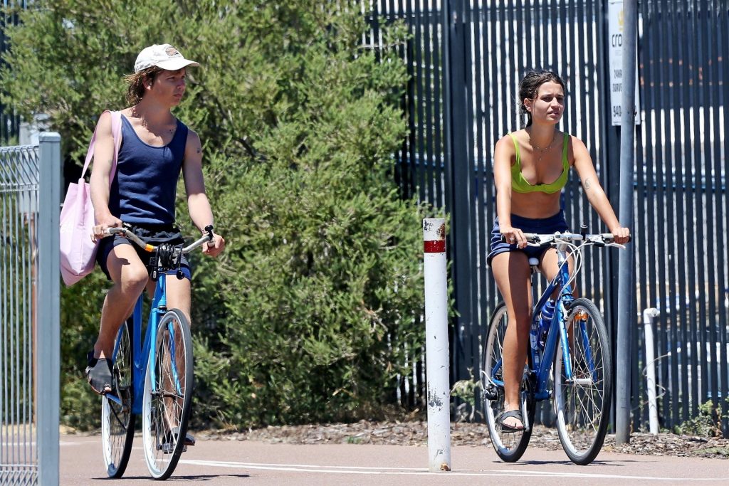 Tiger Lily Hutchence (23) è tutta innamorata del frontman dei Pond Nick Allbrook sulla spiaggia di Perth, Australia, 30/11/2019. La coppia si è spogliata fino alla biancheria intima. Tiger Lily sembrava stesse piangendo quando è arrivata in spiaggia prima che il suo ragazzo Nick la consolasse. La giovane coppia si è divertita insieme nell’acqua, sembrando molto innamorata prima di saltare sulle loro biciclette.