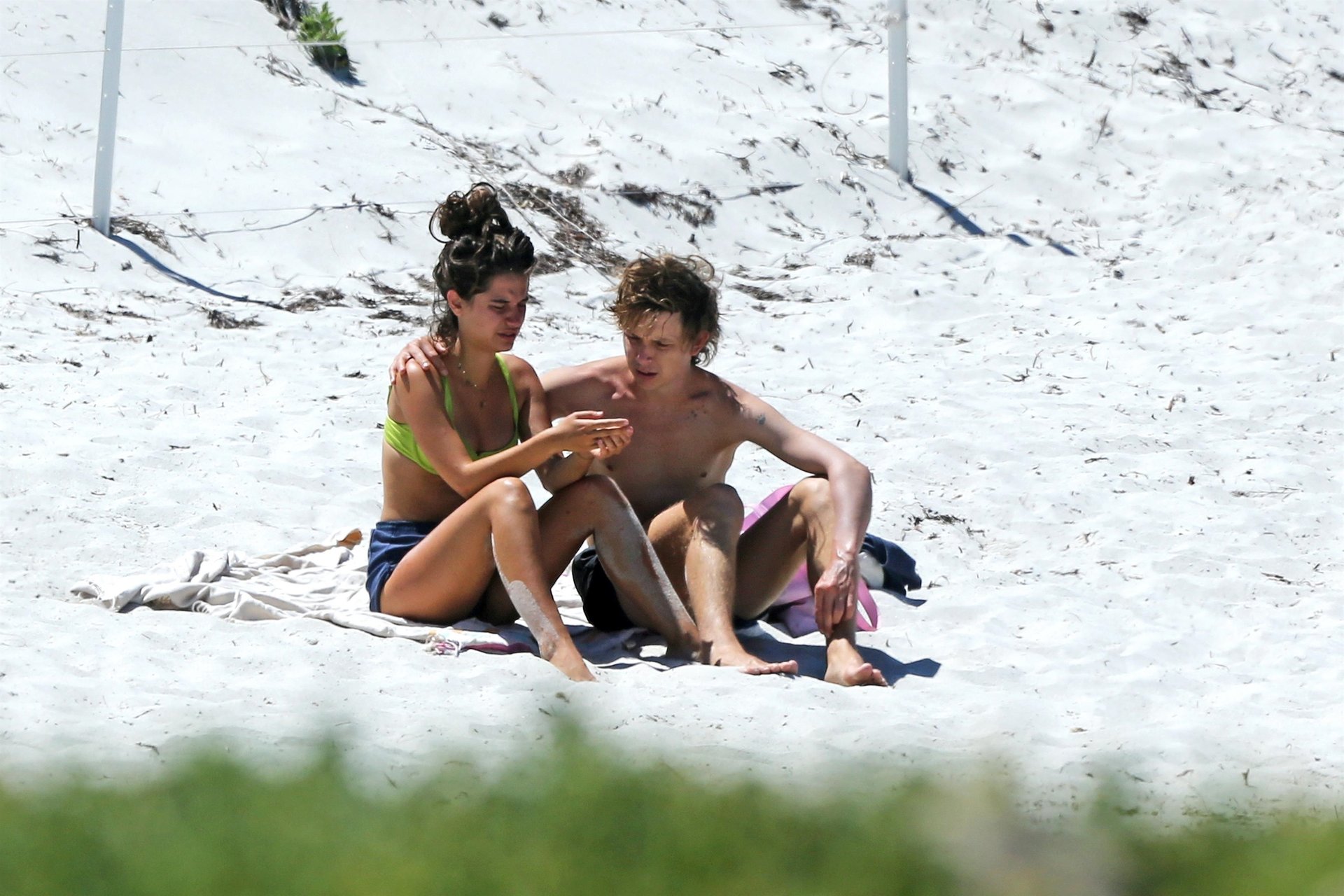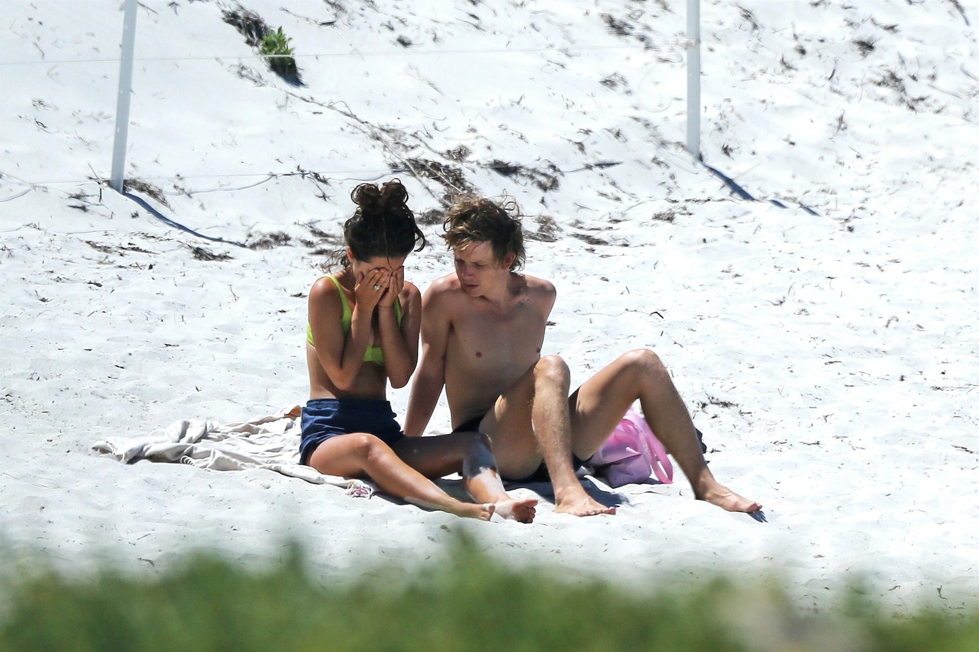 Tiger Lily Hutchence (23) è tutta innamorata del frontman dei Pond Nick Allbrook sulla spiaggia di Perth, Australia, 30/11/2019. La coppia si è spogliata fino alla biancheria intima. Tiger Lily sembrava stesse piangendo quando è arrivata in spiaggia prima che il suo ragazzo Nick la consolasse. La giovane coppia si è divertita insieme nell’acqua, sembrando molto innamorata prima di saltare sulle loro biciclette.