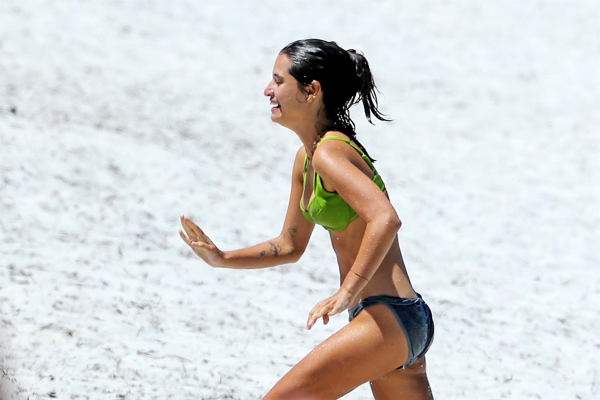 Tiger-Lily indossa qui un top da bikini molto più grande, forse perché non vuole che i suoi capezzoli escano come è successo l'ultima volta, ma le sue mutandine da bagno sono troppo larghe e deve continuare a tirarle su per evitare che la sua zona pelosa venga esposta al mondo.