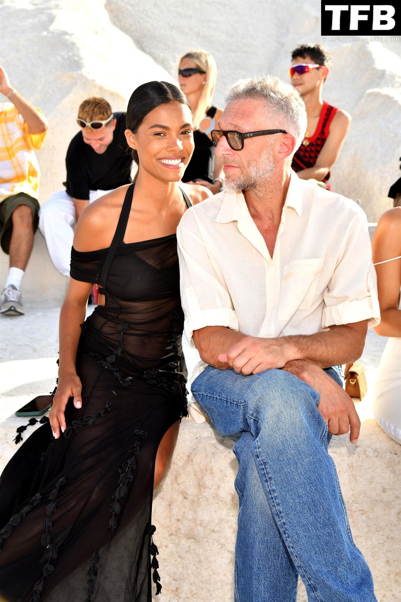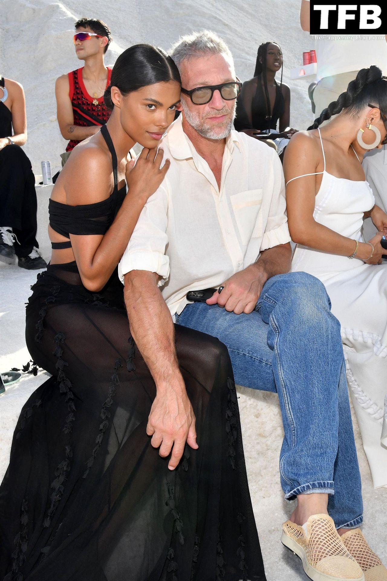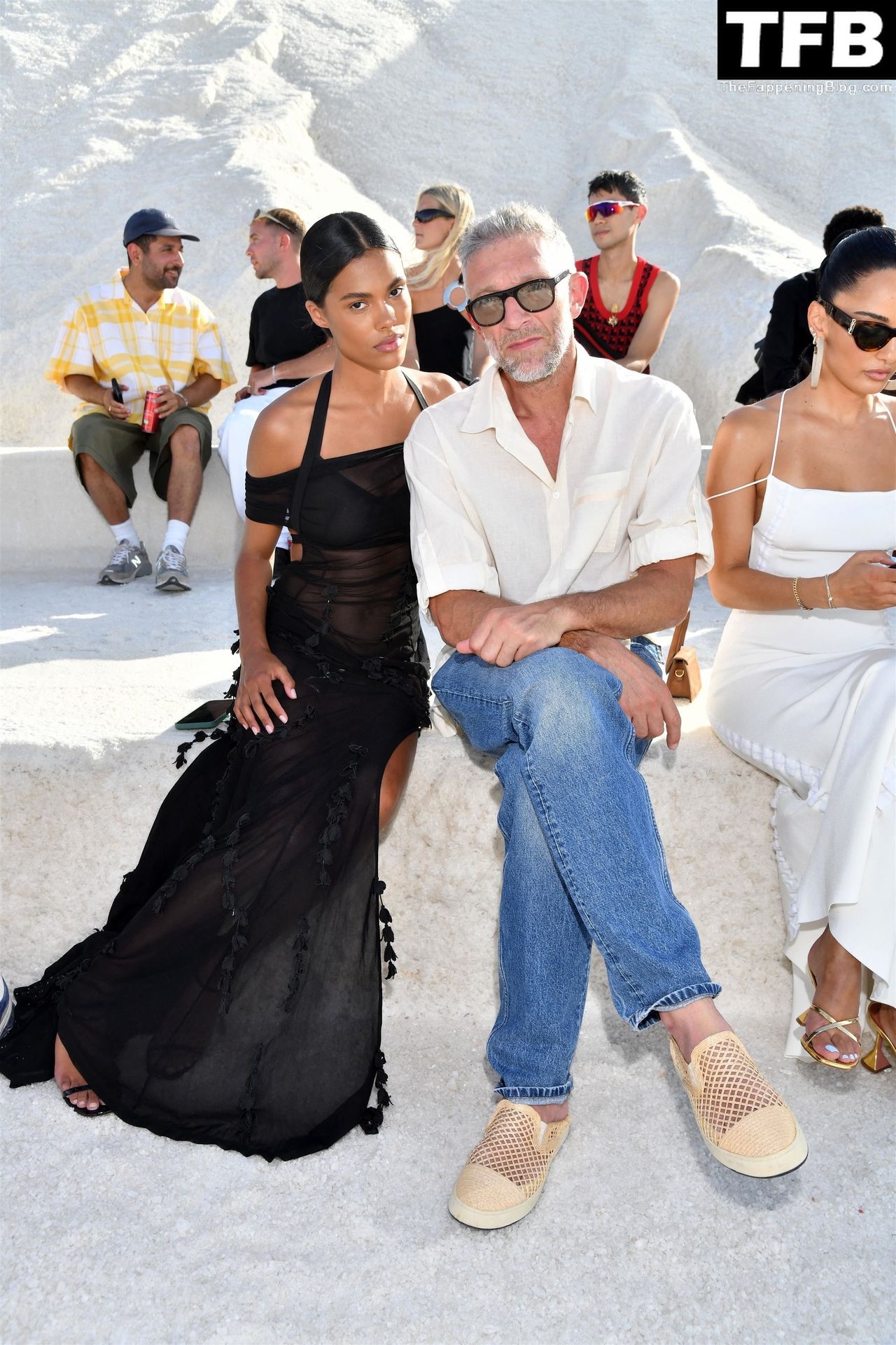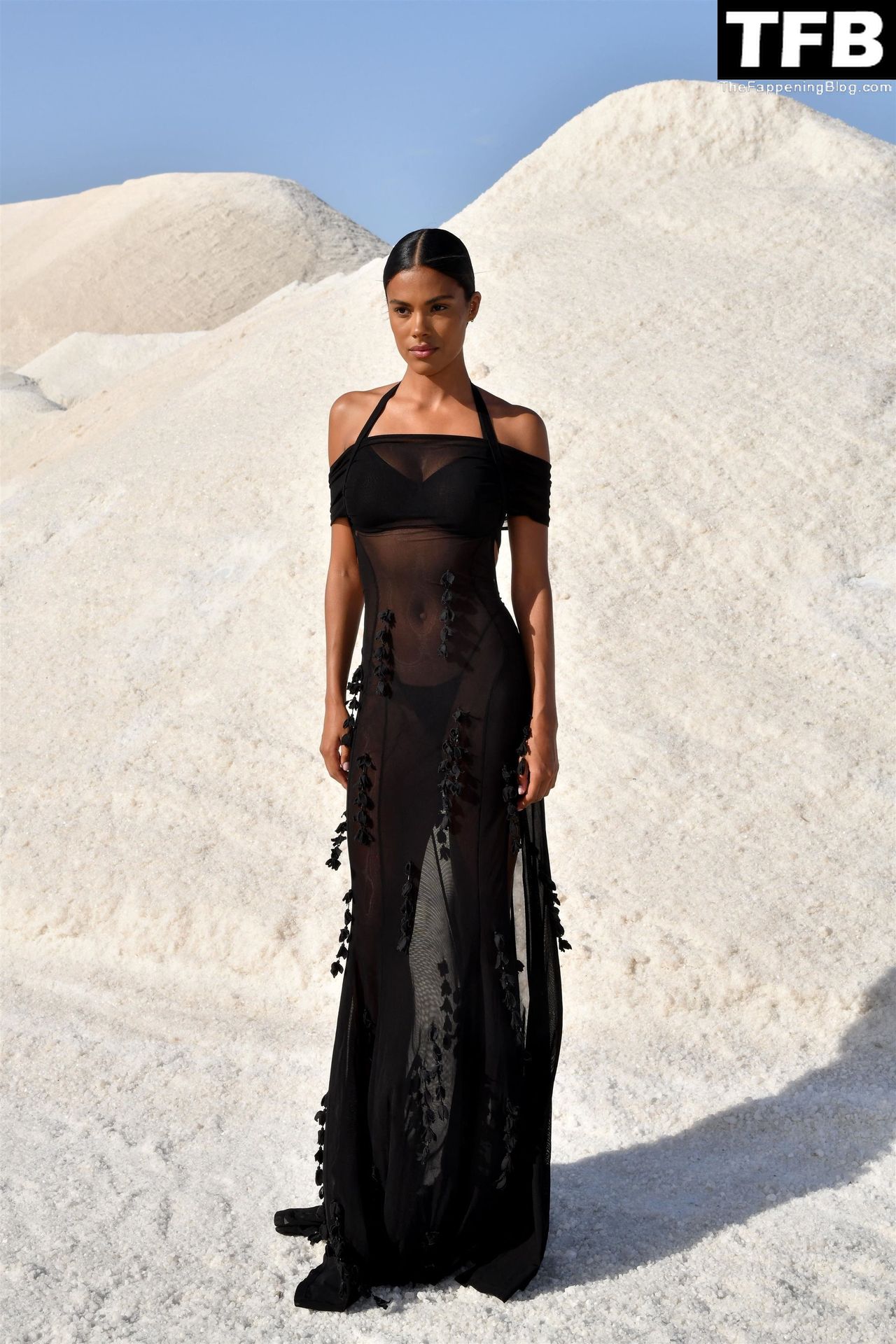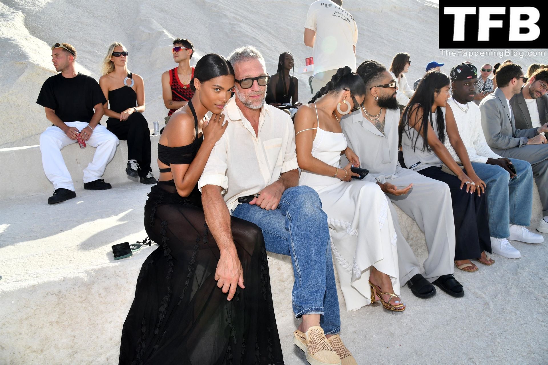 La modella Tina Kunakey partecipa alla sfilata di moda “Le Papier (La Carta)” di Jacquemus ad Arles, Francia, 27/06/2022.