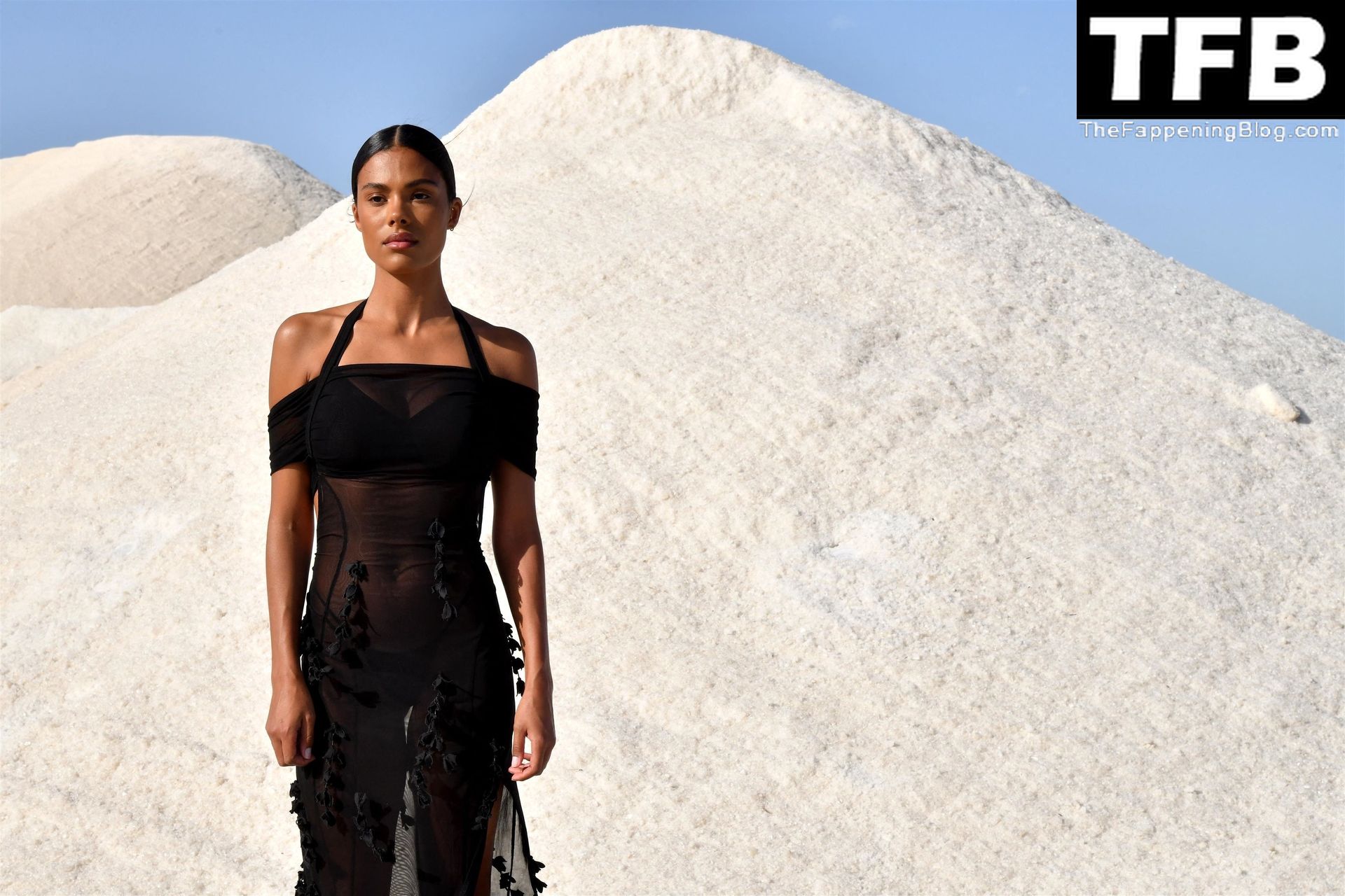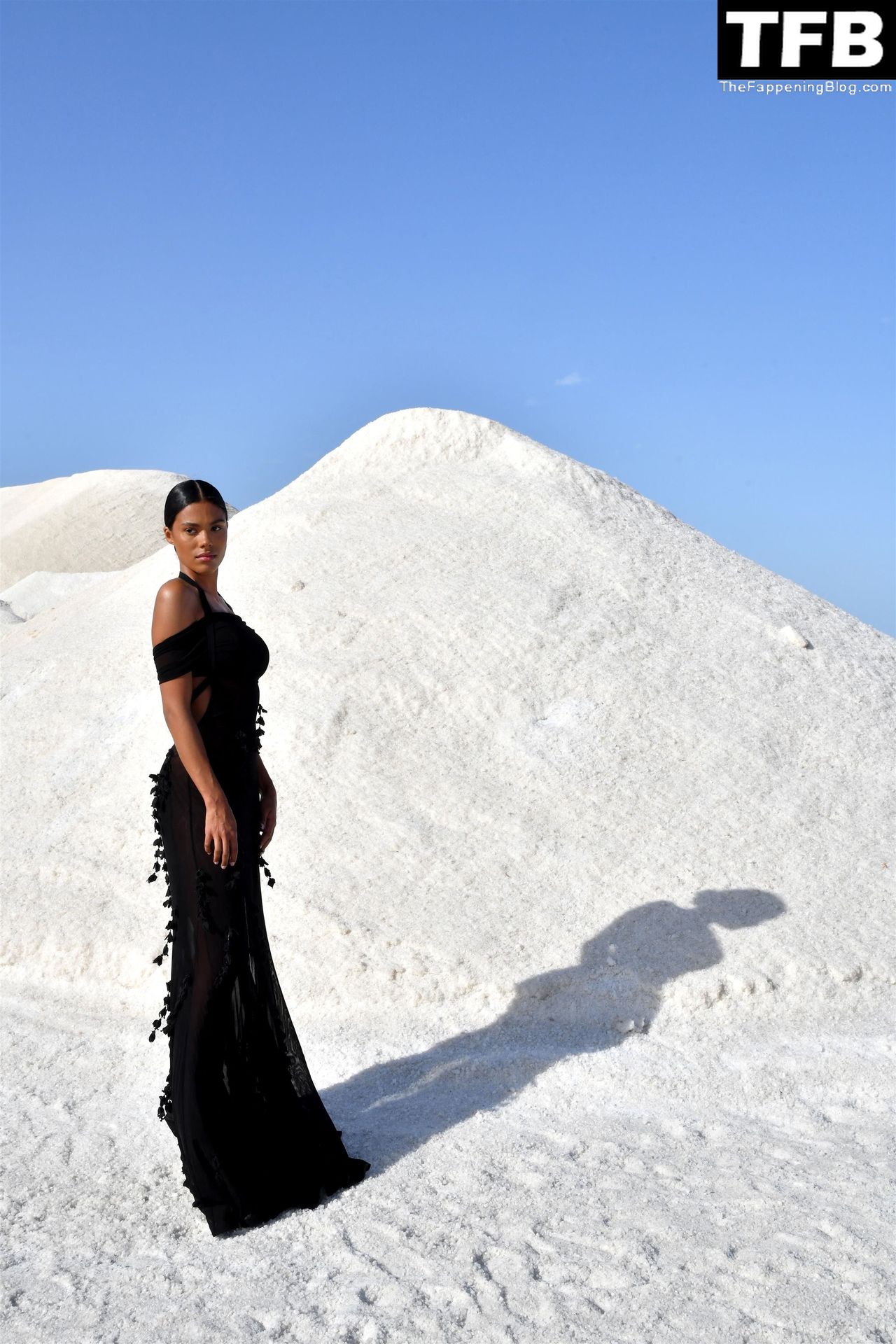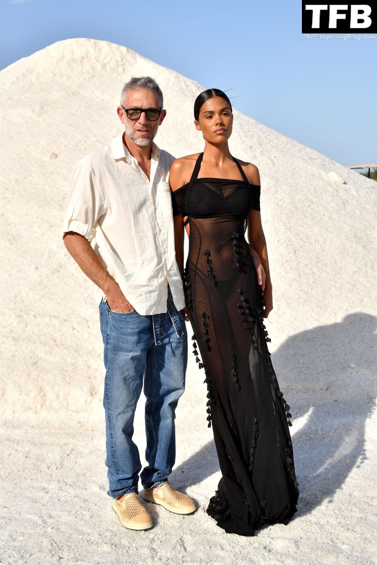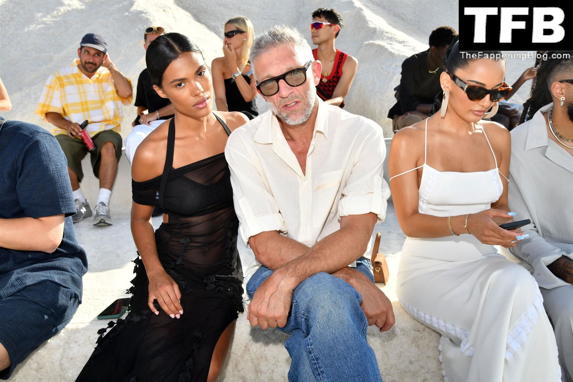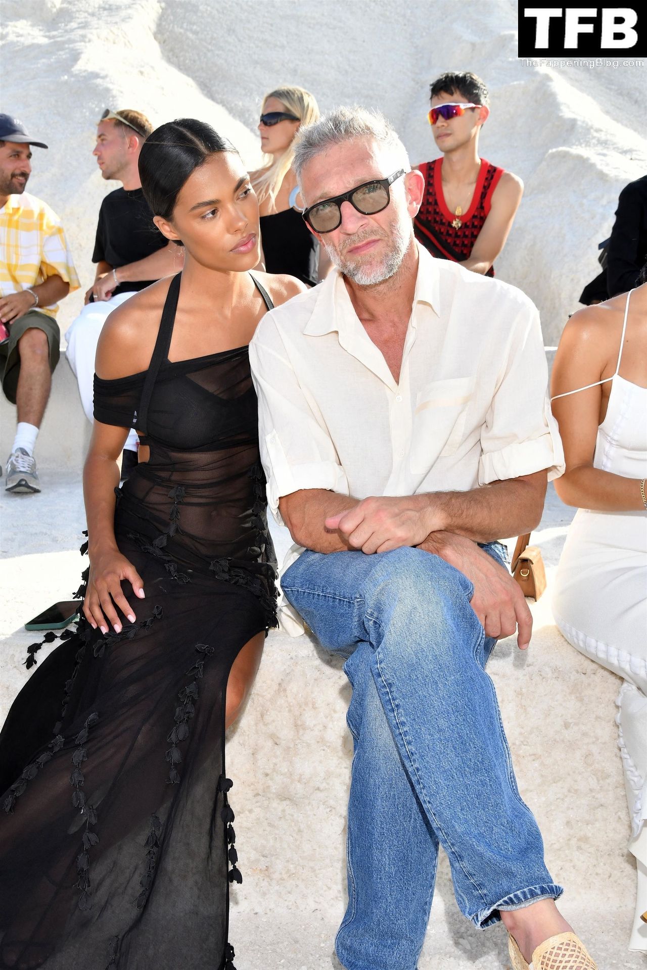 La modella Tina Kunakey partecipa alla sfilata di moda “Le Papier (La Carta)” di Jacquemus ad Arles, Francia, 27/06/2022.