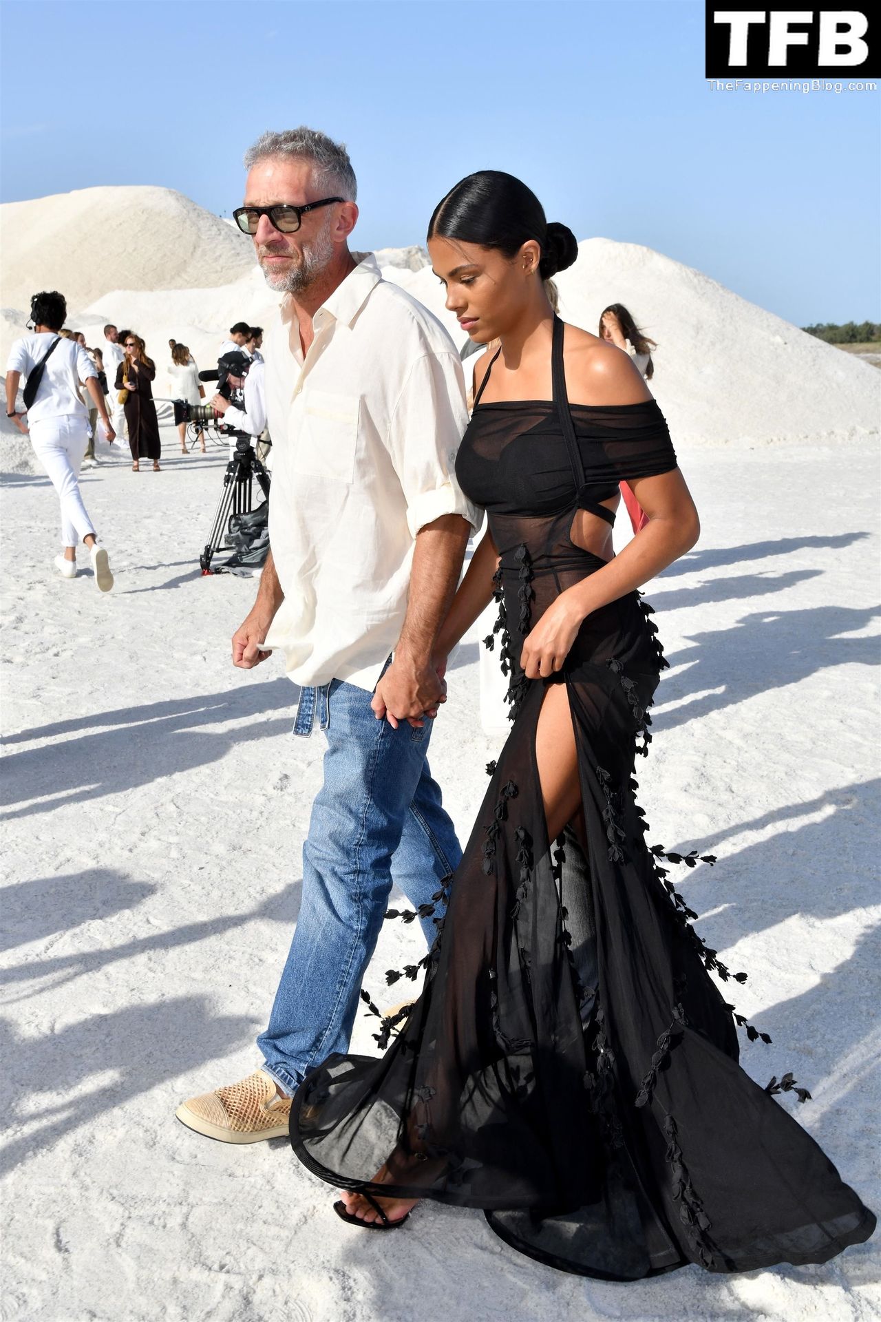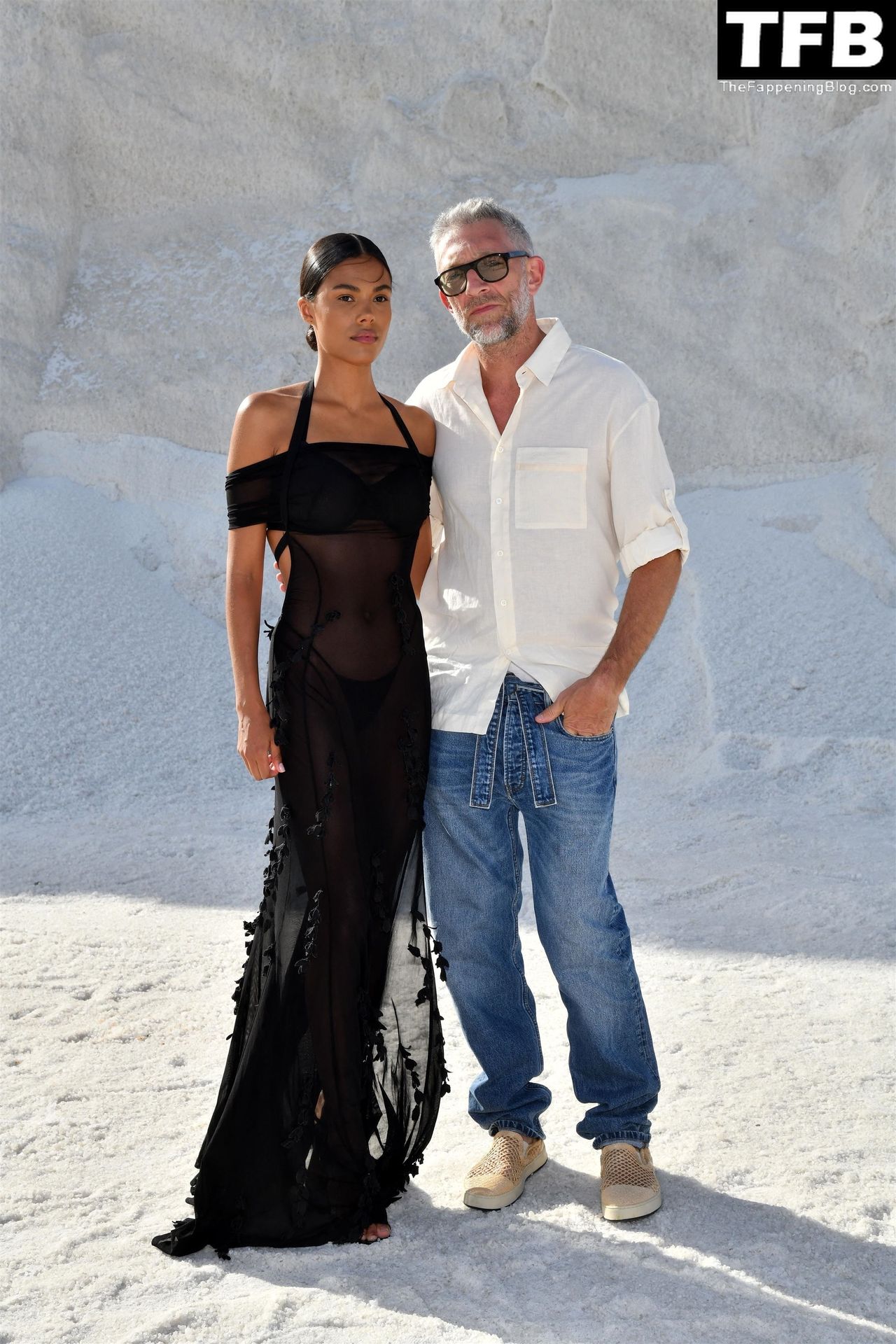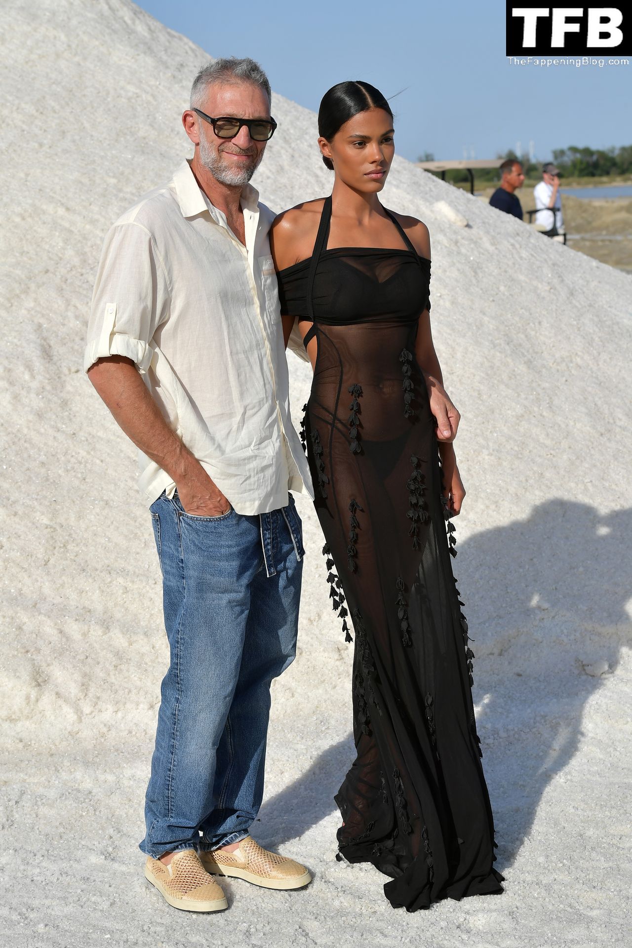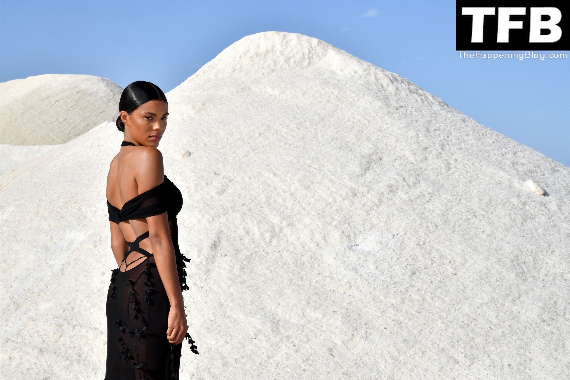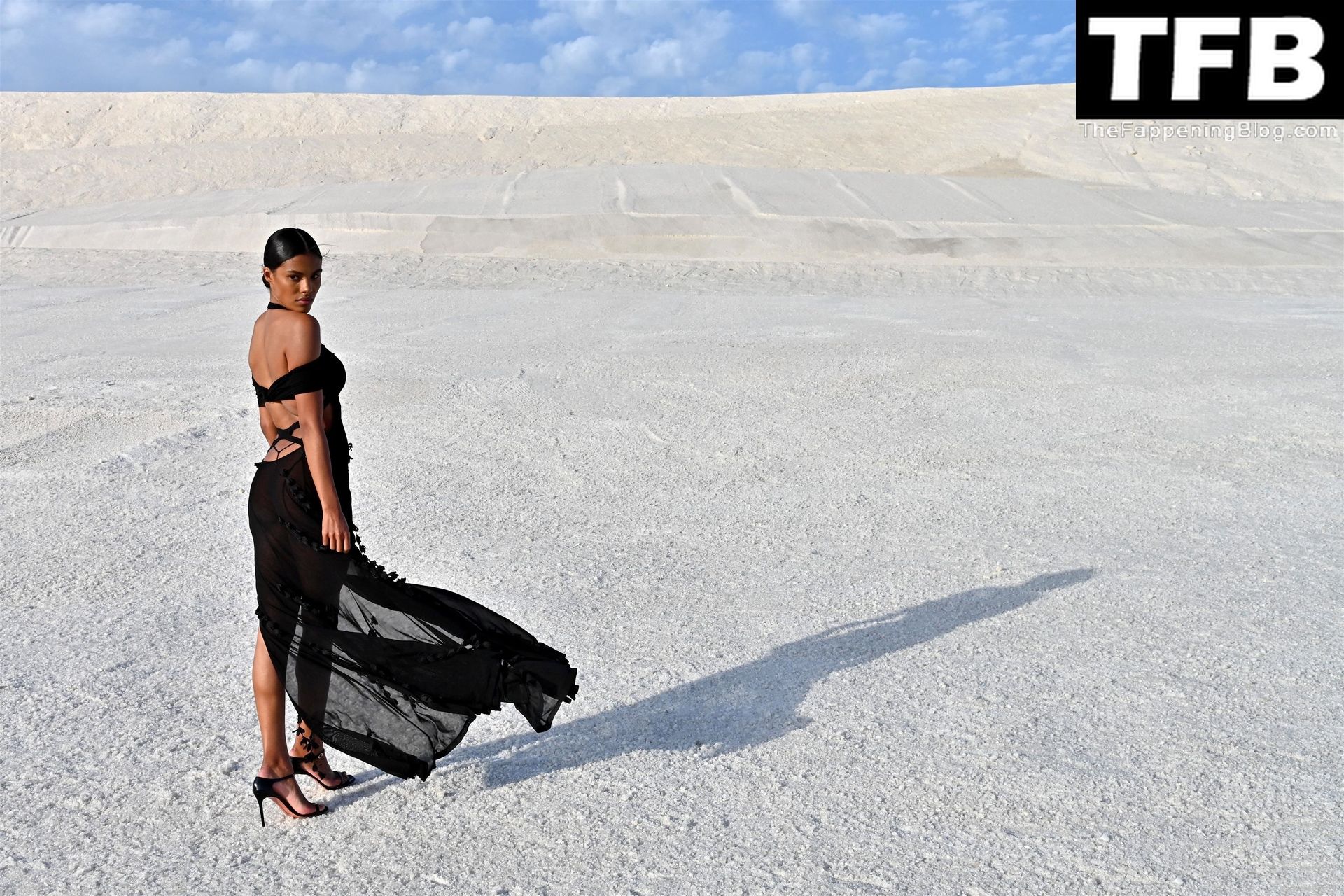 La modella Tina Kunakey partecipa alla sfilata di moda “Le Papier (La Carta)” di Jacquemus ad Arles, Francia, 27/06/2022.